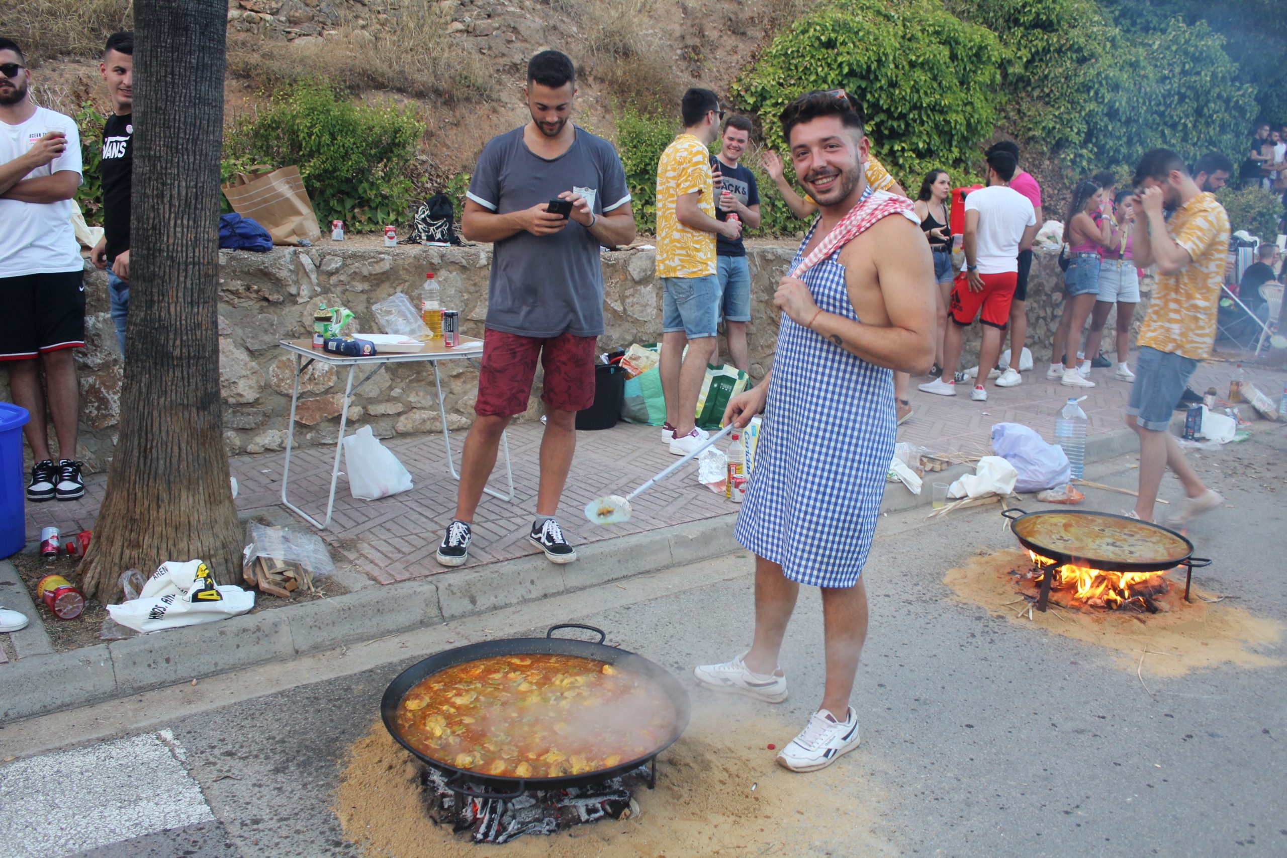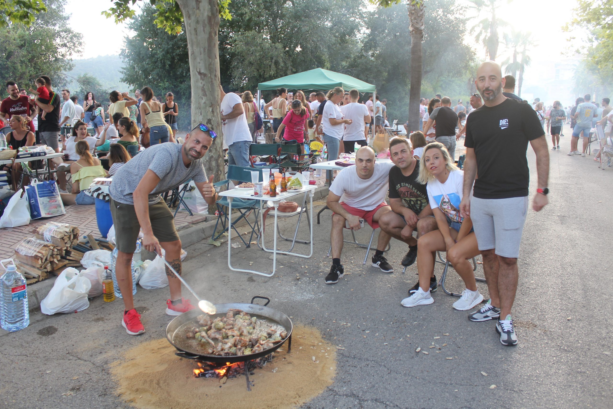 Cuadrillas de amigos, familiares se reunieron entorno a una fogata y un caldero para disfrutar de una tarde de estupenda compartiendo momentos, recuerdos y alguna que otra cerveza o refresco. Una vez elaboradas las paellas, se procedió a su degustación en el interior del colegio San Luis, donde la Concejalía de Feria y Fiestas y la Comisión de Fiestas habilitaron 240 mesas y sillas para todos los participantes.