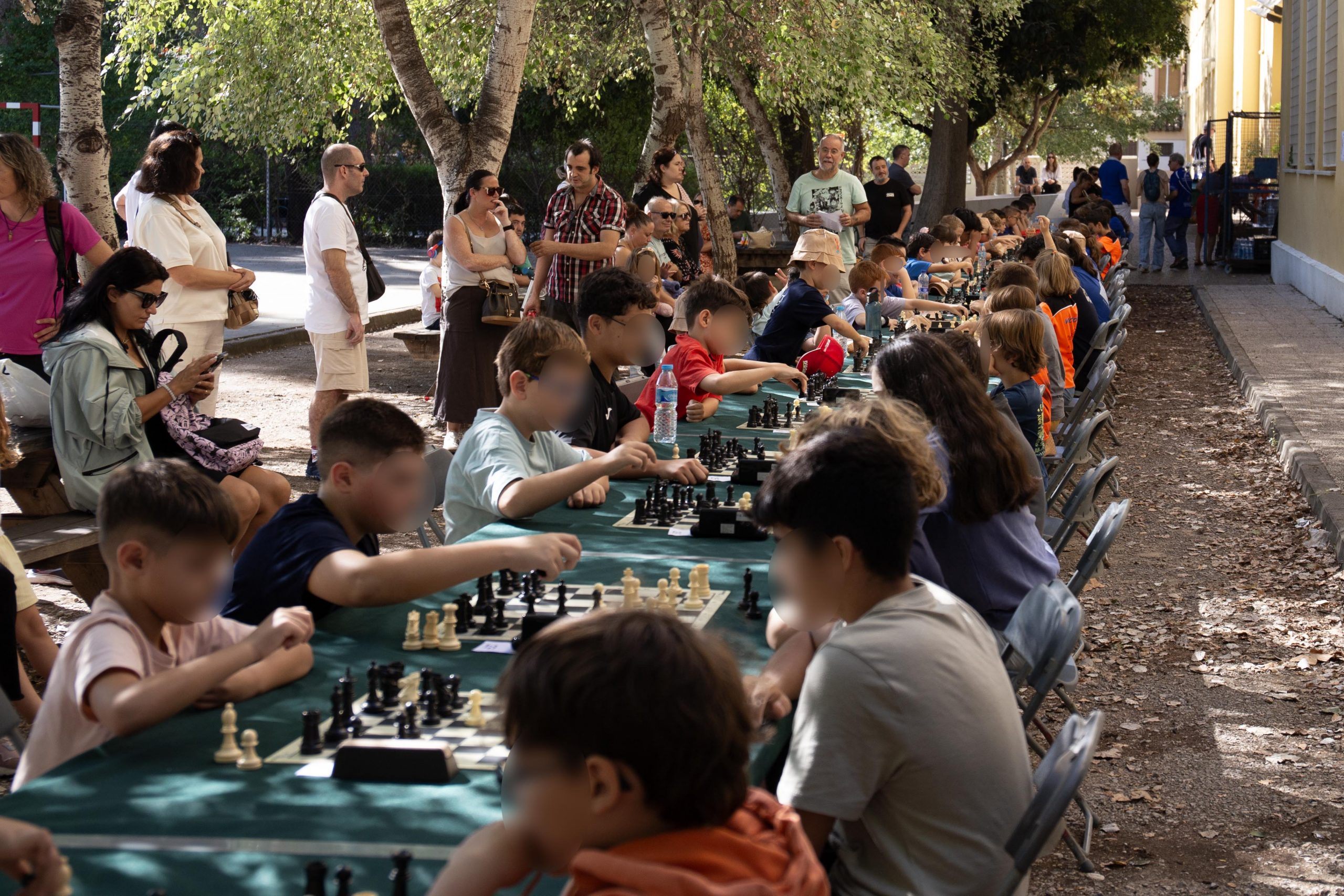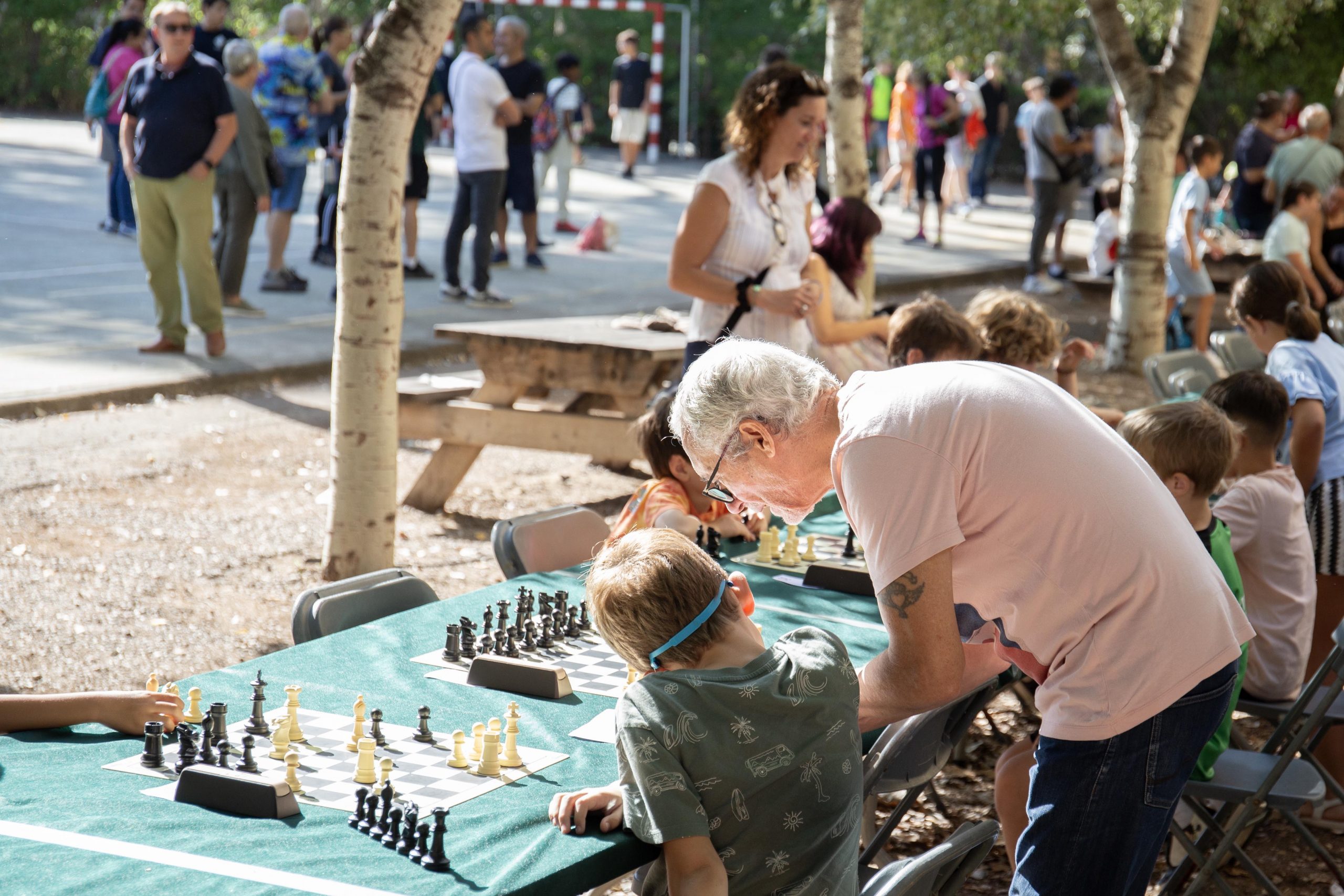 El pasado sábado, 4 de octubre, se celebró el torneo de ajedrez de la Fiesta de la Vendimia, organizado por el Club de Ajedrez Cheste y la Asociación valenciana de ajedrez educativo e inclusivo, que reunió a 79 participantes procedentes de más de una docena a de localidades valencianas, y a sus familias, en el patio del CEIP Francisco Giner de Los Ríos.