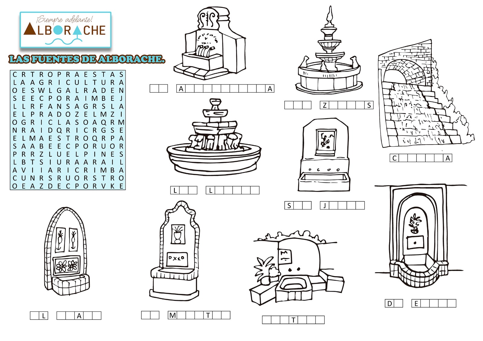 Estos manteles recogen ilustraciones de las fuentes emblemáticas de la localidad y una sopa de letras, y son una invitación para recorrer el municipio y visitarlas.