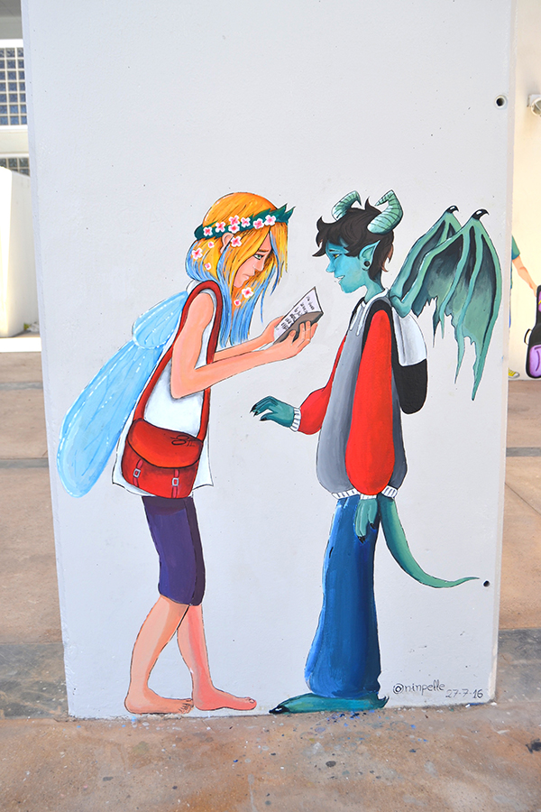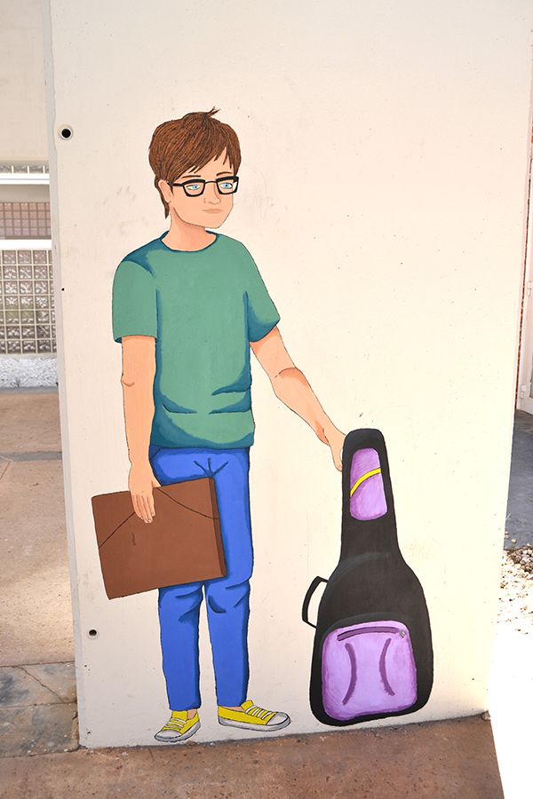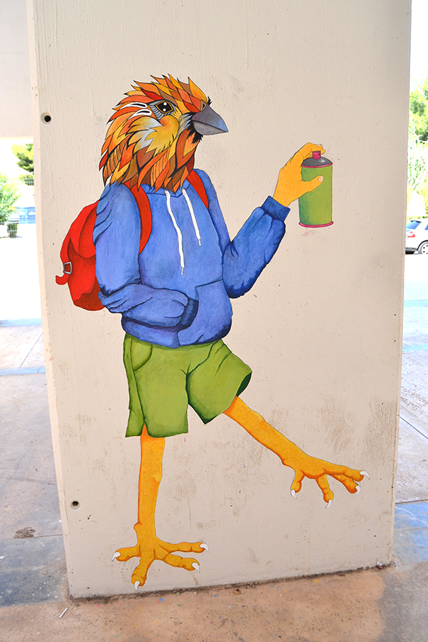 El proyecto se centra en la intervención sobre los grises e imponentes muros que sustentan la cubierta que da entrada al centro animándola con una variada fauna que acompañará cada día a nuestro alumnado en las horas de entrada y salida. Cada artista participante en esta actividad ha realizado una propuesta elaborando un boceto que posteriormente ha pasado al muro. El alumnado participante ha sido.