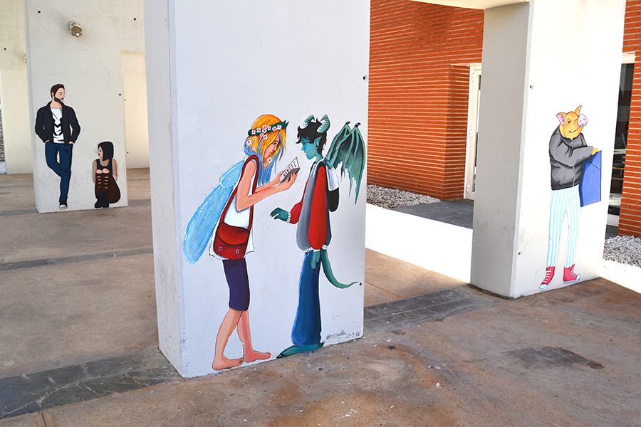 El proyecto se centra en la intervención sobre los grises e imponentes muros que sustentan la cubierta que da entrada al centro animándola con una variada fauna que acompañará cada día a nuestro alumnado en las horas de entrada y salida