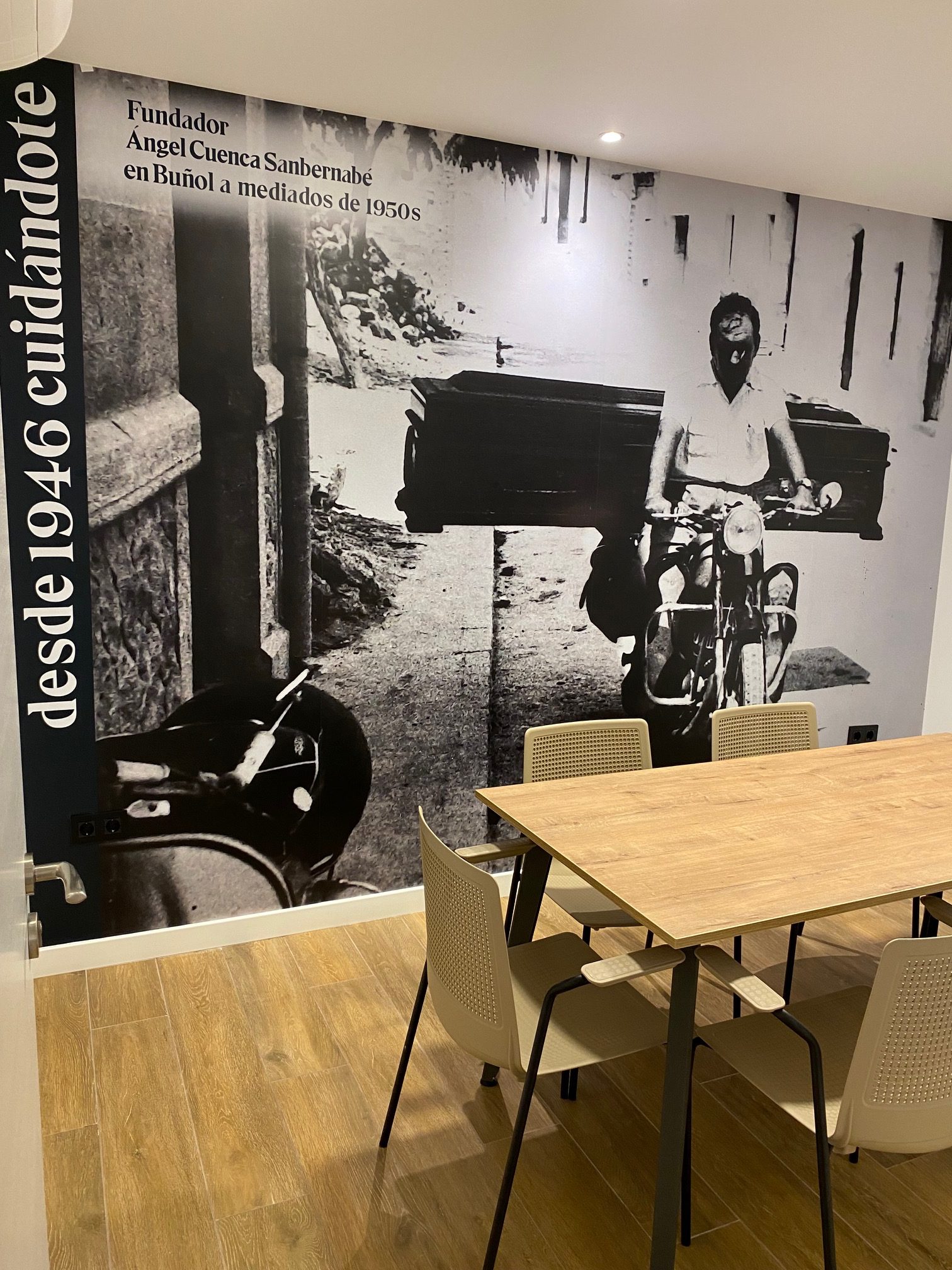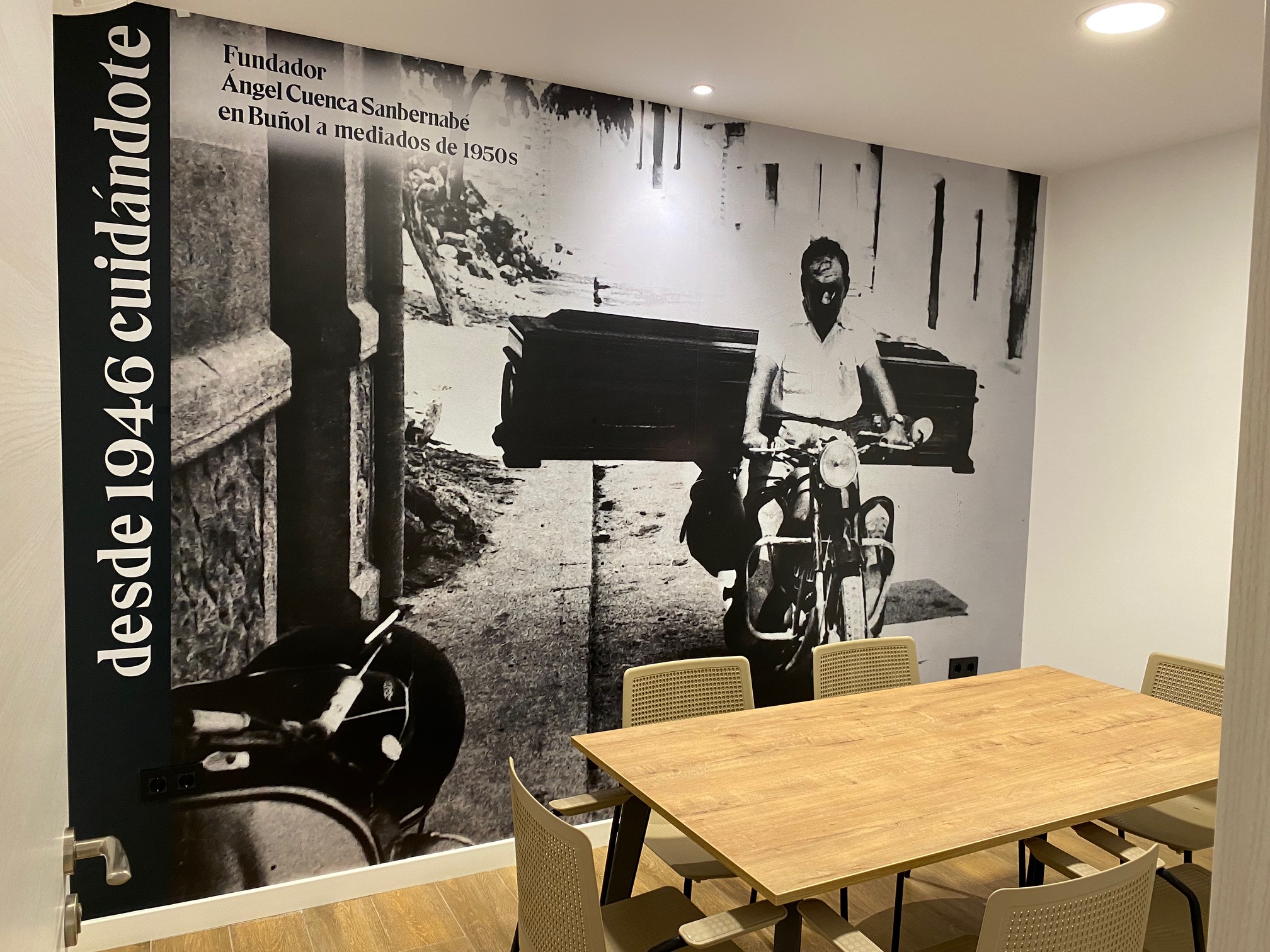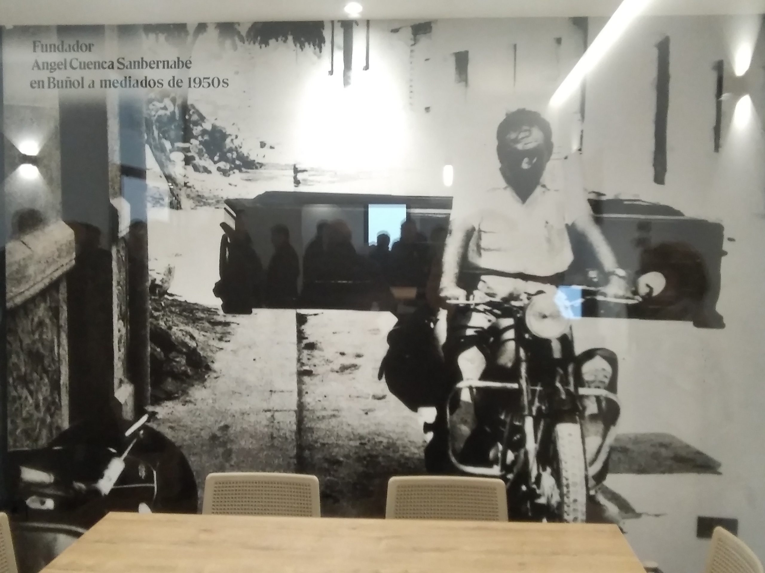 Ahora os dejamos algunas fotos del día de la inauguración de las nuevas instalaciones del tanatorio de Ángel Cuenca en Buñol, haciendo especial hincapié en una. En la del abuelo Ángel llevando un ataúd en una moto. Una imagen que, sin duda, es una de las protagonistas de las nuevas instalaciones: