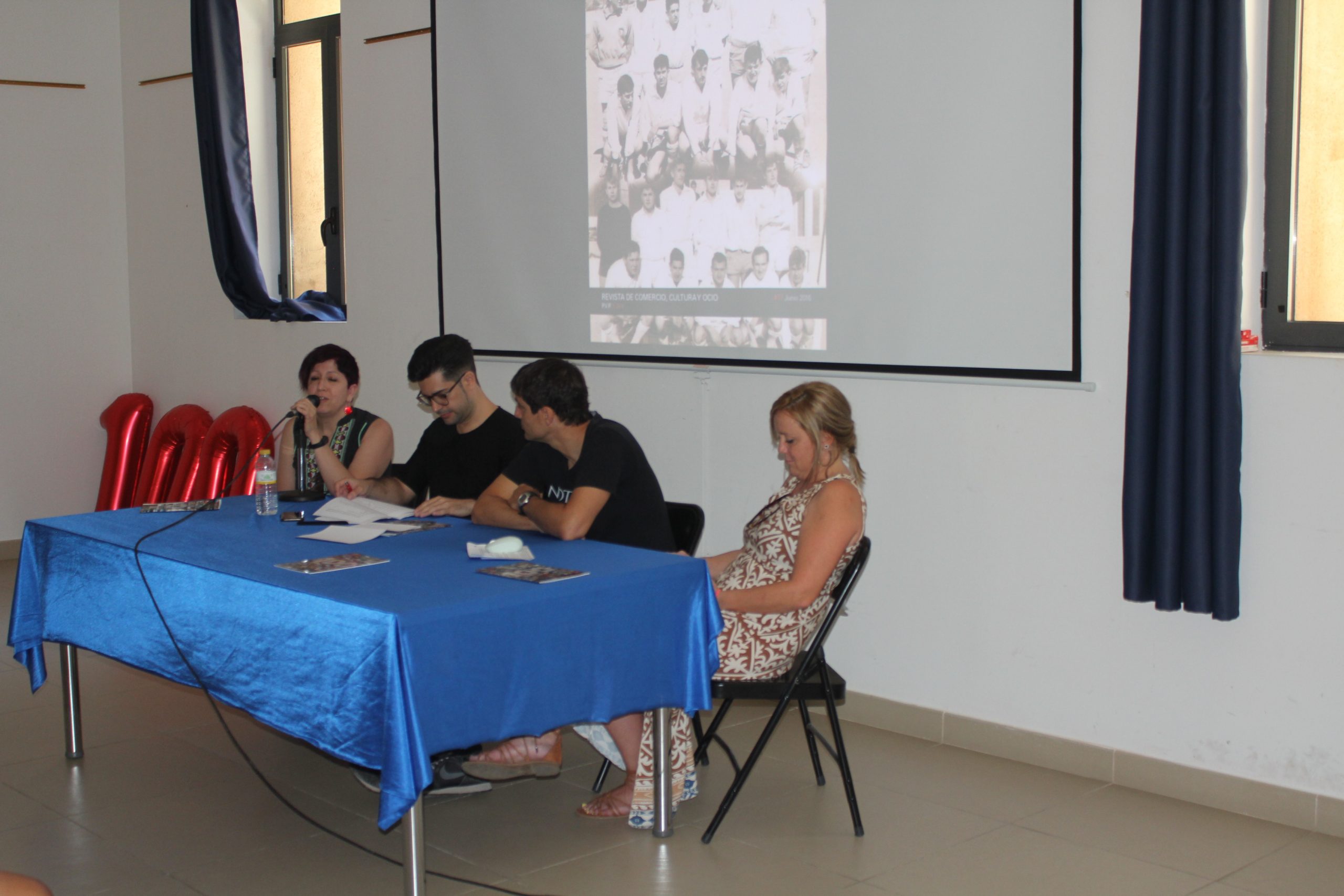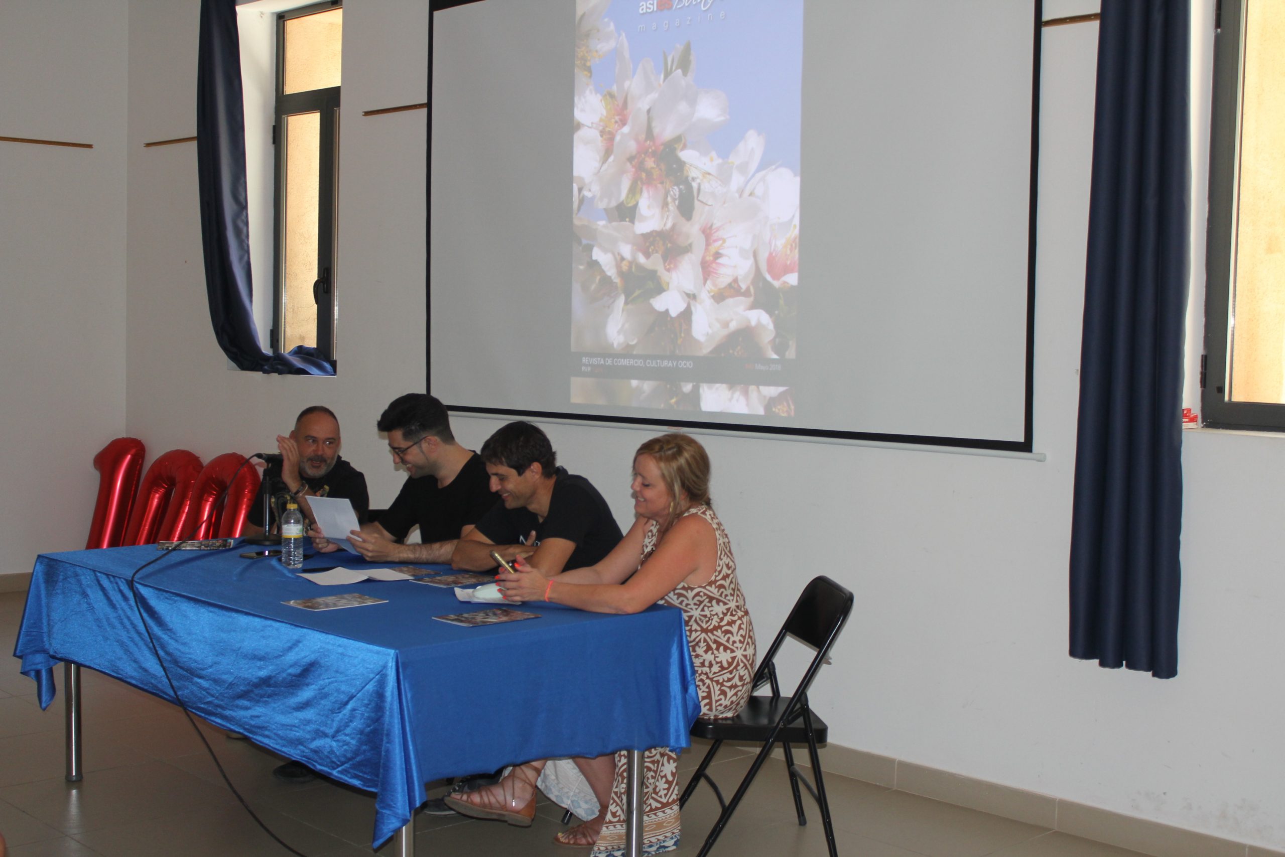 El equipo de la revista hizo un repaso por cómo se gestó el proyecto, con Mateo Pérez, Virginia Bartolomé y Manolo Marzo como cabezas pensantes y al que luego se unió Luis Vallés. También se habló de la parte del diseño y de la importancia de los comercios y establecimientos colaboradores. Y, como no, al final hubo tiempo y espacio para los parlamentos de los ex concejales de comunicación y cultura que han acompañado el proyecto desde su creación: Alicia Hernández, Rafael Pérez, Alejandro Agustina, Manuel Sierra, Juncal Carrascosa -exalcaldesa- y ahora el nuevo consistorio encabezado por Virginia Sanz, que allí mismo se comprometió a seguir apoyando al magazine. Una vez terminaron sus palabras, fue el turno para las colaboradoras y colaboradores: Venanci Ferrer, Rafa Ferrús, Pepe Medard, Pili Delgado y Emi Zanón, que han colaborado en este número 100. Y el broche de oro, lo puso Mateo Pérez, que recordó la figura de una de las personas fundamentales de las que se nutría la revista, Claudio García, al que el público recordó con un sentido aplauso.