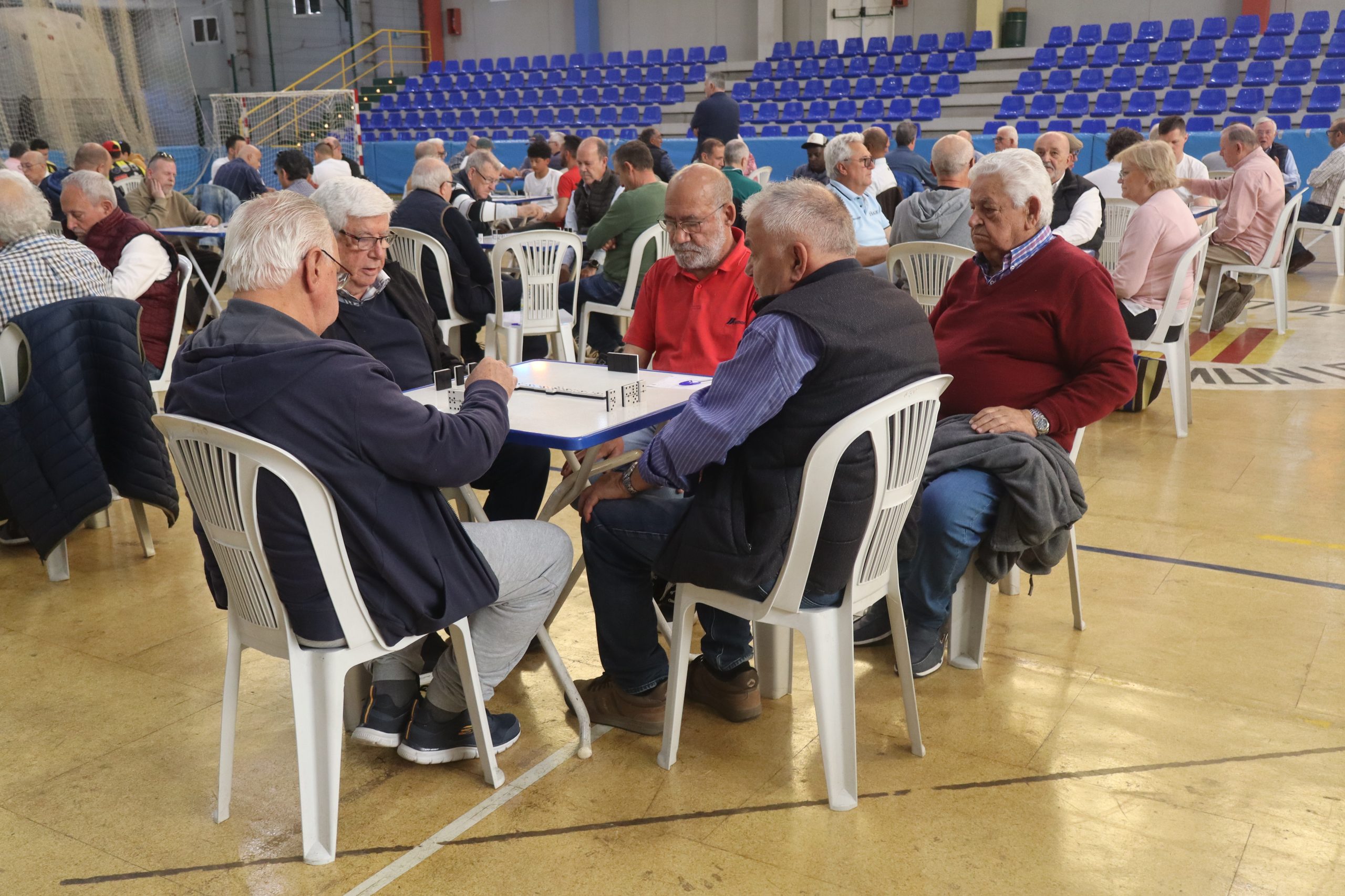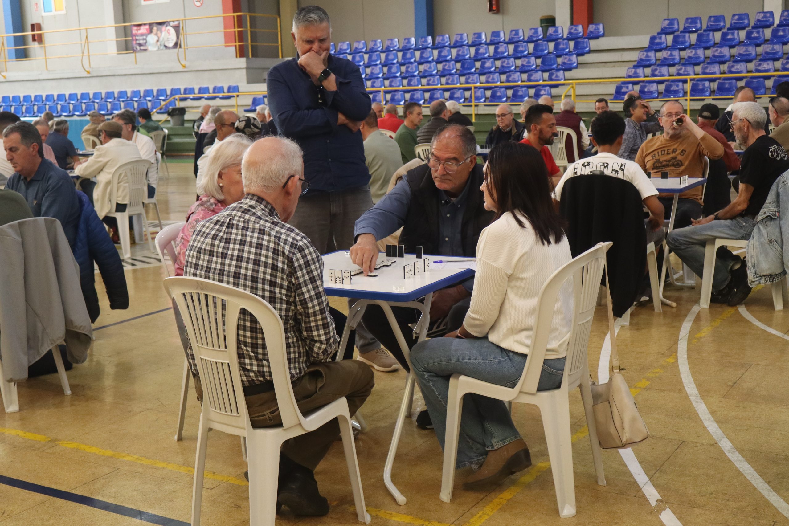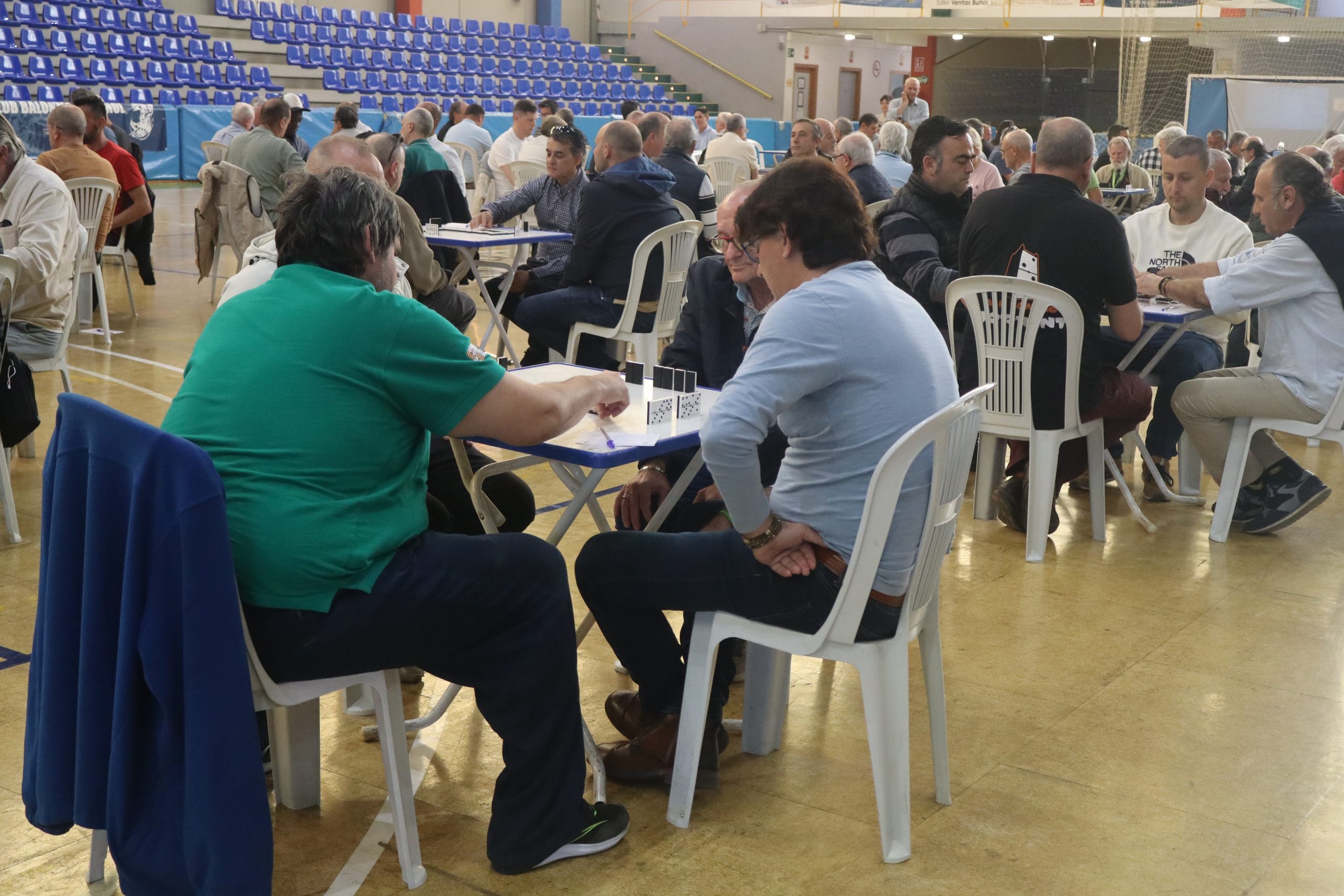 Desde primera hora, decenas de mesas ocuparon la pista del pabellón, donde jugadores llegados tanto del municipio como de otras localidades disfrutaron de una intensa jornada en torno a este juego tradicional. La imagen del recinto, completamente lleno, reflejaba el éxito de convocatoria de un evento que sigue consolidándose en el calendario local.