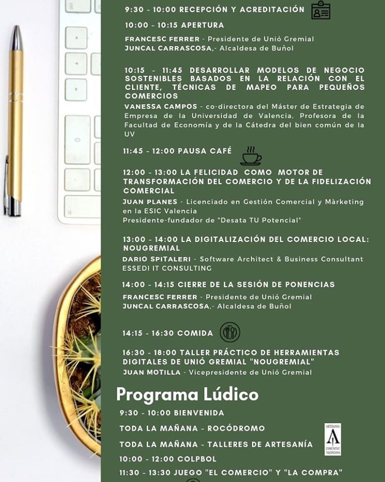 Este año, se hablará de la digitalitzación del comercio y se aportarán soluciones y respuestas a los retos que los cambios del mercado nos demandan. También se tendrá la oportunidad de escuchar a la Profesora de Economía de la Universidad de Valencia, Vanessa Campos, especialista en emprendedurismo y economía social en el área de Organitzación de Empresas del Departamento de Dirección de Empresas de la Universidad de Valencia.