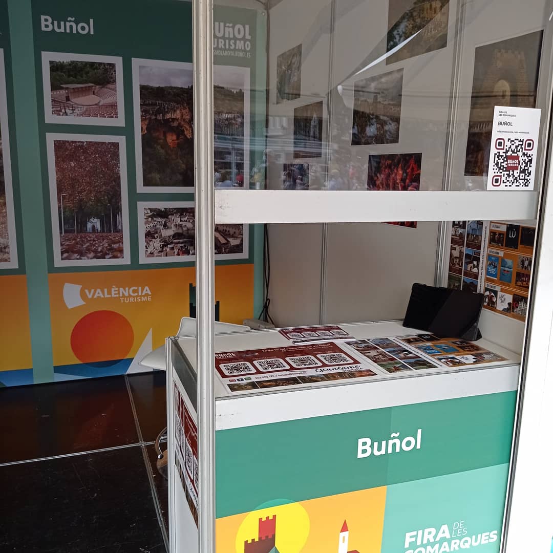 María Vallés, concejala de Turismo y Tomatina del Ayuntamiento de Buñol, estuvo presente junto al edil de Cultura, Juan Luis Pallás, y la primera munícipe, Juncal Carrascosa. A lo largo de los casi tres días que estuvo presente esta localidad en la Feria se ofrecía a través de códigos QR a los asistentes la amplia oferta paisajística, natural, patrimonial y cultural con la que cuenta esta localidad.