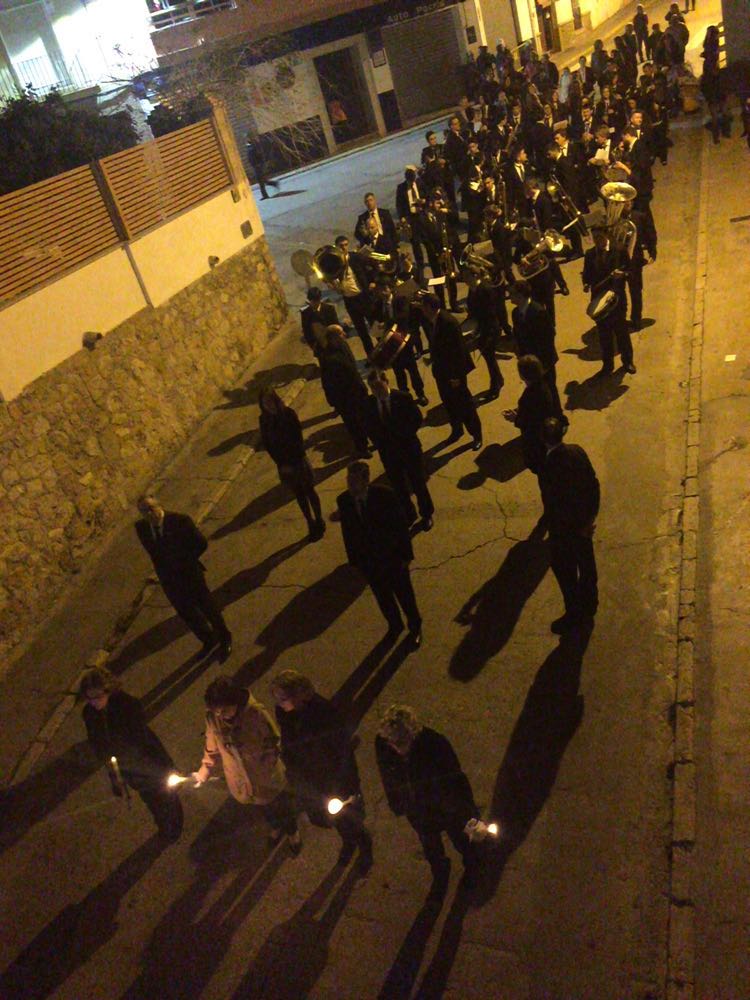 Ya por la tarde, la Virgen de los Dolores, acompañada por feligreses, clavarias y por la música de la Sociedad Musical «La Artística» de Buñol, bajó en procesión hasta la Iglesia San Pedro Apóstol, donde permanecerá esta Semana Santa.