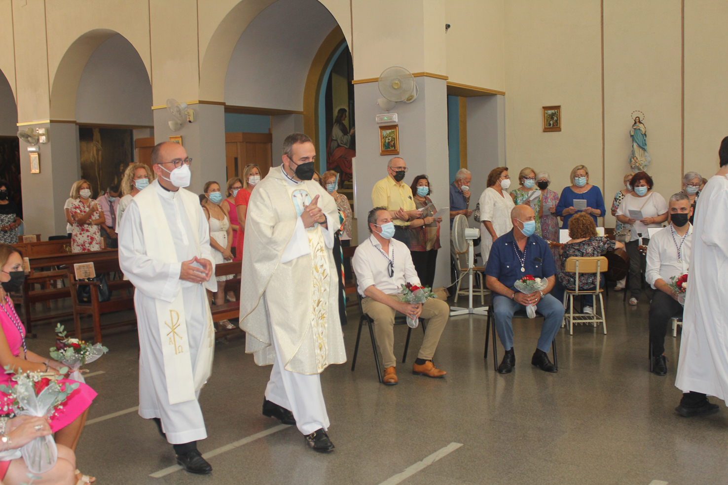 El programa arrancó con el septenario a la Virgen y se cerró el domingo a las 12 del mediodía con una Eucaristía Solemne. Mención especial a la presidenta de la cofradía, Rosi Ferrer, y a los clavarios de este año que seguirán un año más por las circunstancias sanitarias. Los clavarios son; Ana Paola Pop, Daniel Pallás Perelló, Benjamín Illana Fernández, Pedro José Illana Fernández, Francis Pallás Galindo, Lorena Hernández Pallás, Pilar Galindo Ferrer, María Palmira Bonillo Martínez y Rosa Ricarte Gironés. Cerrando esa comitiva estaba el sacristán de la parroquia Pepe y Santiago y a continuación los vicarios parroquiales Borja Grau y Arturo Monllor y el párroco de localidad, Enrique Boronat.