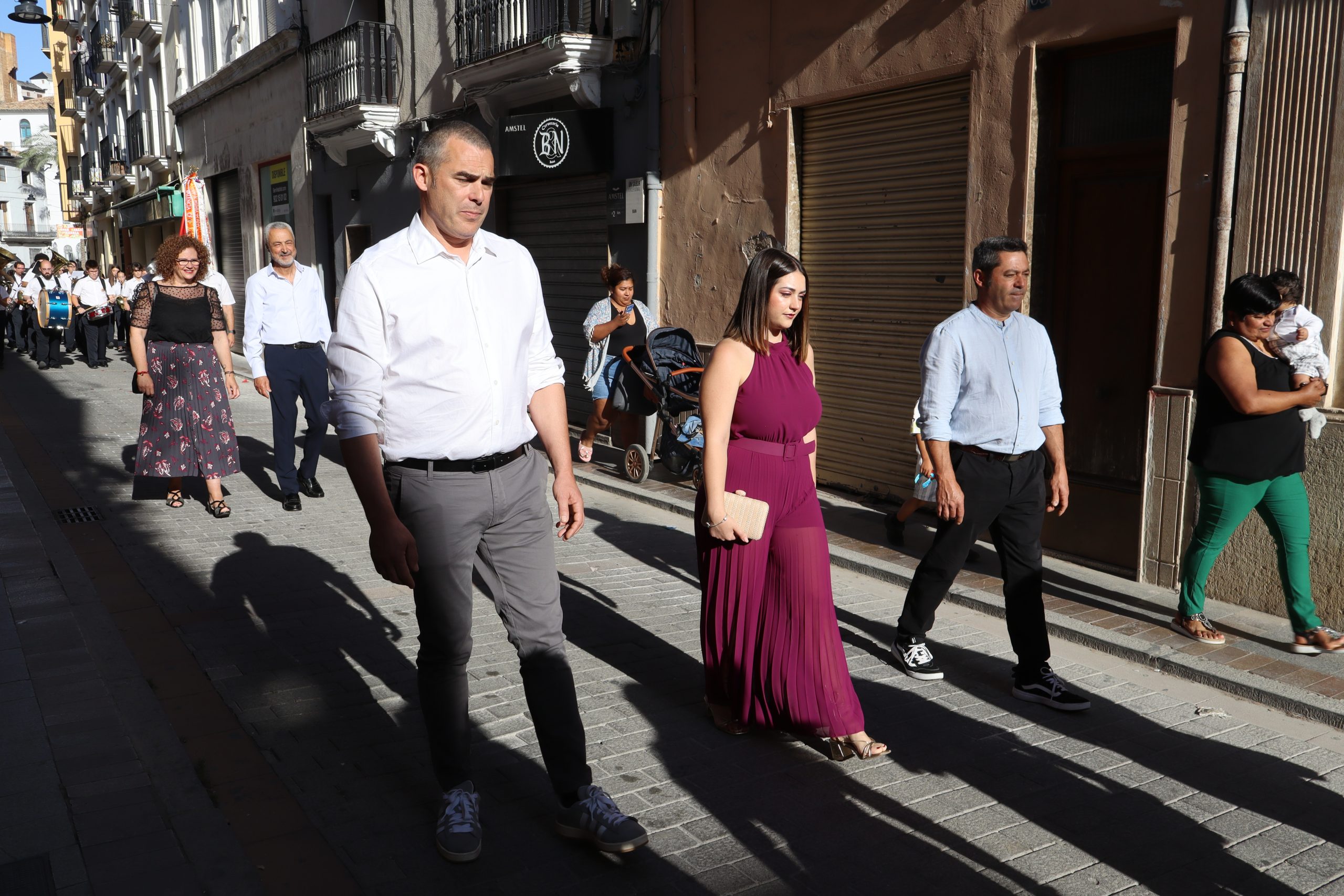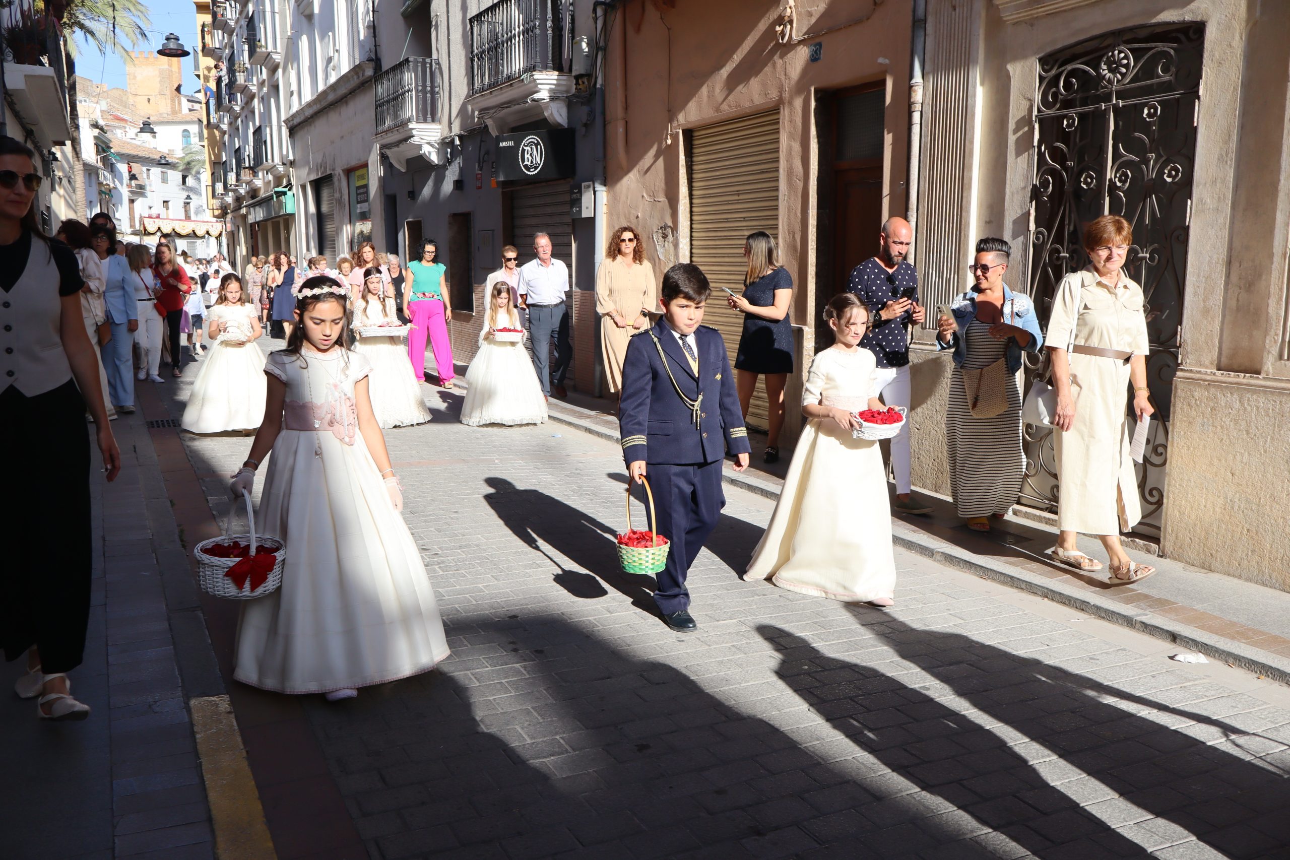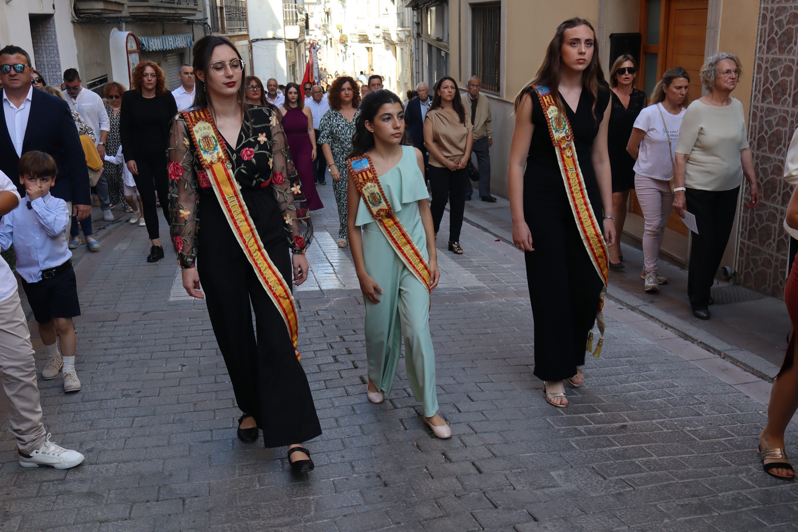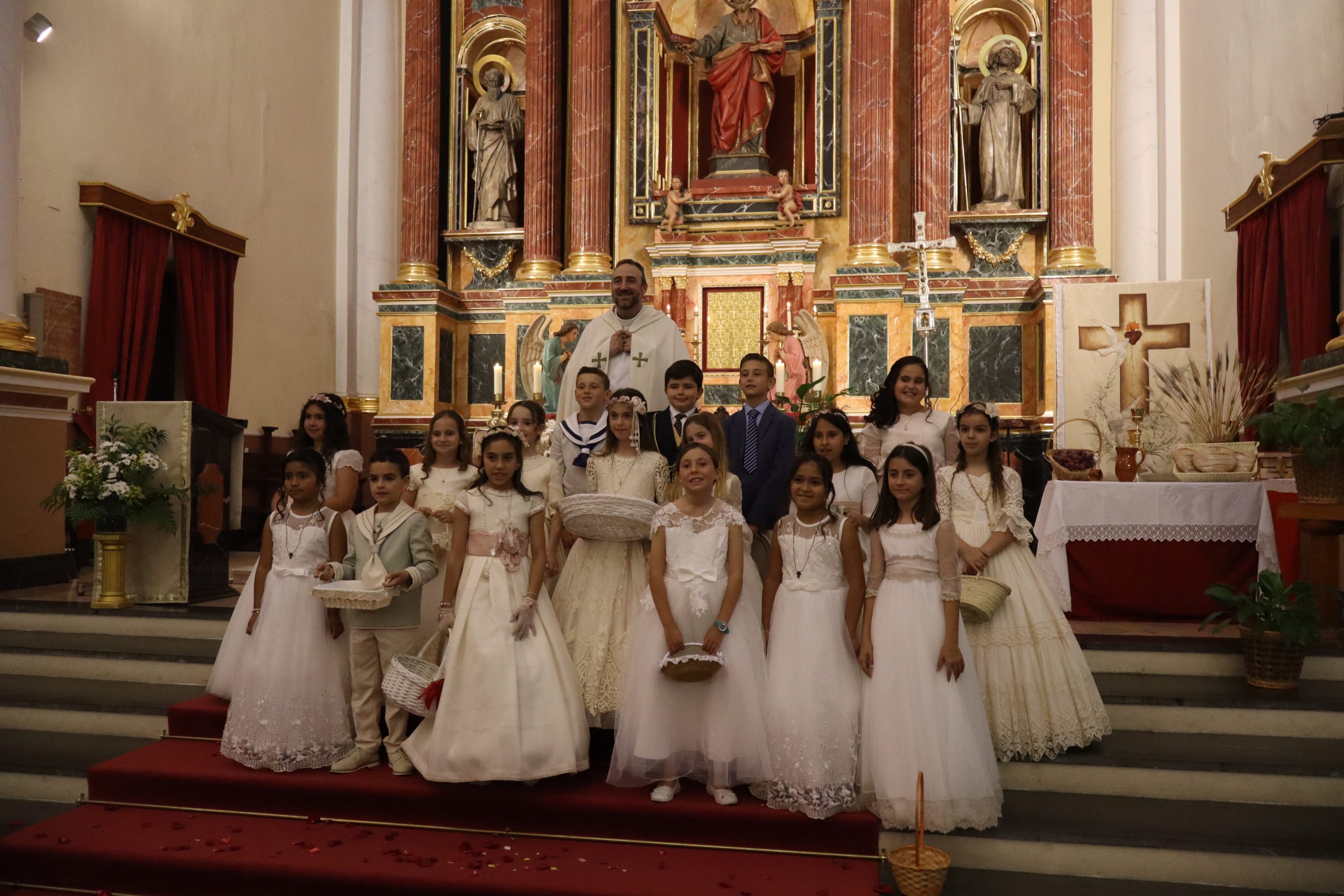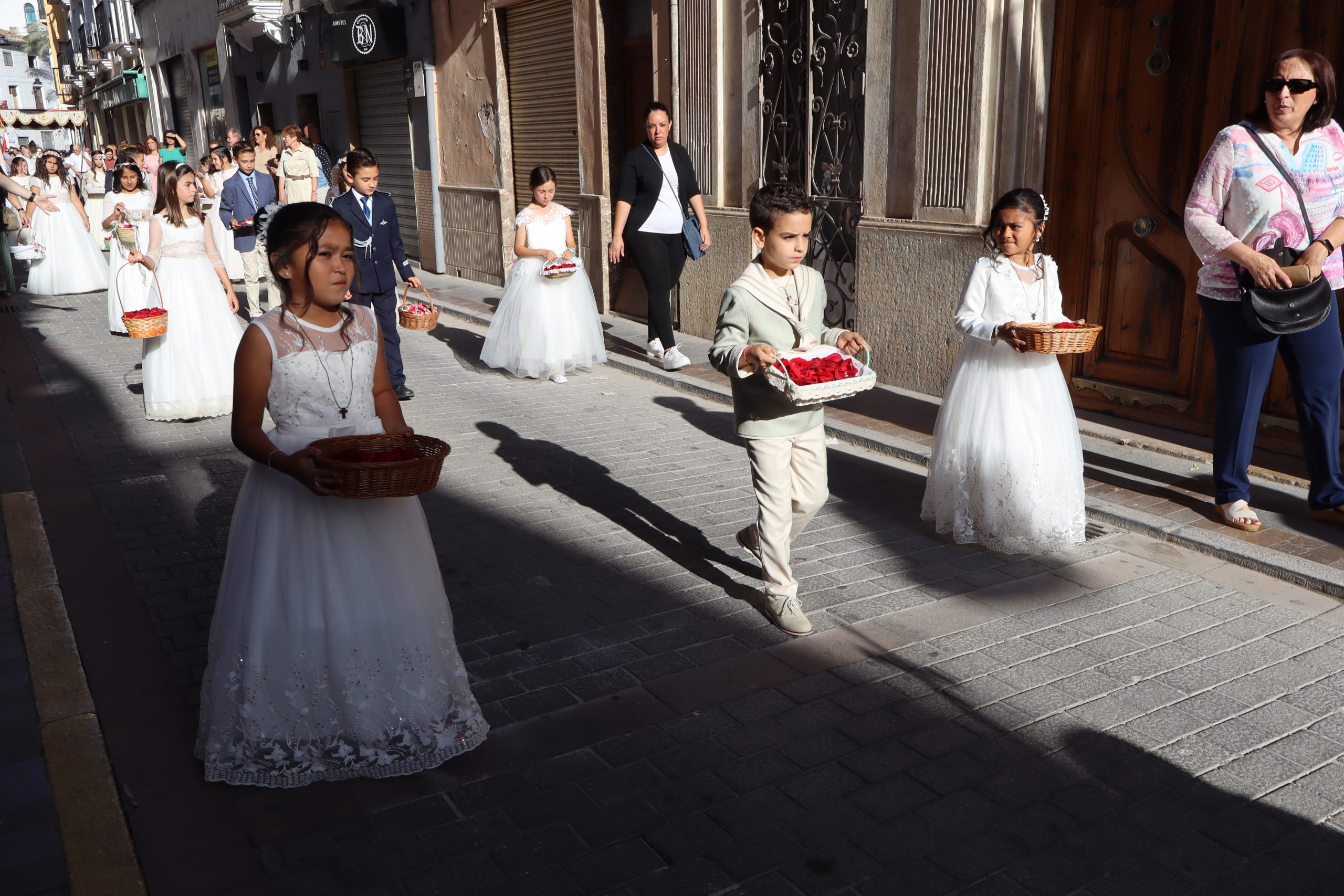 La comitiva estuvo encabezada por la Cruz Procesional, que fue portada por el sacristán Pepe, de la parroquia Nuestra Señora de los Dolores. Tras la Cruz, los niños y niñas de ambas parroquias de localidad, que este año han tomado su primera comunión. Justo detrás, iba la Custodia, portada por el párroco de la localidad Enrique Boronat, que iba bajo palio portado por varios padres de los pequeños. Desde la parroquia y en todo el recorrido fue incensado el sacristán de la parroquia San Pedro Apóstol Luís Carrascosa. A lo largo del recorrido se realizaron diferentes paradas en varios altares que preparan en las puertas de las viviendas los propios vecinos. Cuando el sacerdote alzaba la Custodia para bendecir a los asistentes, los niños y niñas le echaban pétalos de rosa. Cerrando la procesión marchaban las Misses, directiva y Banda Juvenil del Centro Instructivo La Armónica.