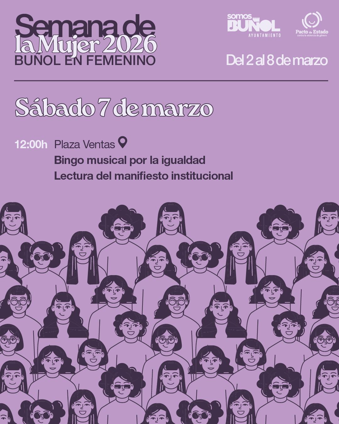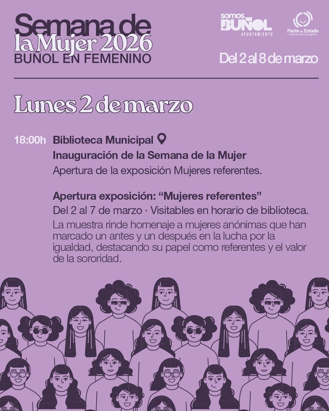 Redacción.- Del 2 al 8 de marzo, el Ayuntamiento de Buñol impulsa una nueva edición de la Semana de la Mujer, que este año se desarrolla bajo el lema “Buñol en femenino”, con una programación diversa que pone el foco en la importancia de contar con referentes femeninos y en la necesidad de seguir rompiendo estereotipos para avanzar hacia una igualdad real y efectiva.