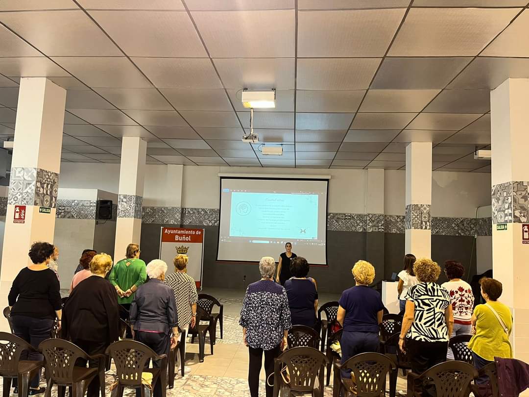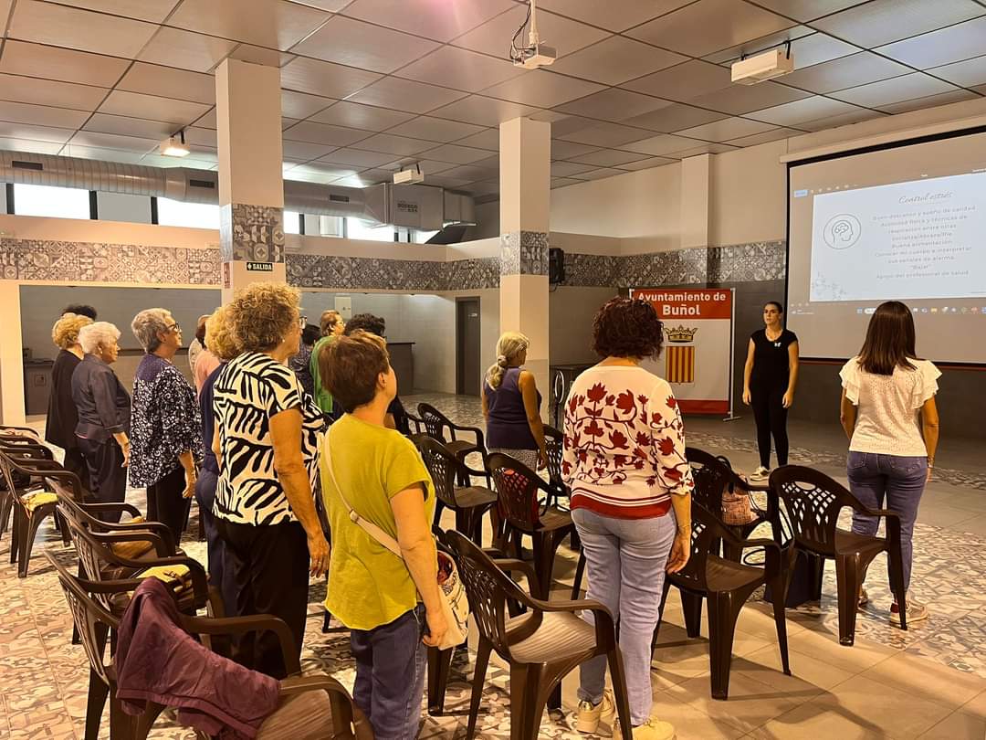 Estos días también se celebró un taller de risoterapia en el local de las Amas de Casa de Buñol en el que hubo mucha participación. Fue impartido por Carmen Vicente Pérez, terapeuta humanista. Ayer fue el turno de Beatriz Collado, de Nostre Cos Fisioterapia, que ofreció una charla práctica sobre “Movimiento y Salud por muchos años”, en Sala del Mercado. Todas las asistentes participaron de esta amena y práctica charla sobre la importancia del cuidado del cuerpo a todas las edades.