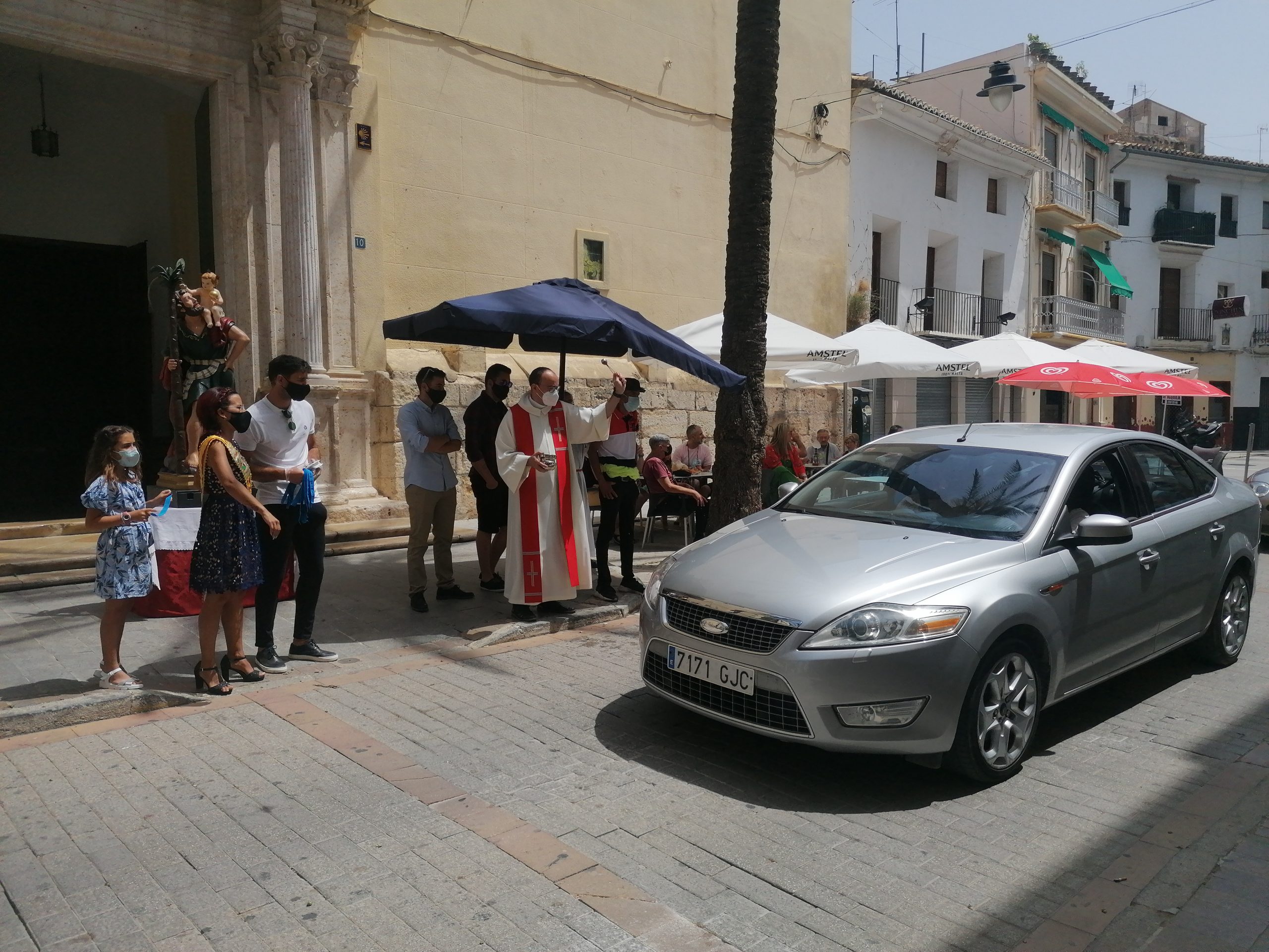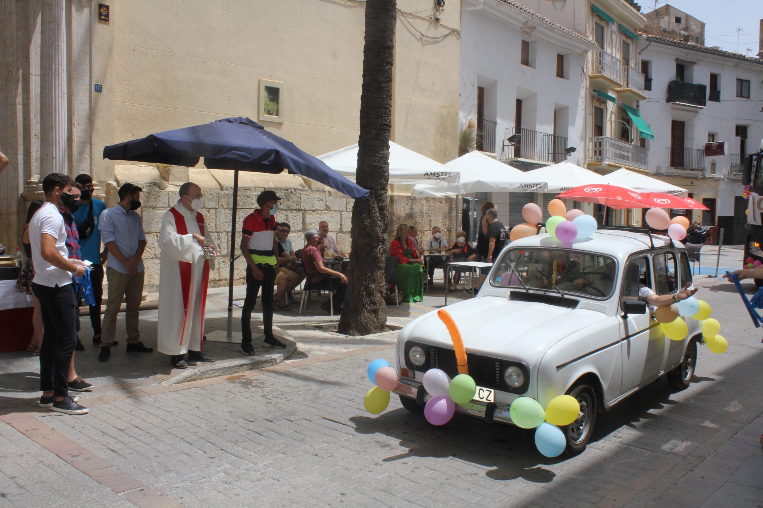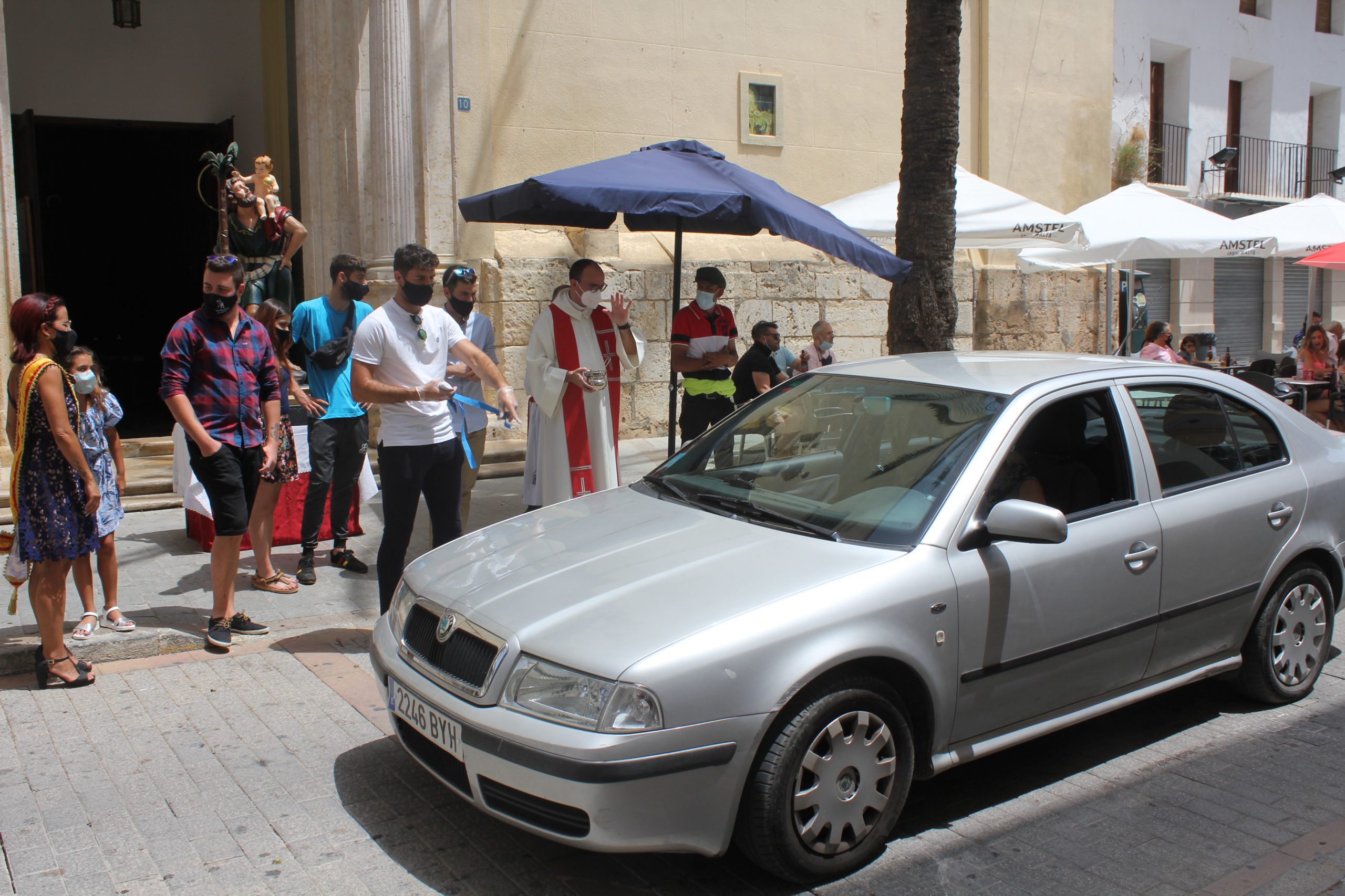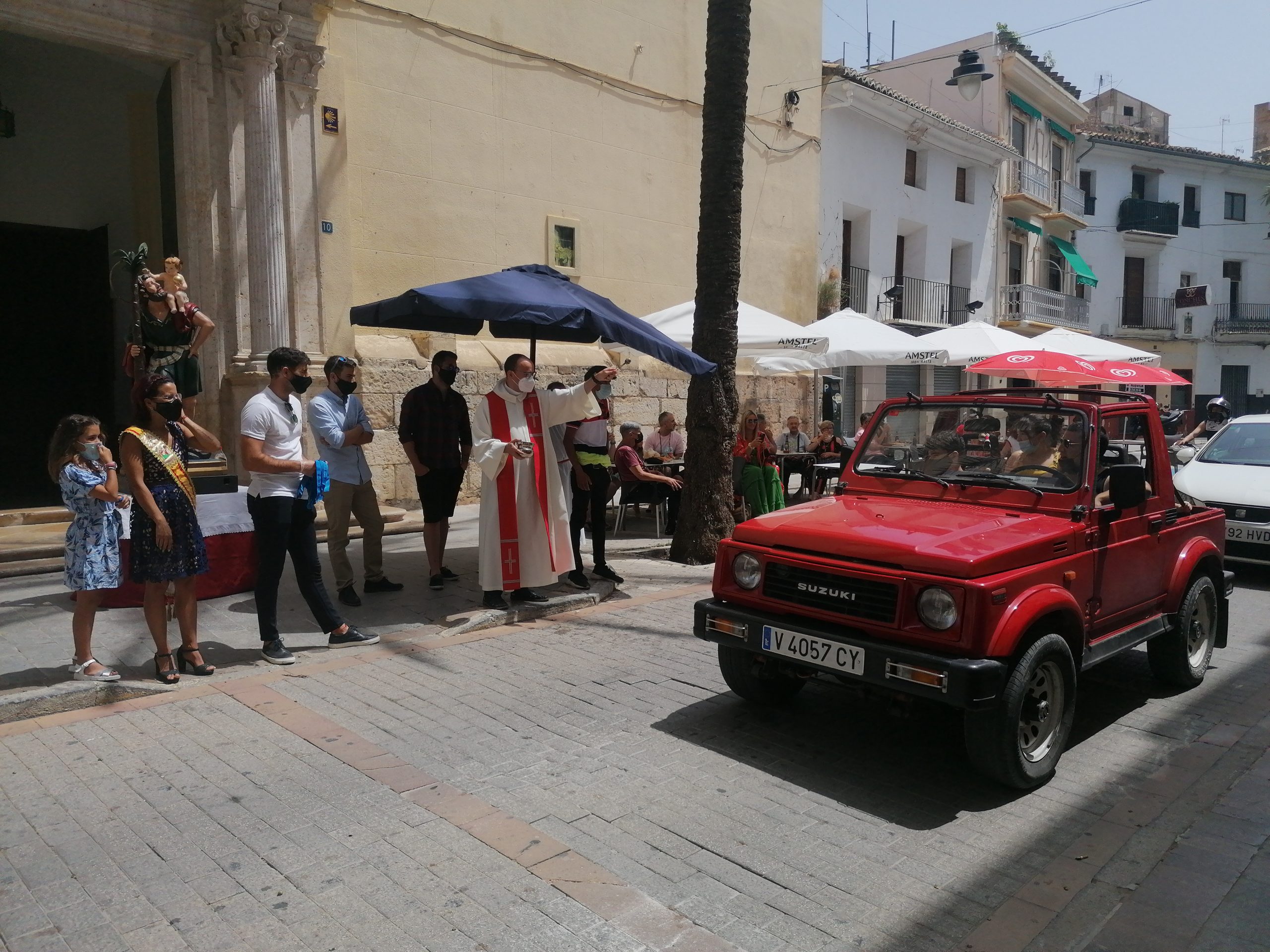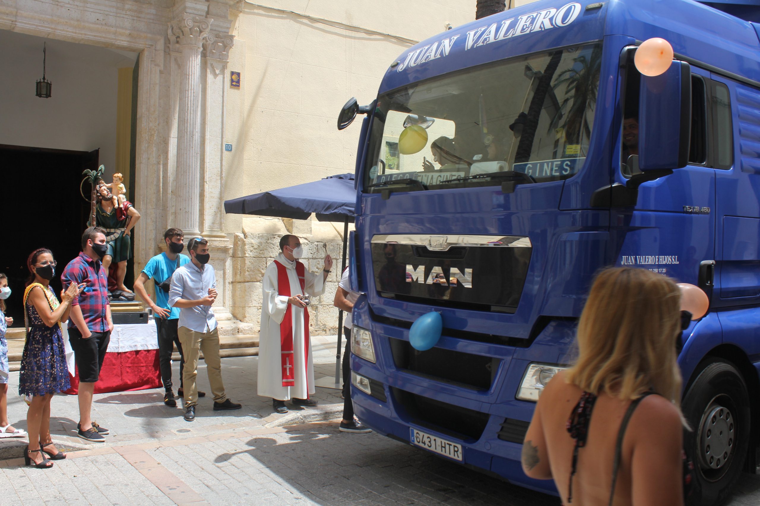 Desde la Avenida de la Violeta, partieron los vehículos que poco a poco, como un pequeño goteo, fueron pasando por la Iglesia San Pedro Apóstol e iban siendo bendecidos por el sino vicario parroquial Arturo Monllory que estuvo acompañado por la representante de la Comisión de San Cristóbal, Azu Calomarde y otros miembros de la asociación.