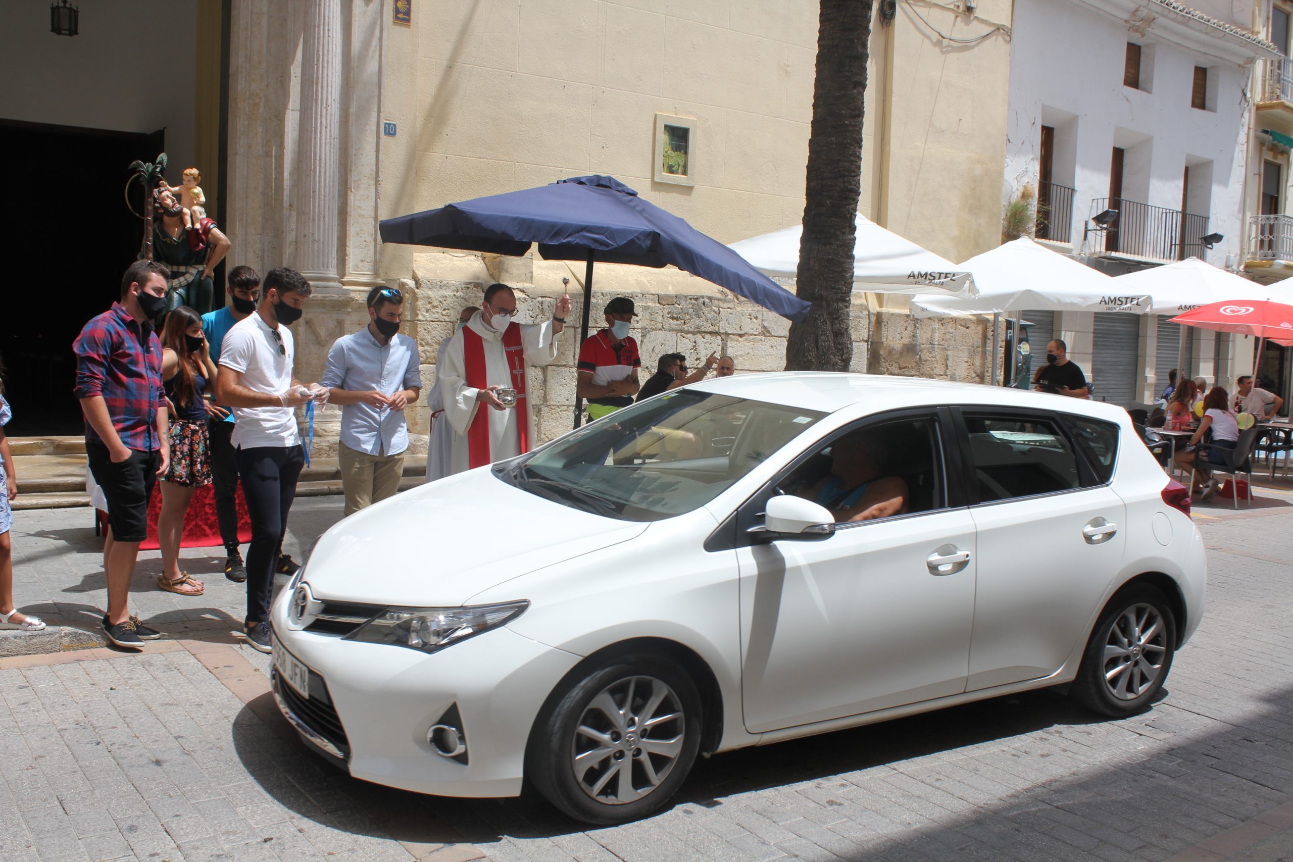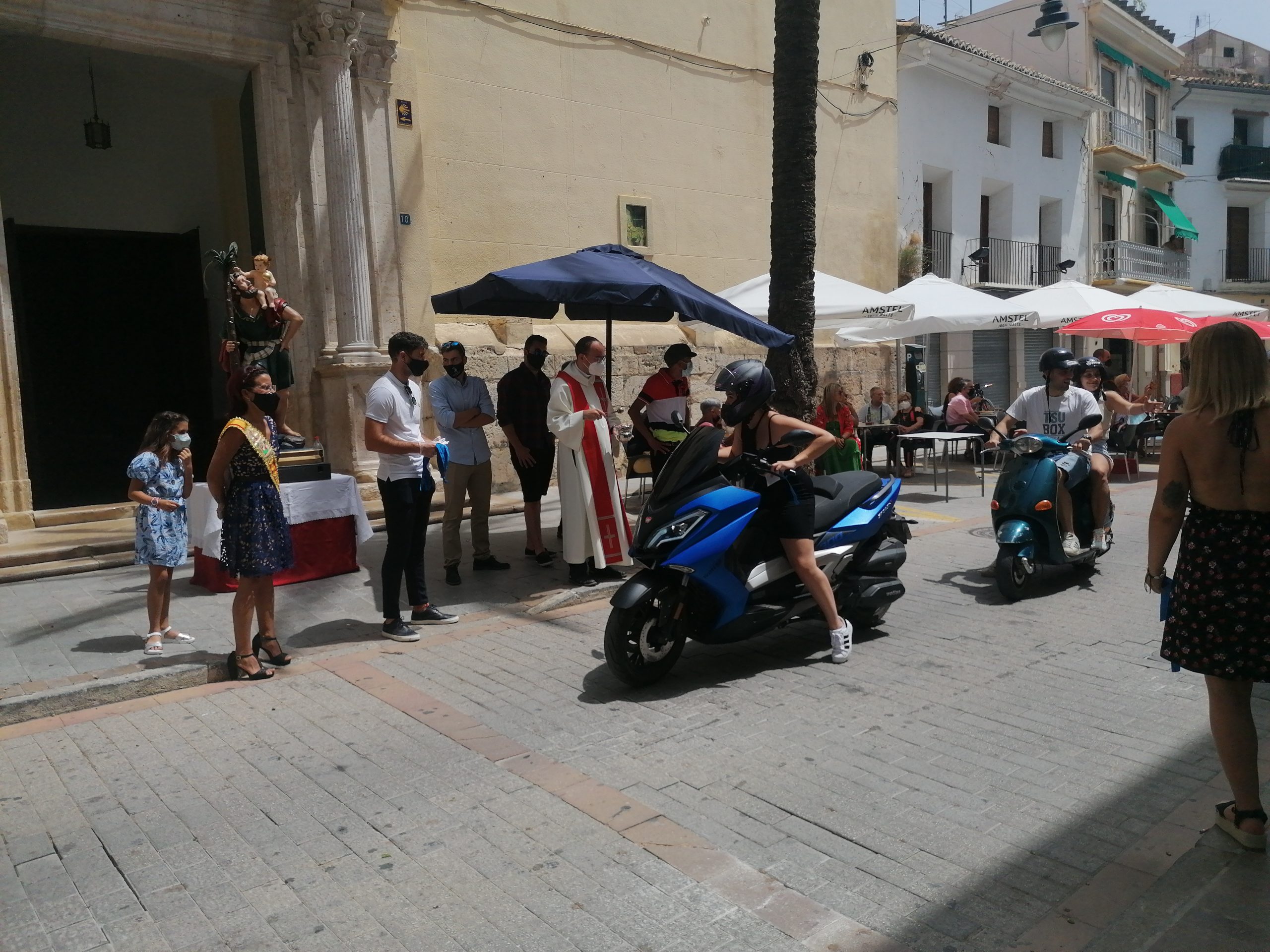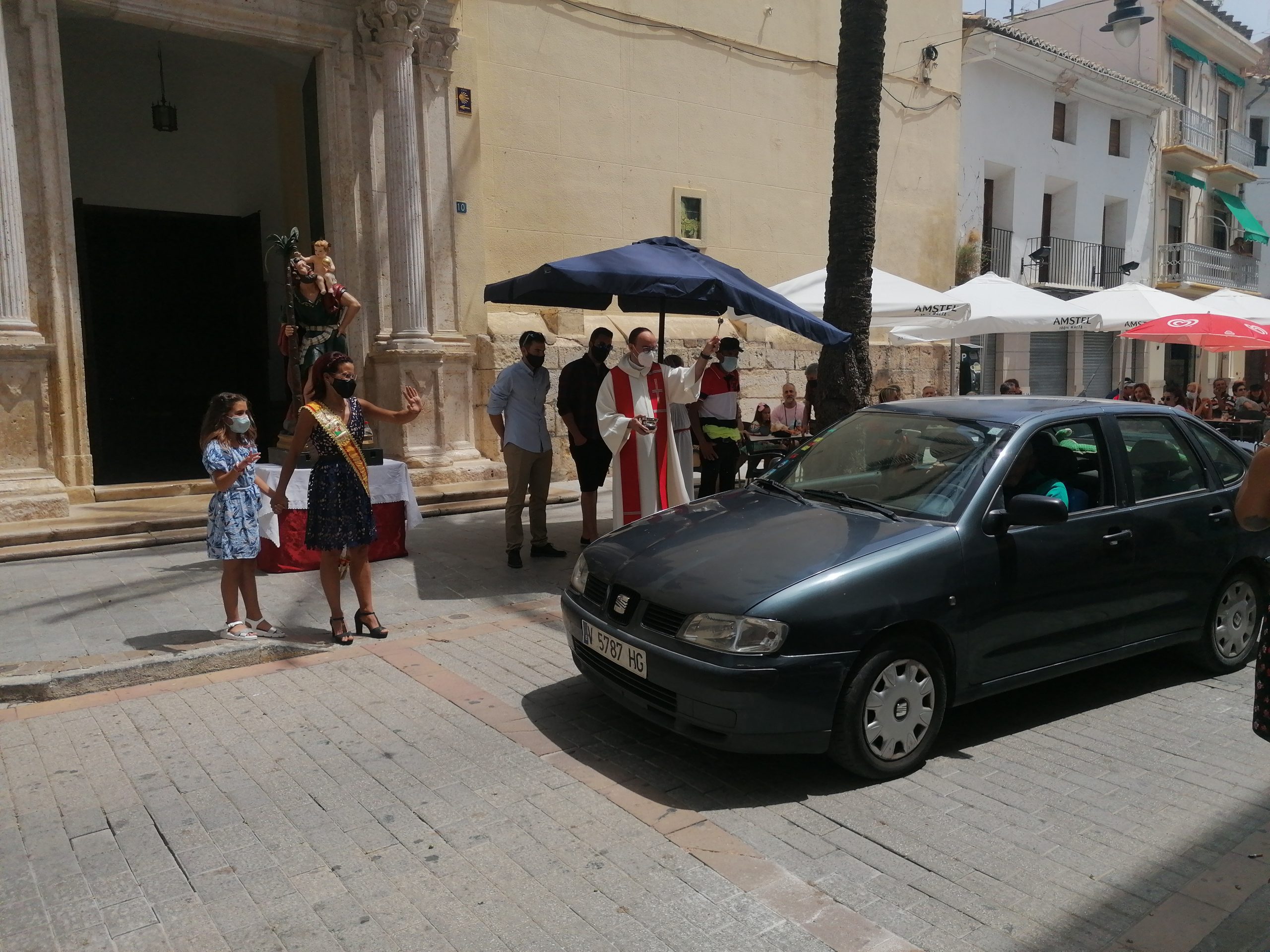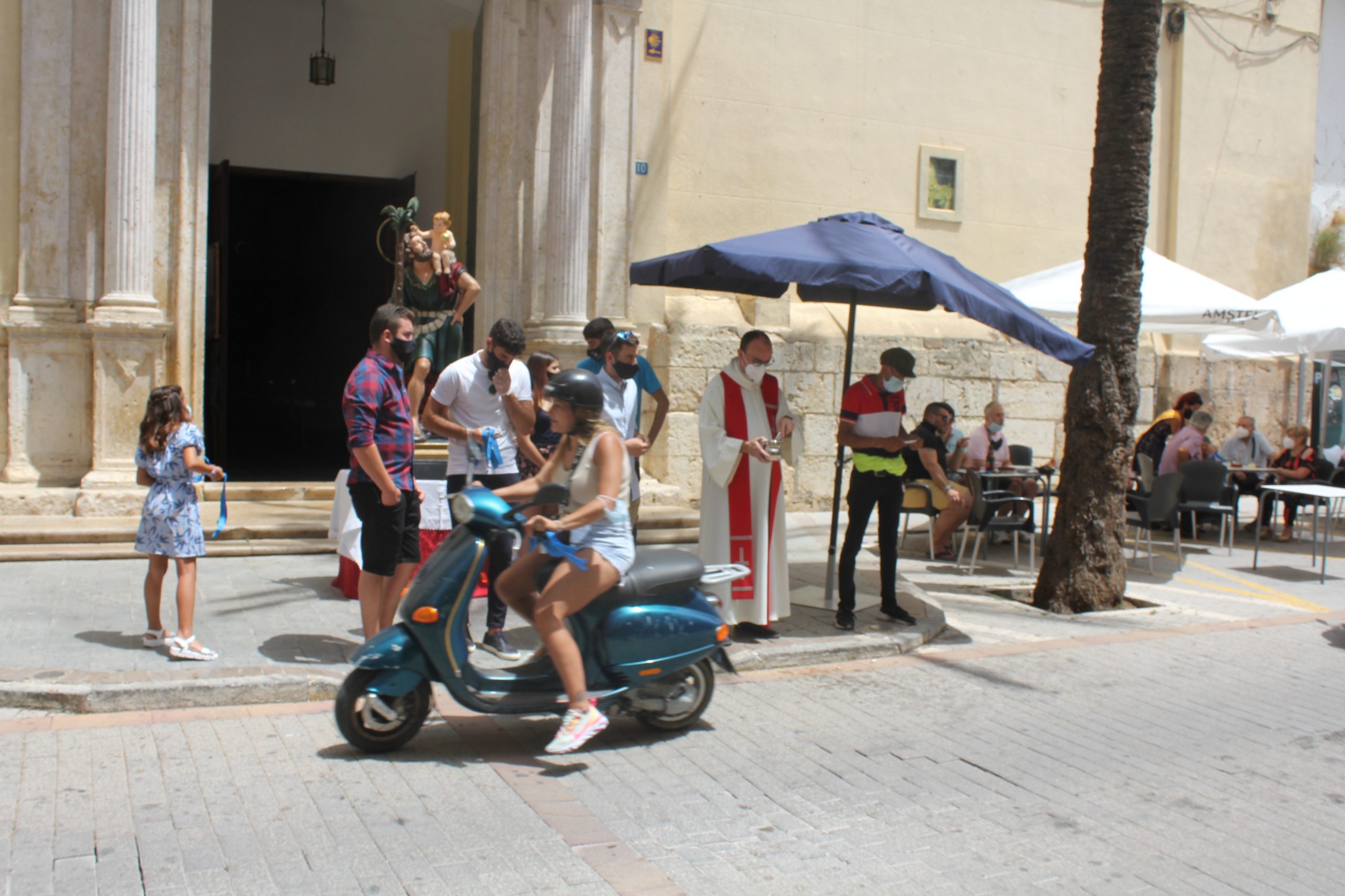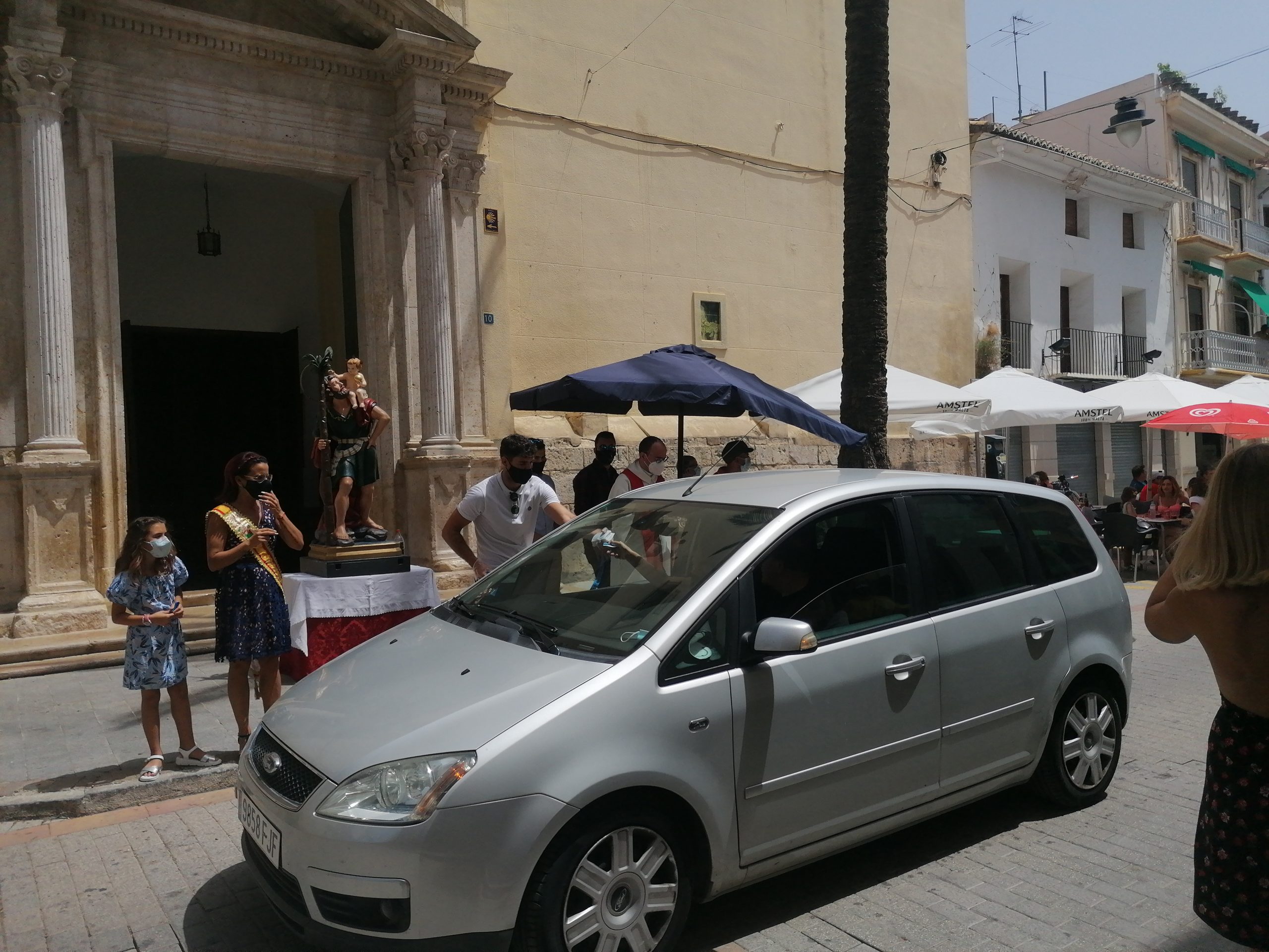 Desde la Avenida de la Violeta, partieron los vehículos que poco a poco, como un pequeño goteo, fueron pasando por la Iglesia San Pedro Apóstol e iban siendo bendecidos por el sino vicario parroquial Arturo Monllory que estuvo acompañado por la representante de la Comisión de San Cristóbal, Azu Calomarde y otros miembros de la asociación.