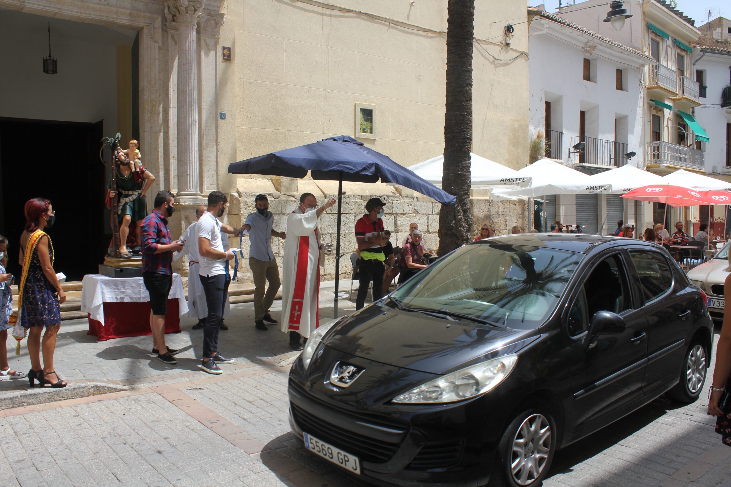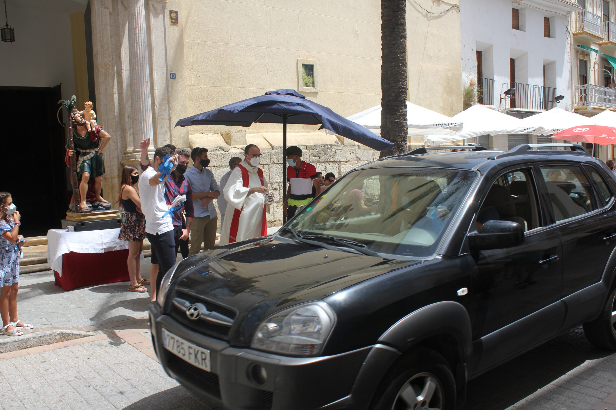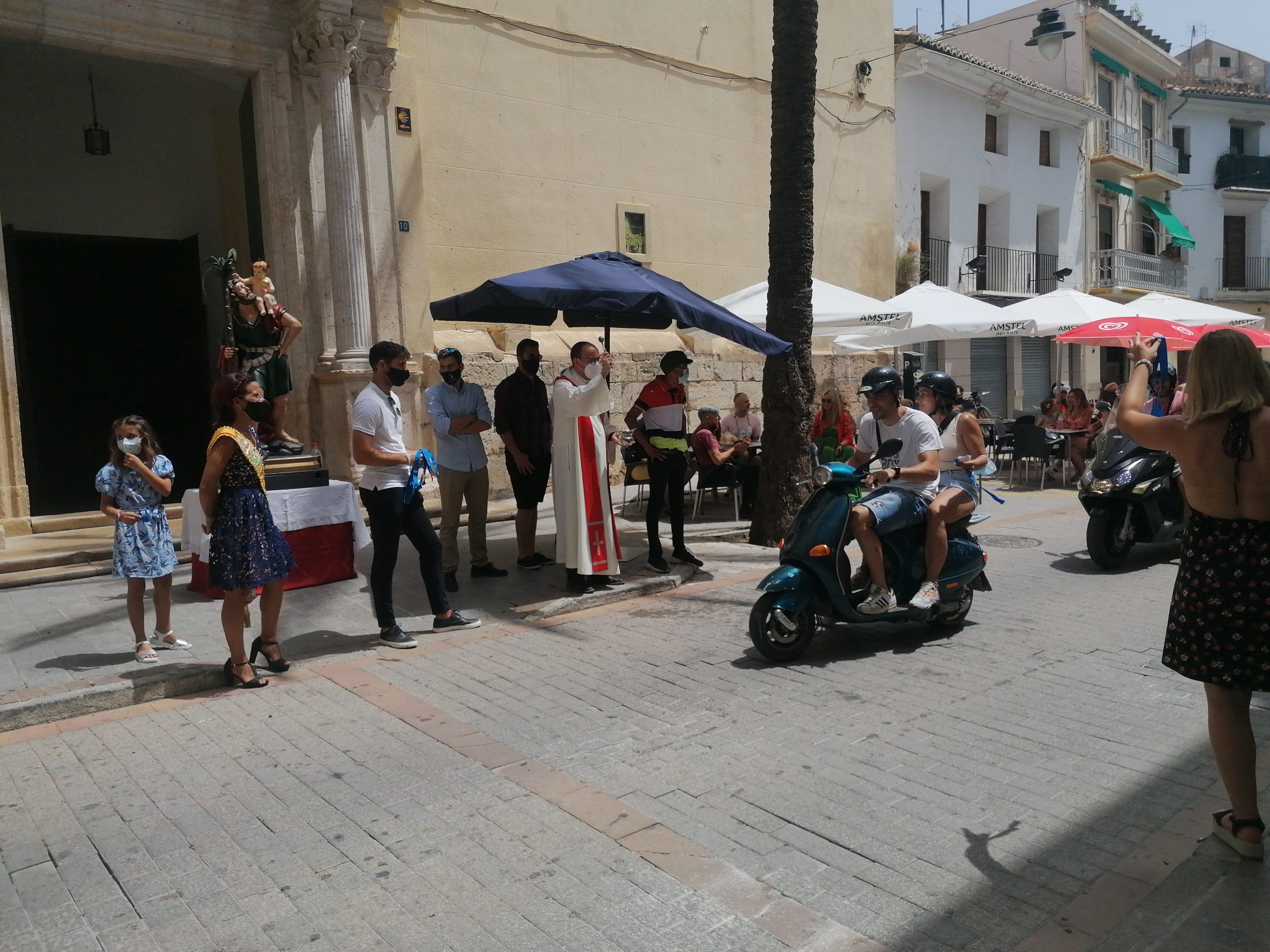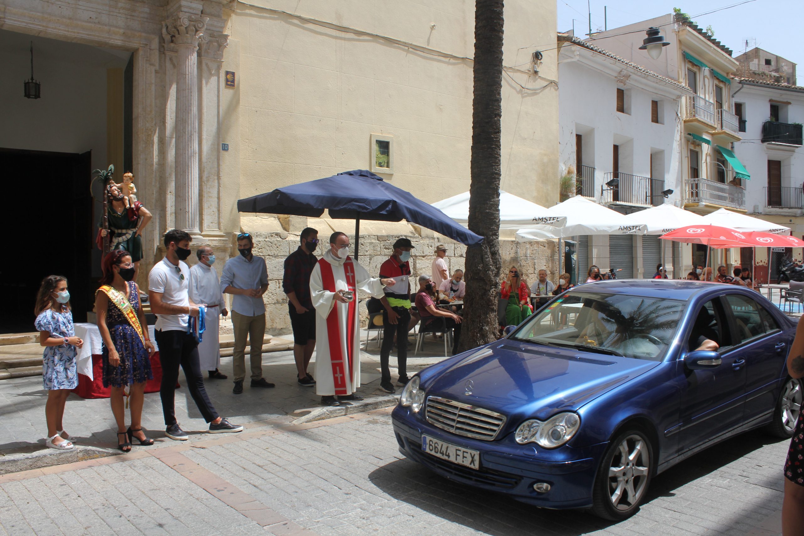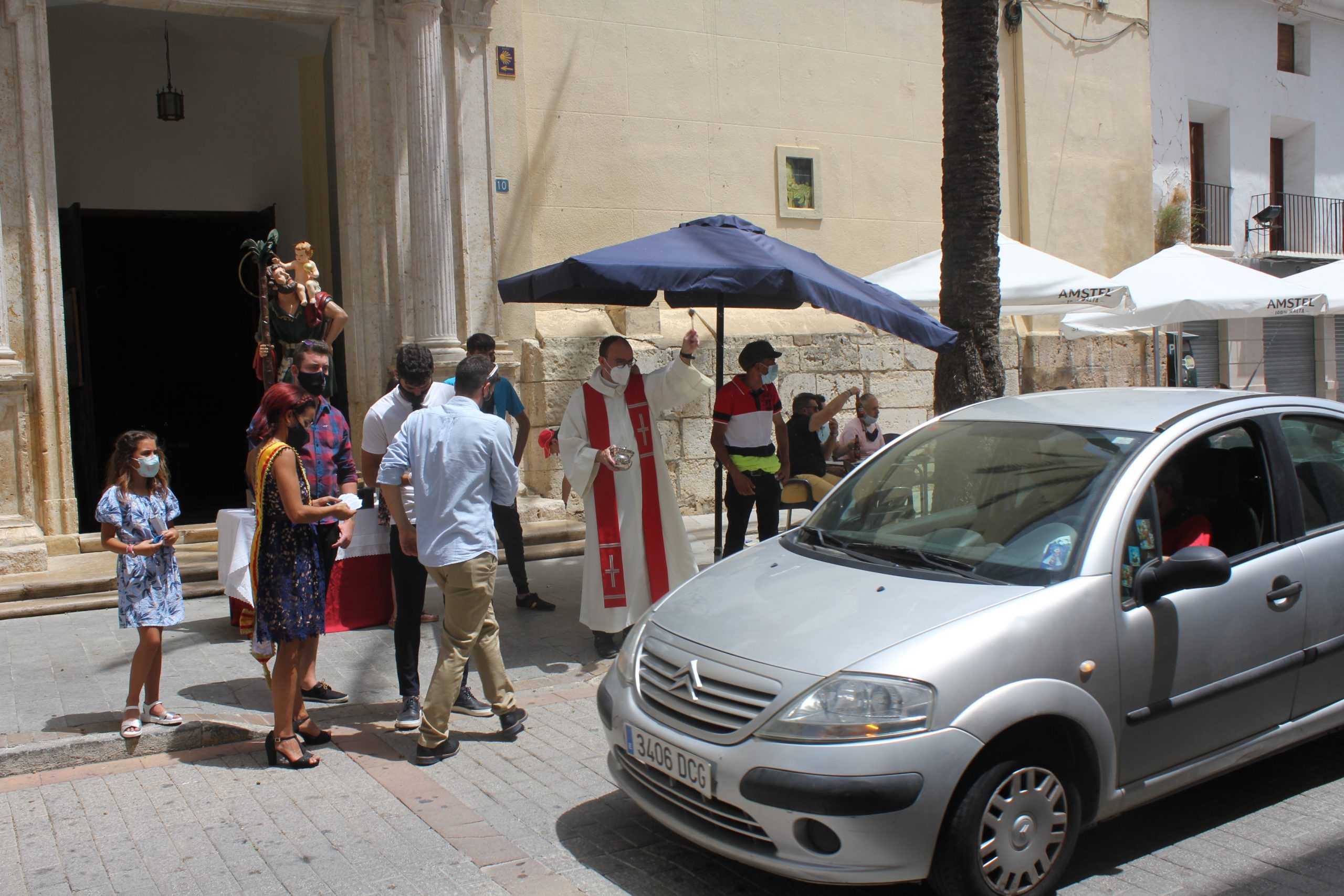 Desde la Avenida de la Violeta, partieron los vehículos que poco a poco, como un pequeño goteo, fueron pasando por la Iglesia San Pedro Apóstol e iban siendo bendecidos por el sino vicario parroquial Arturo Monllory que estuvo acompañado por la representante de la Comisión de San Cristóbal, Azu Calomarde y otros miembros de la asociación.