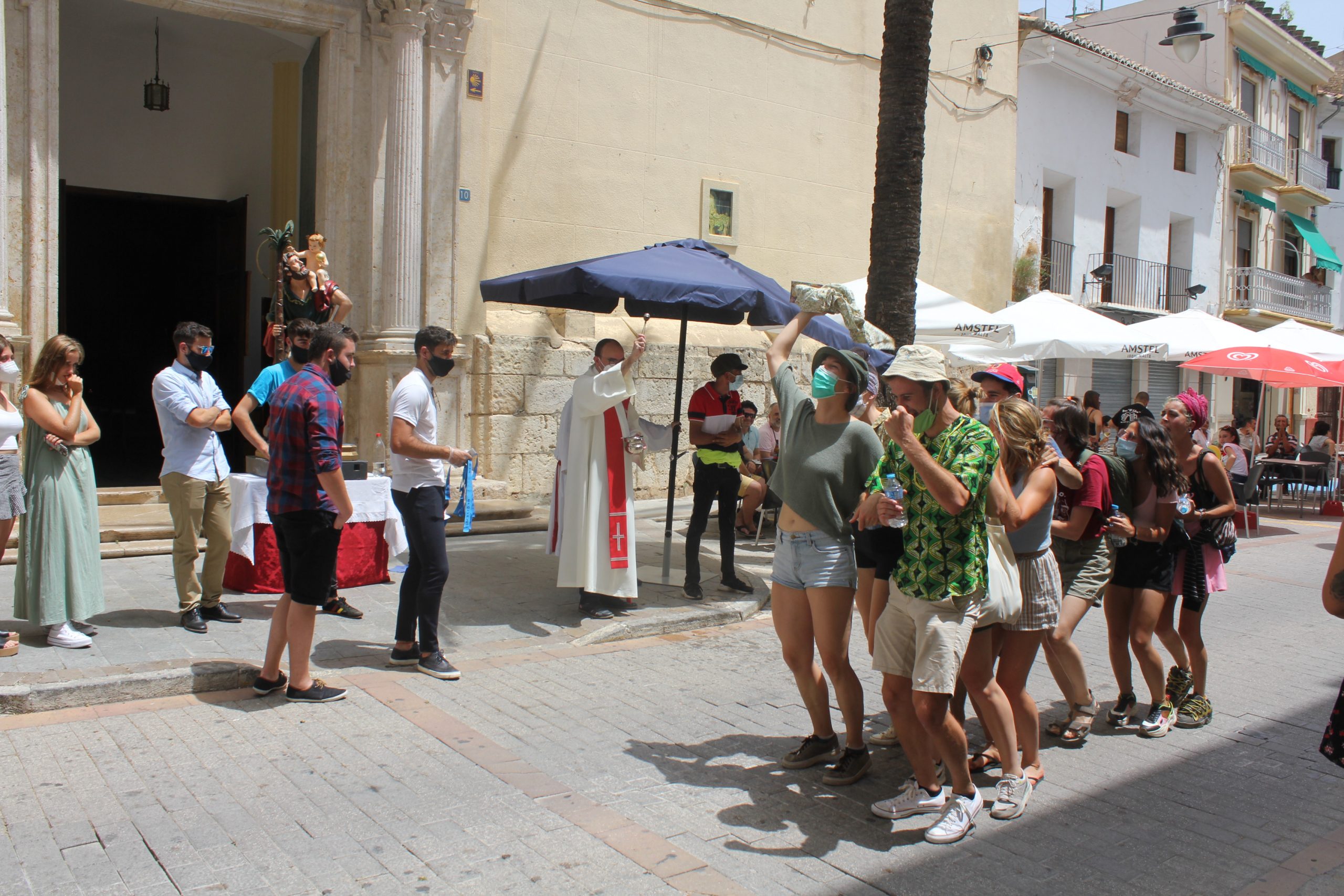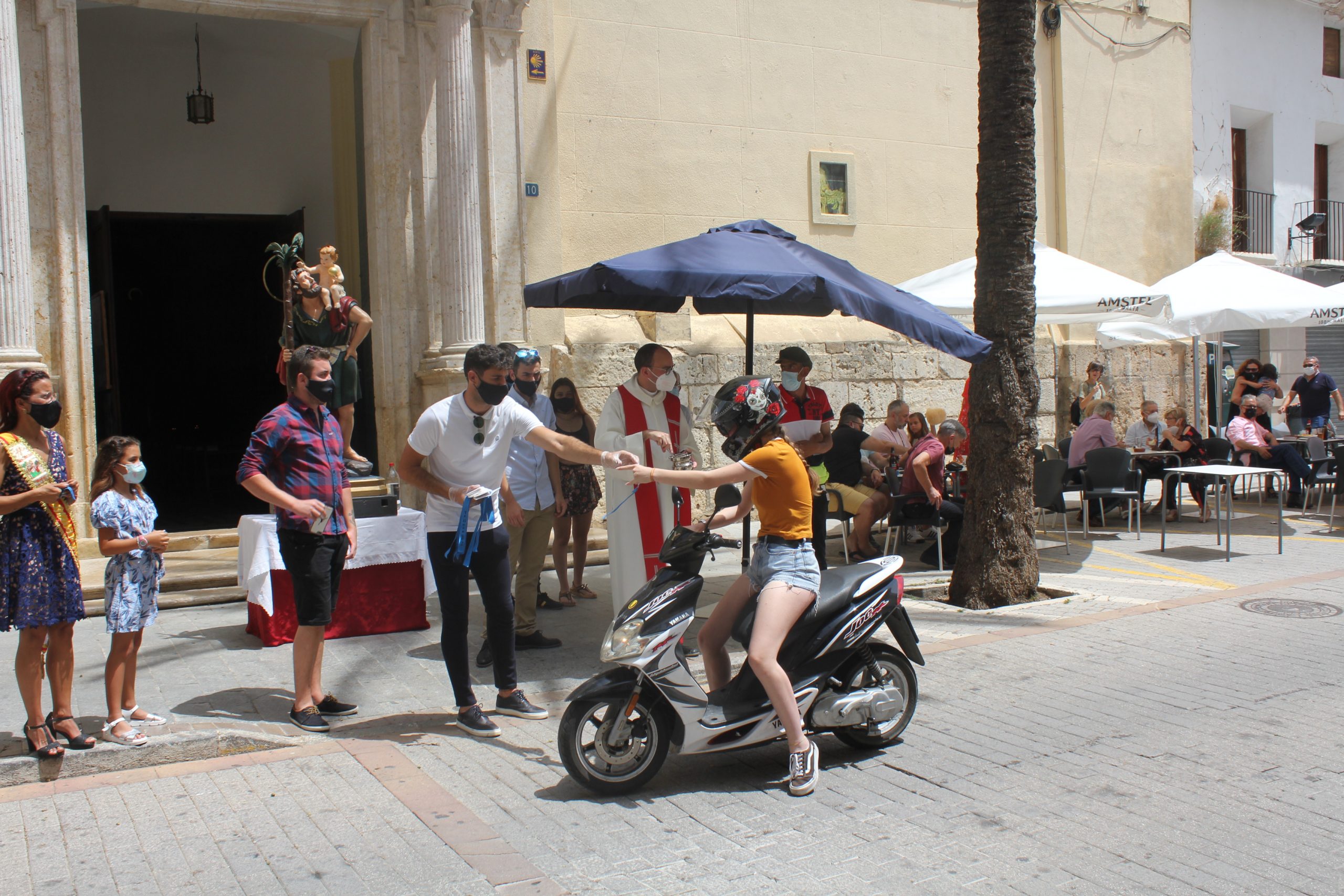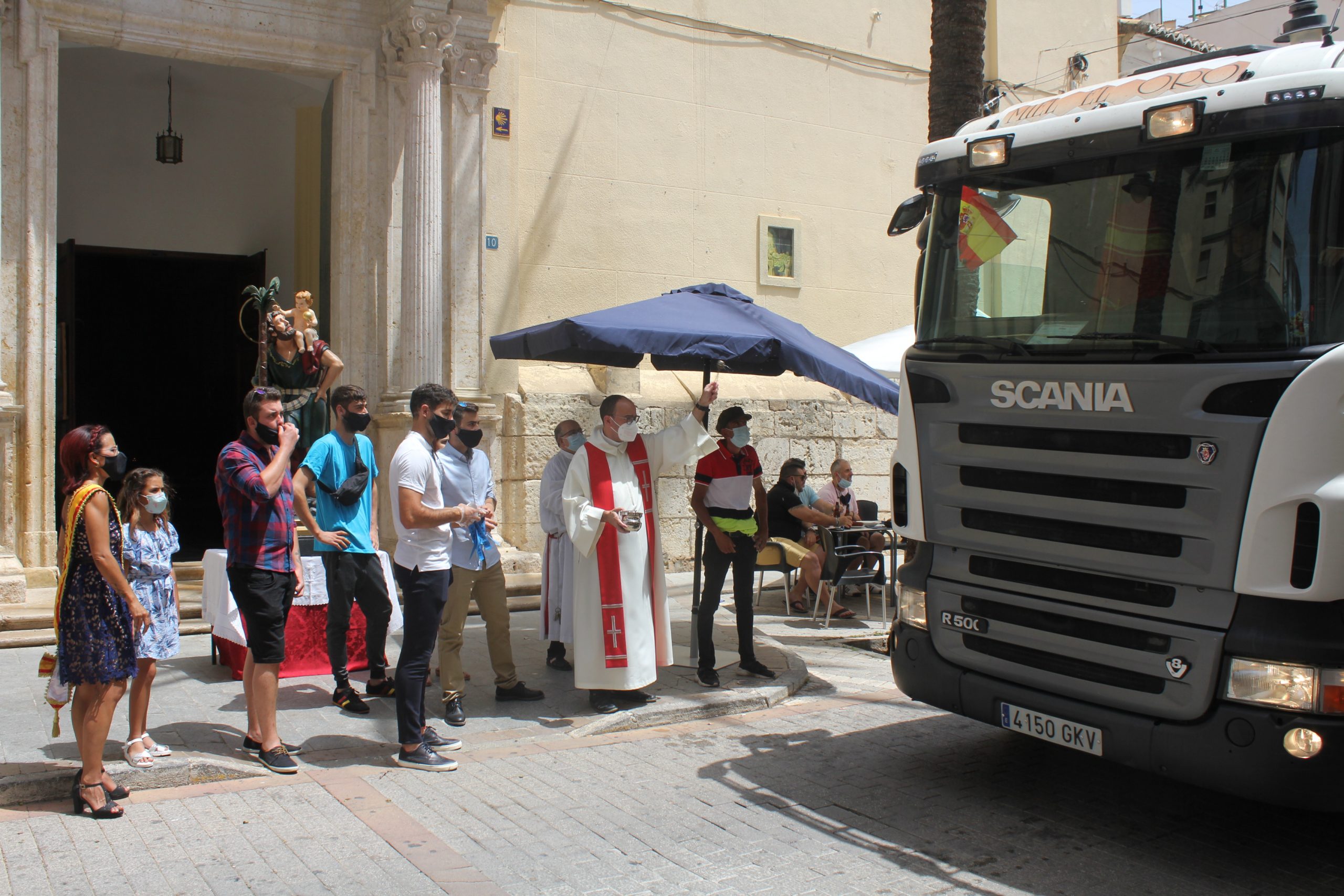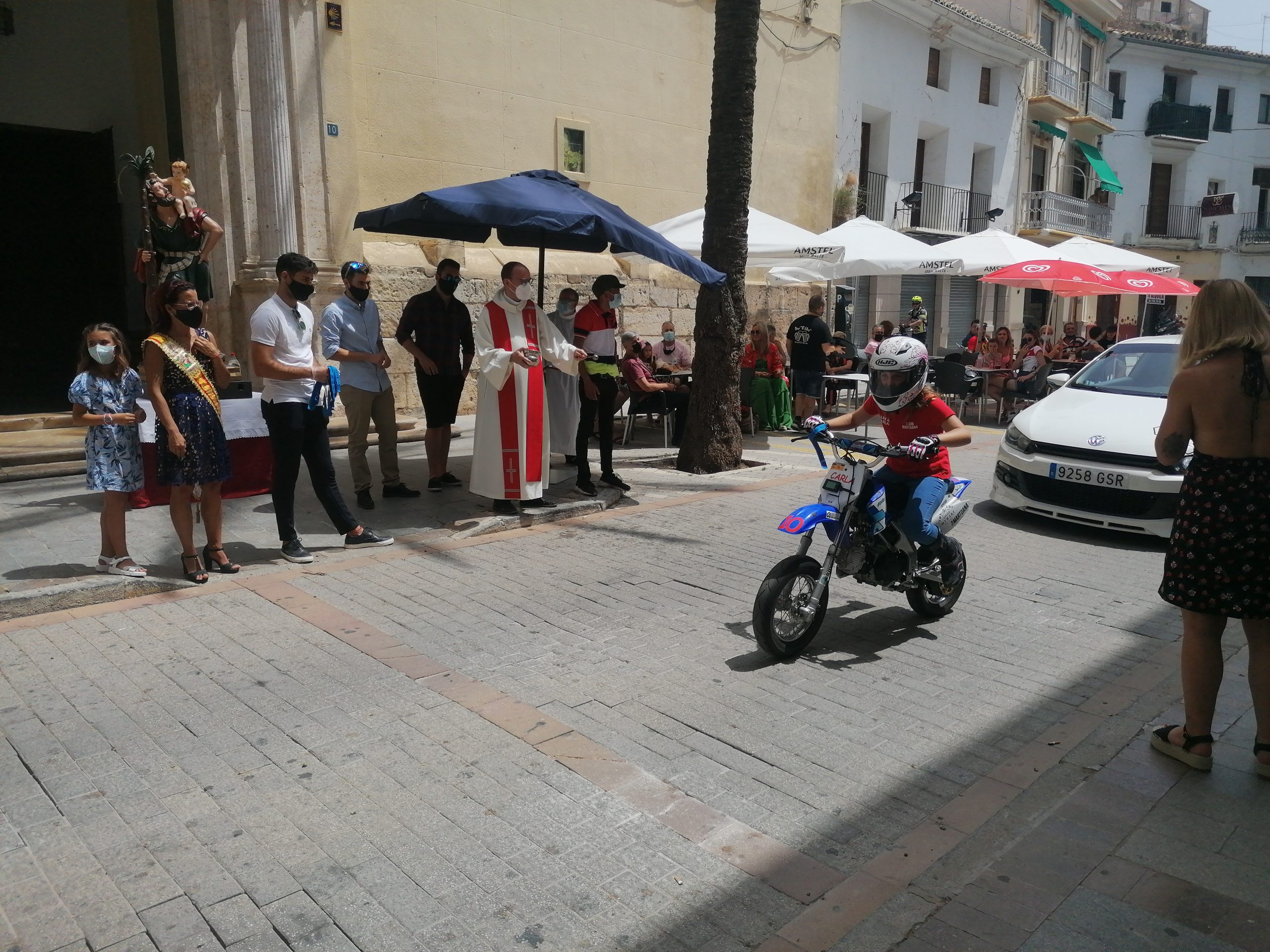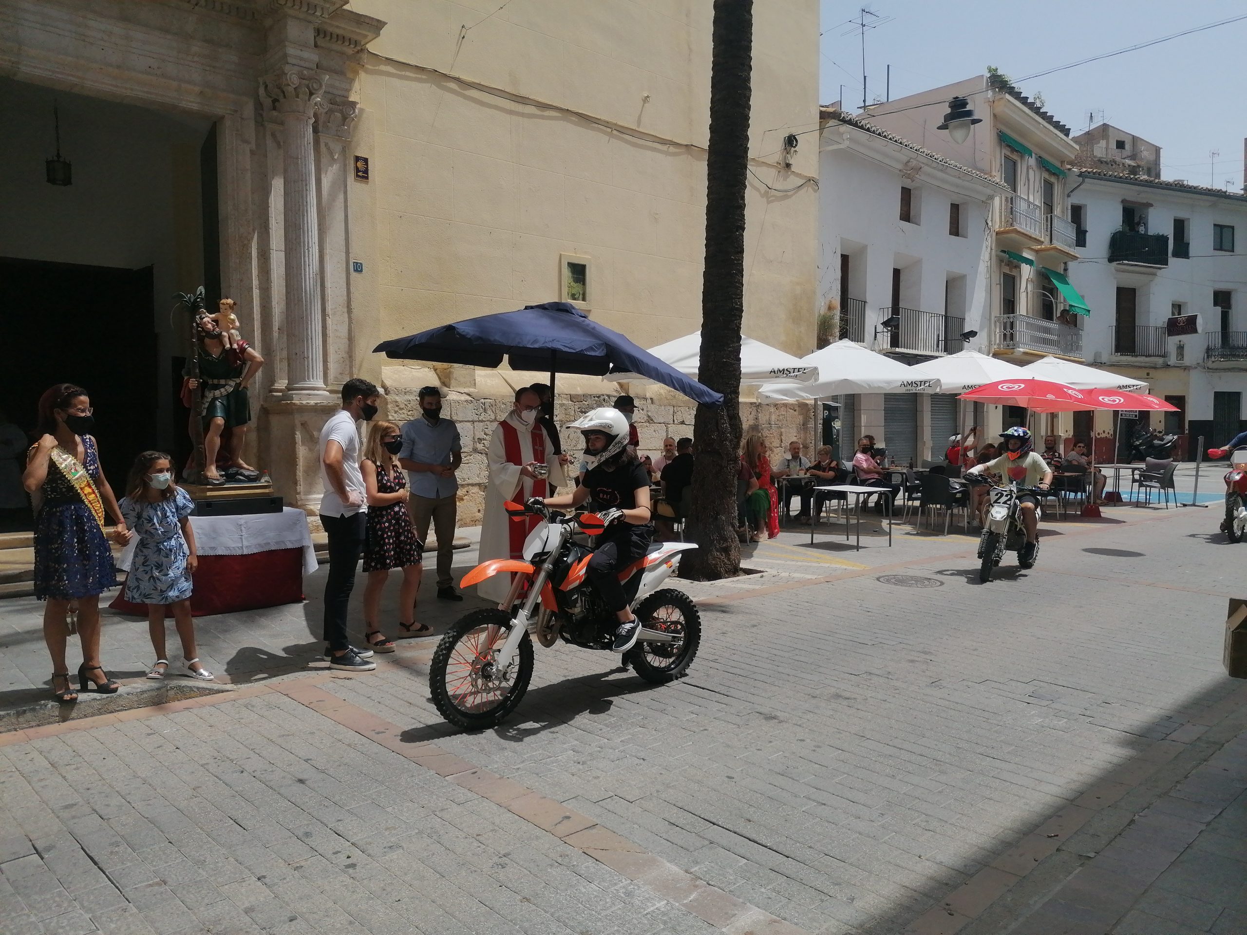 Desde la Avenida de la Violeta, partieron los vehículos que poco a poco, como un pequeño goteo, fueron pasando por la Iglesia San Pedro Apóstol e iban siendo bendecidos por el sino vicario parroquial Arturo Monllory que estuvo acompañado por la representante de la Comisión de San Cristóbal, Azu Calomarde y otros miembros de la asociación.