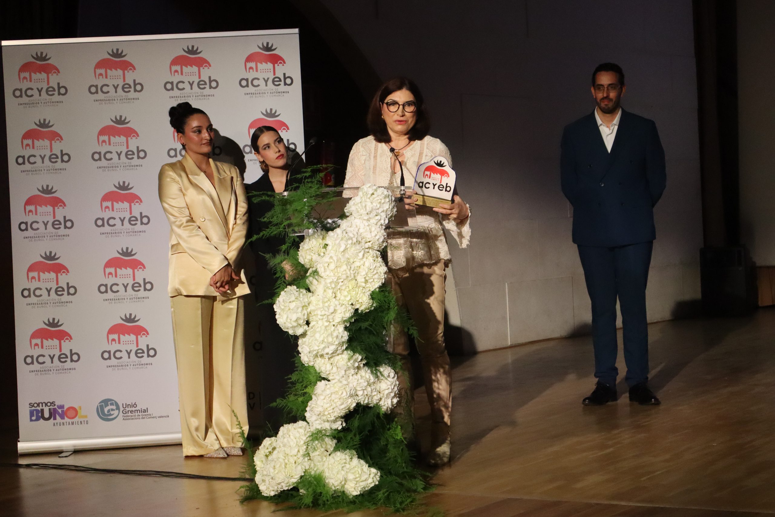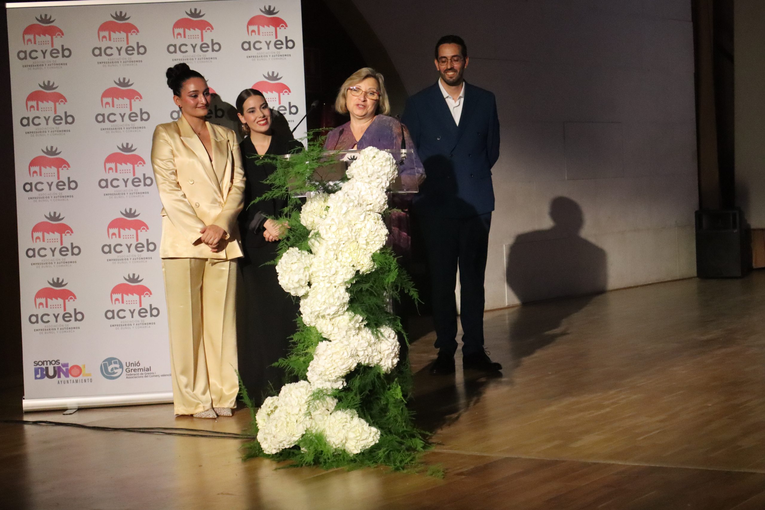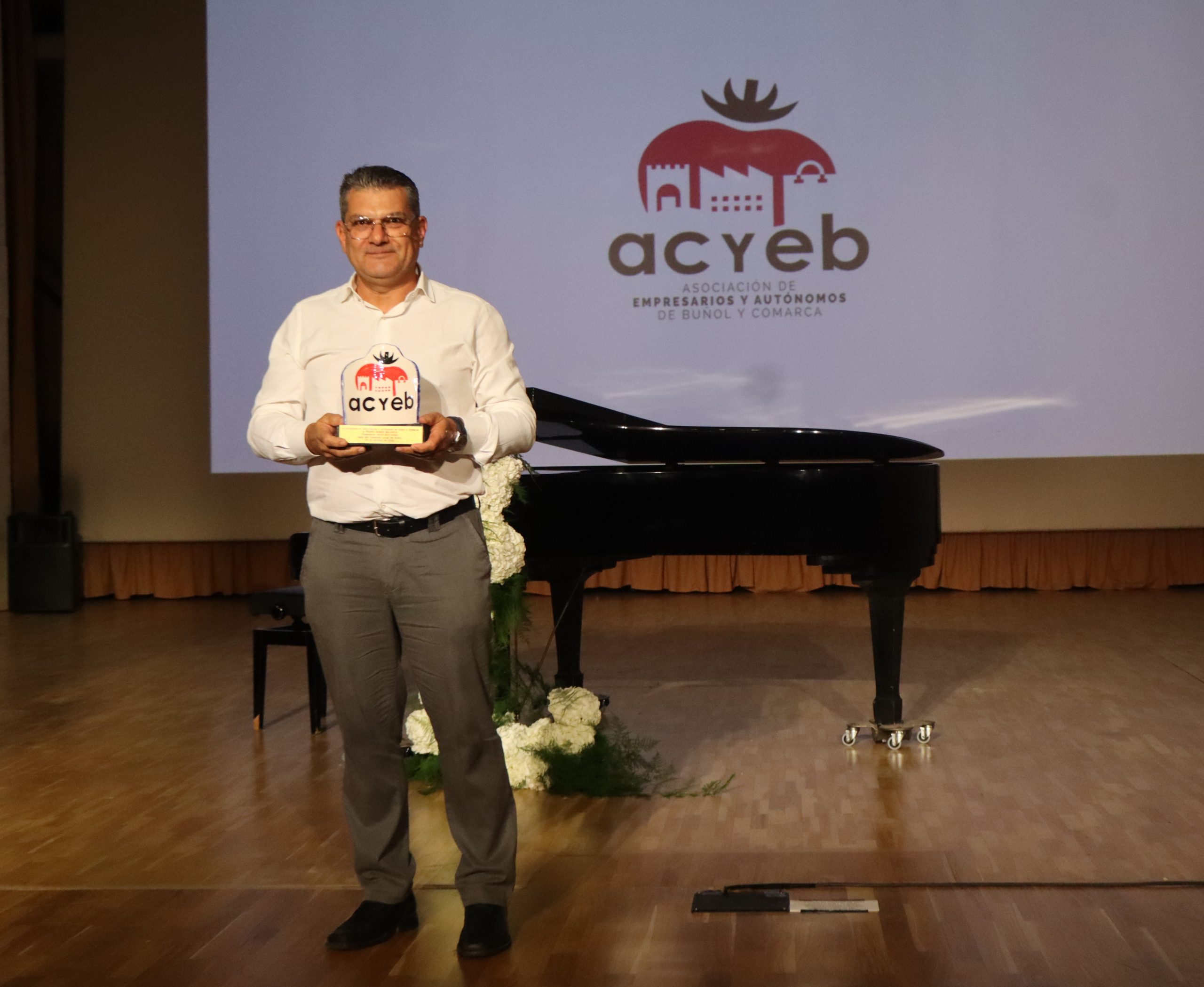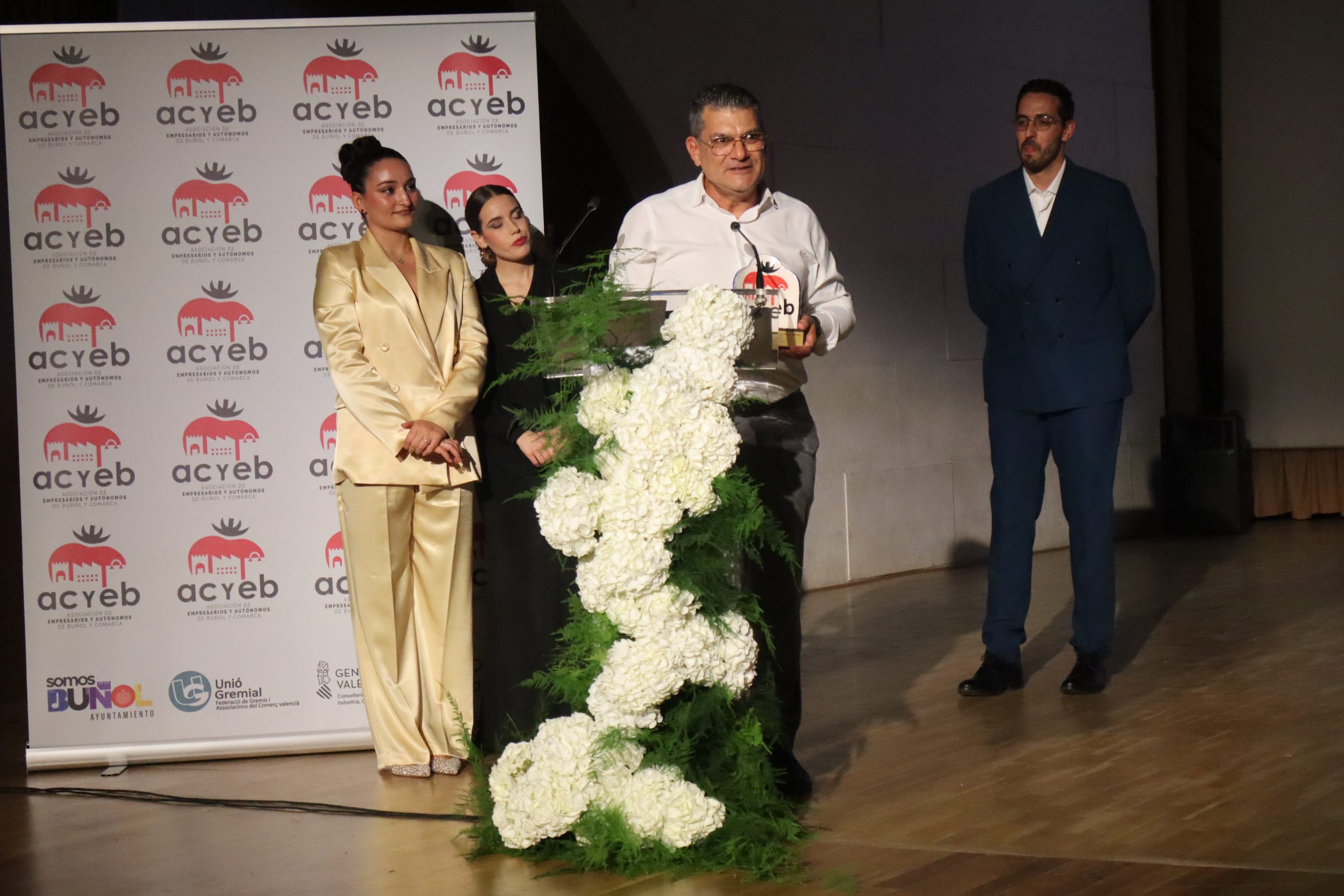 También se rindió homenaje a Pedro Rubio, quien culminó su etapa al frente de la presidencia de la Asociación de Empresarios y Autónomos de Buñol tras ocho años de trabajo incansable en favor del sector. La gala contó además con momentos de humor, protagonizados por un monologuista invitado, que aportó un tono distendido y cercano a la velada.