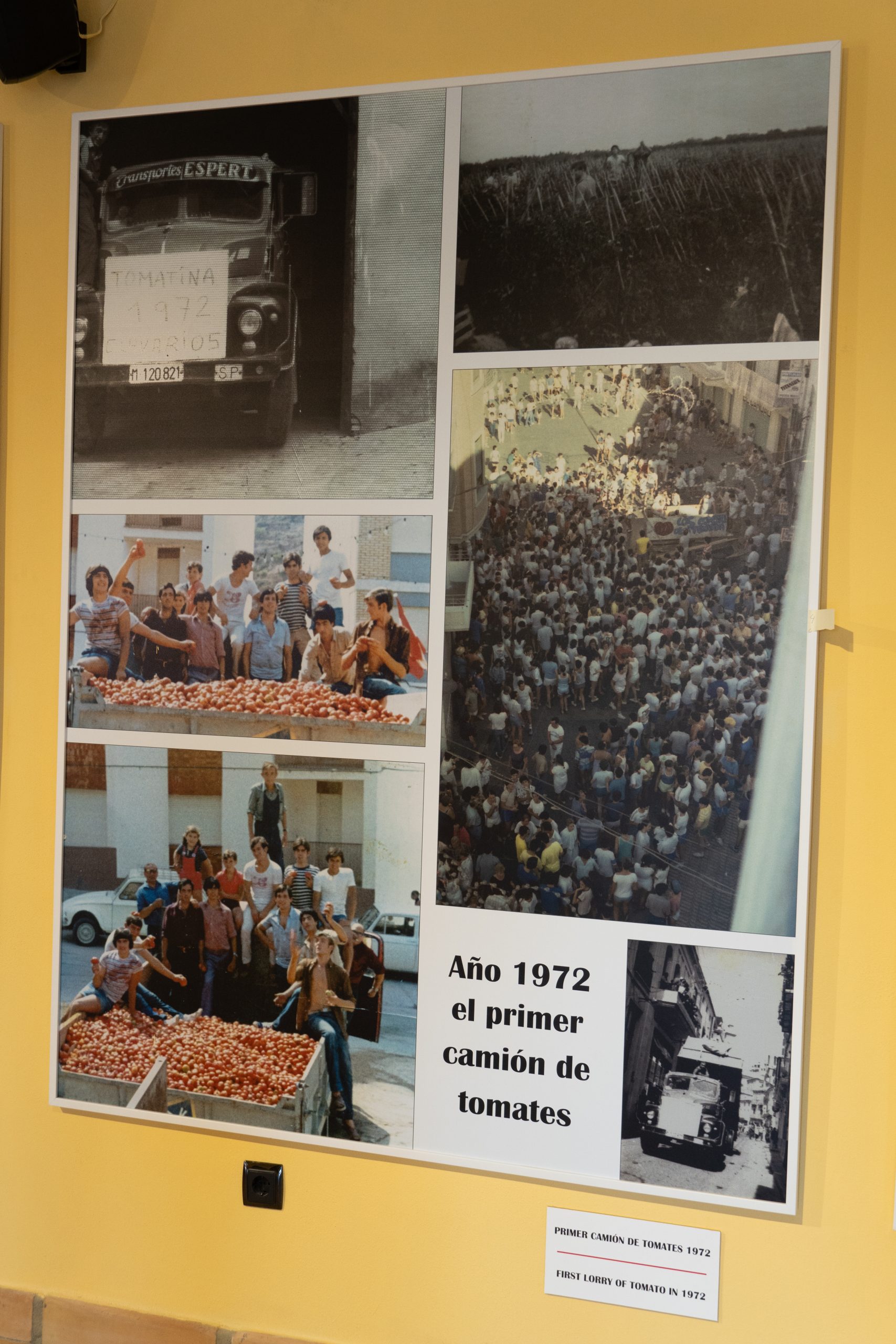 El paseo por la historia de la famosa guerra de tomates continúa a través de fotografías donde se puede ver la evolución de esta fiesta popular. Gracias a la renovación, llevada a cabo con subvenciones de Turismo y fondos del Consistorio de Buñol, ahora el visitante realiza este recorrido con una tablet donde Tico, la mascota de la Tomatina, cuenta la historia de forma entretenida y con la ayuda de la realidad aumentada para que el público más pequeño disfrute de la exposición.