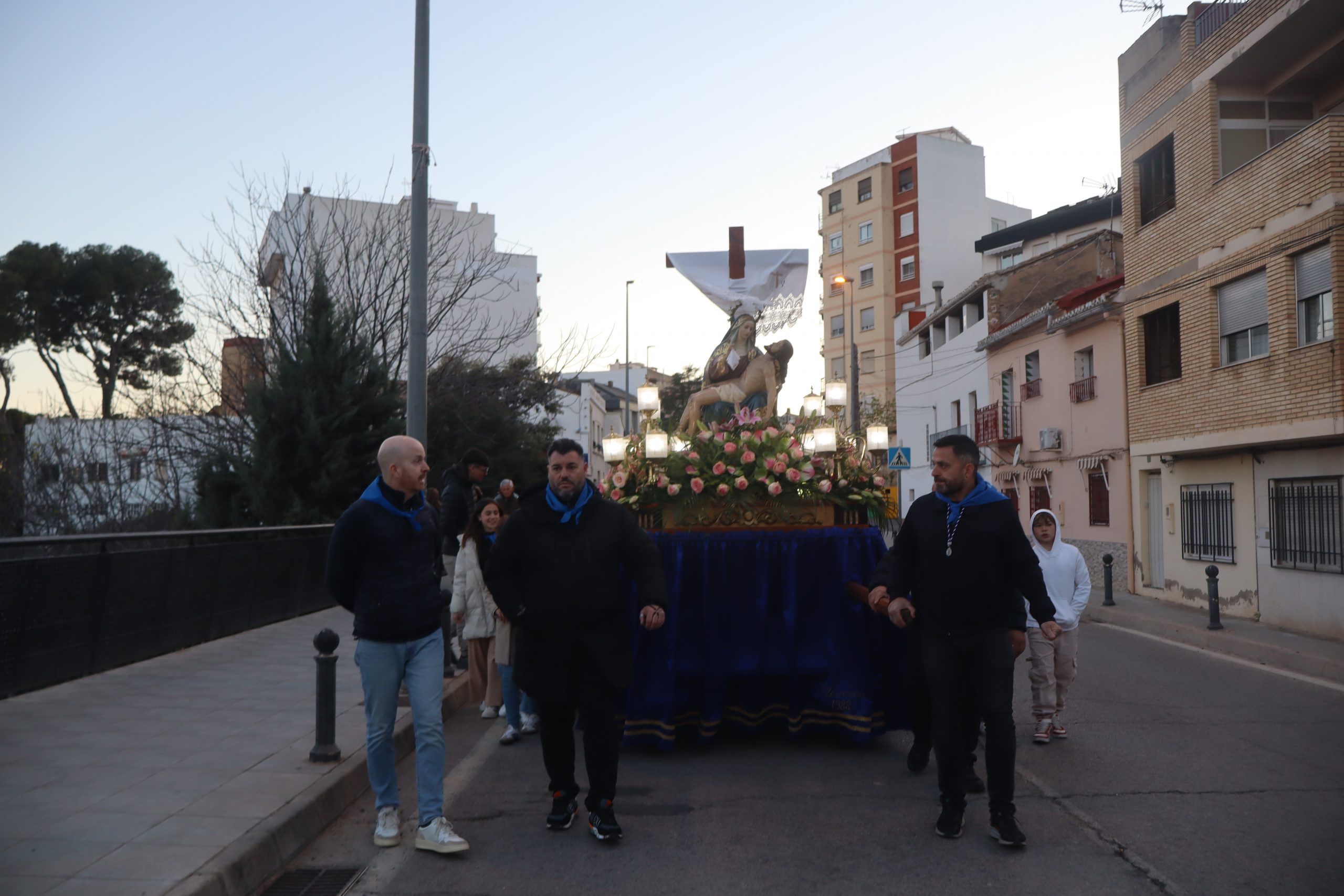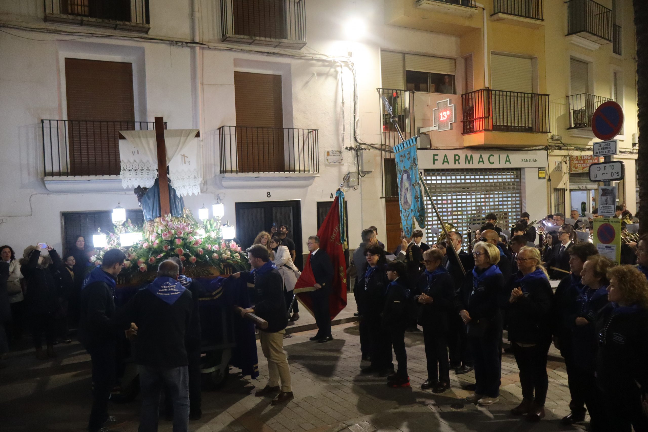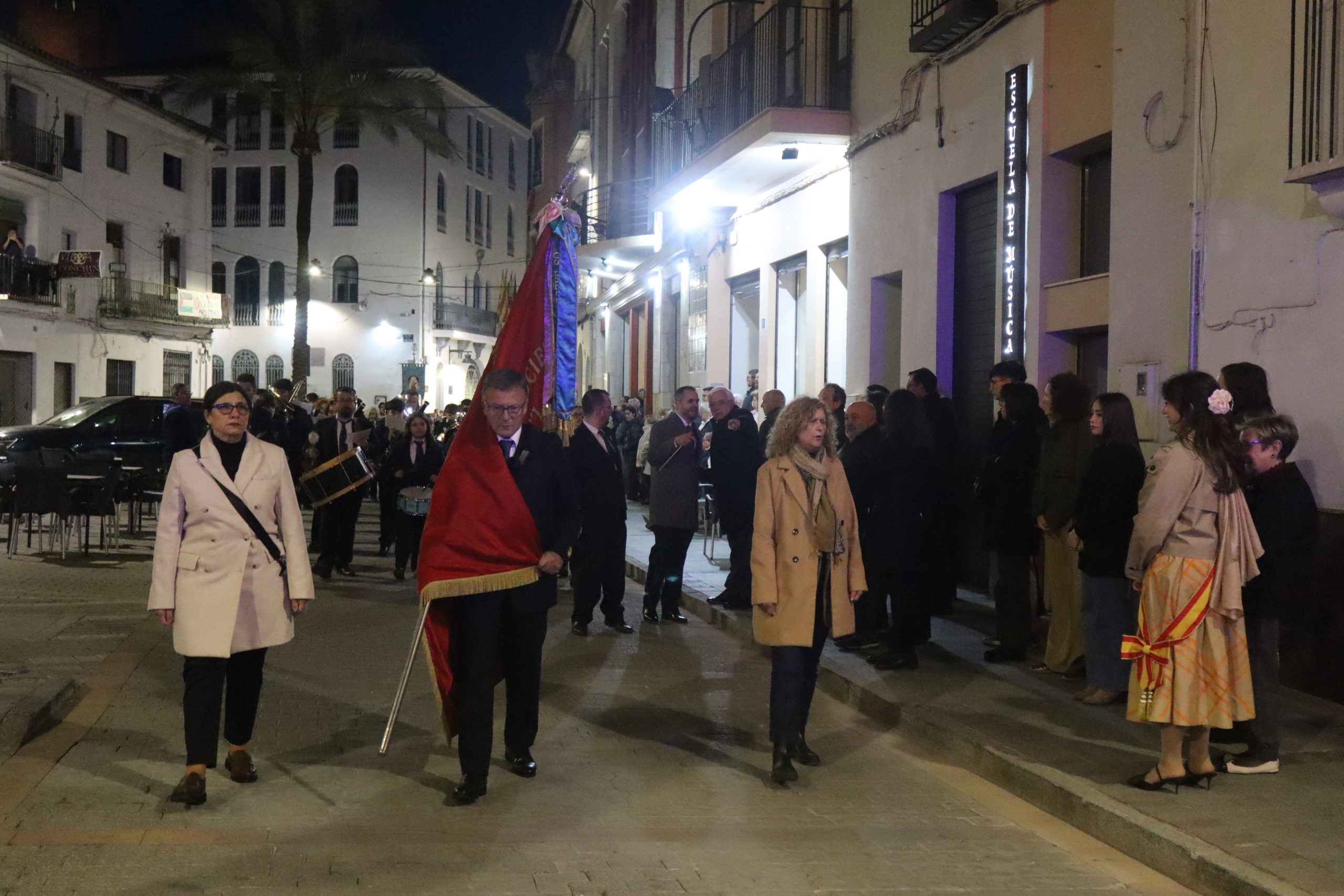 El acto estuvo presidido por el párroco de la localidad, Enrique Boronat, y contó con la presencia de la alcaldesa, Virginia Sanz, junto a miembros del equipo de gobierno. La procesión reunió además a la junta directiva de la cofradía, en una Semana Santa especialmente significativa por el estreno de su nueva presidenta, Pilar García Abellán, quien asume el cargo en sustitución de Rosa Ferrer.