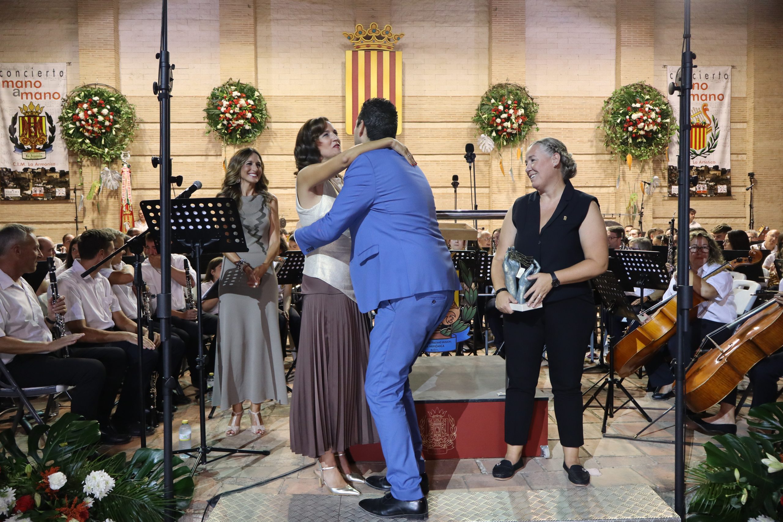 La periodista Rosa Romero fue la encargada de presentar un acto que comenzó con la actuación del CIM La Armónica, dirigido por Saül Gómez. “Los Litros” abrieron la velada con “El dolor a través de la música”, un programa que convirtió cada nota en un acto de homenaje, de memoria y de tributo a dos miembros muy queridos de la banda que partieron este año. La Armónica sorprendió tanto por la calidad de su interpretación como por la incorporación de diferentes sorpresas a lo largo de su programa que enriquecieron la puesta en escena: la presencia de dos bailarines clásicos que acompañaron a la banda y la participación de un coro, que aportaron una dimensión sonora y visual añadida al repertorio y provocaron la ovación cerrada de los asistentes.