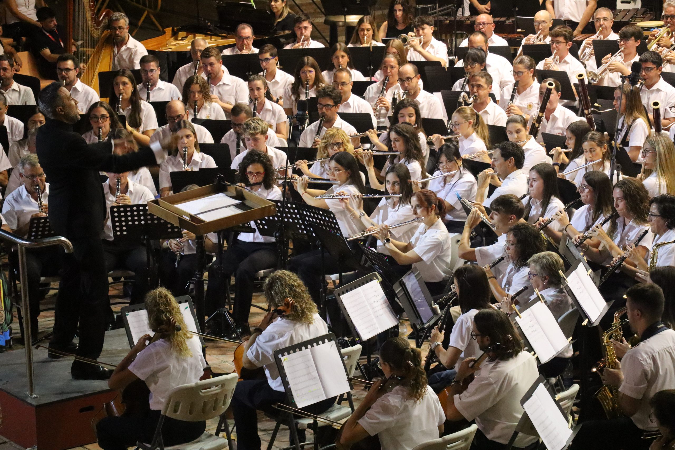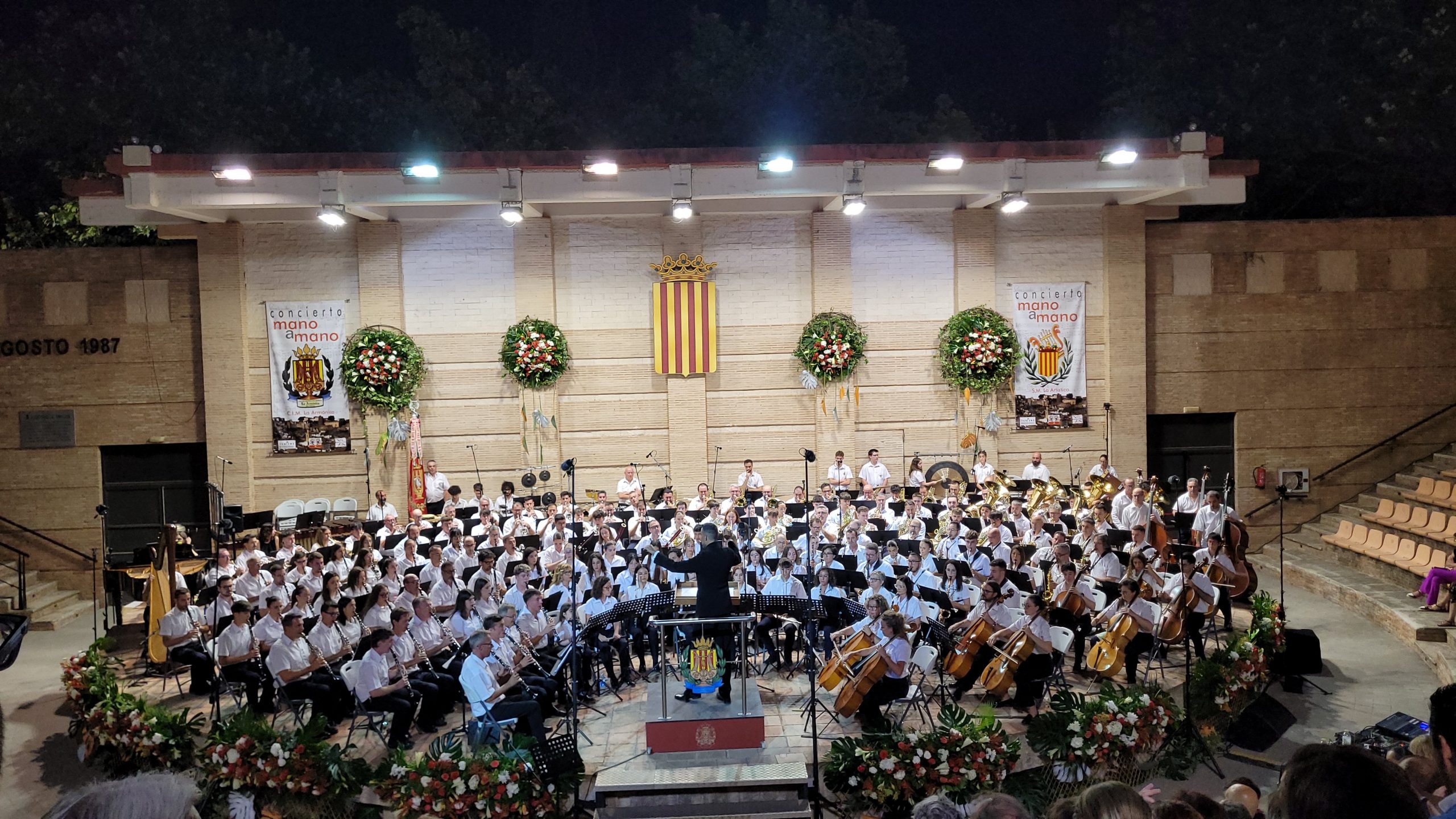 Redacción.- El Auditorio de San Luis volvió a convertirse este sábado 16 de agosto en el epicentro musical de la Comunitat Valenciana con la celebración de la 50ª edición del Concierto Mano a Mano de Buñol, una cita que reunió a más de 300 músicos de las sociedades musicales del municipio y que puso al público en pie en una velada cargada de emoción y excelencia musical.