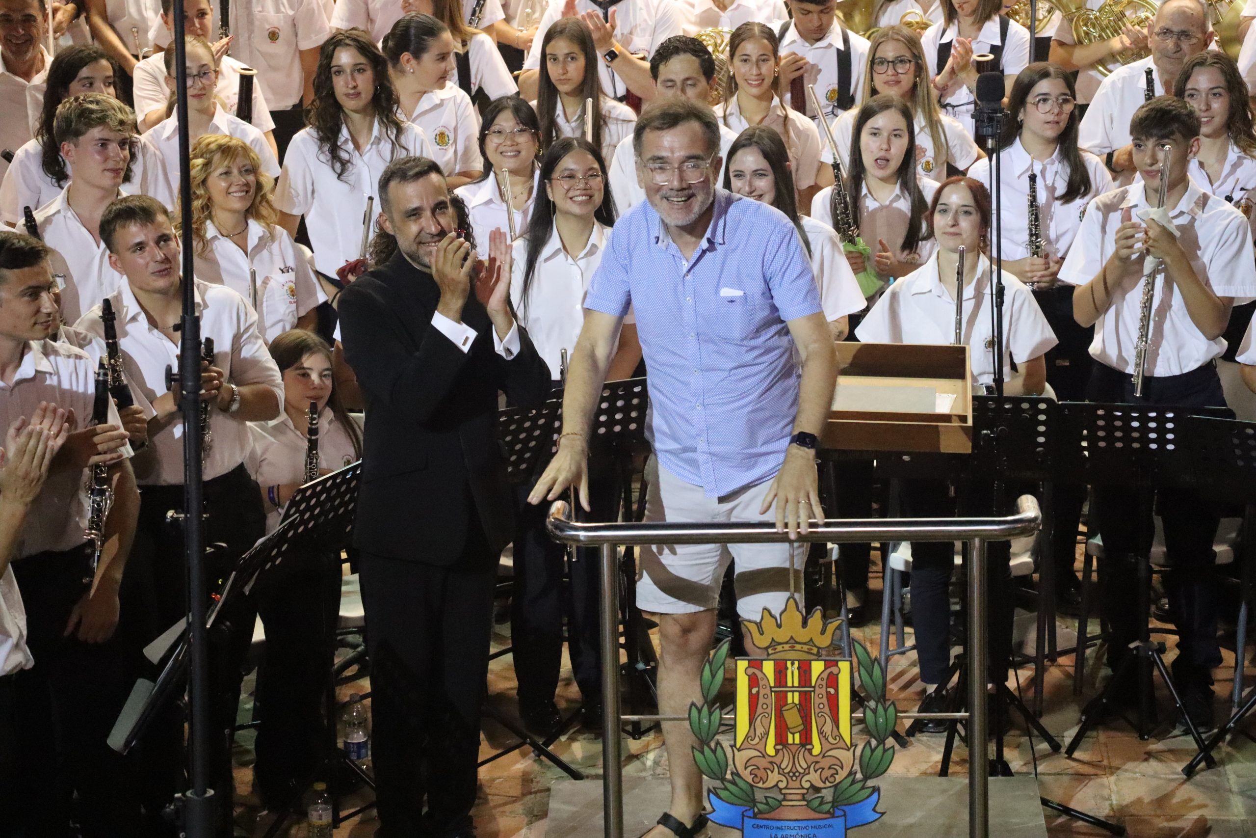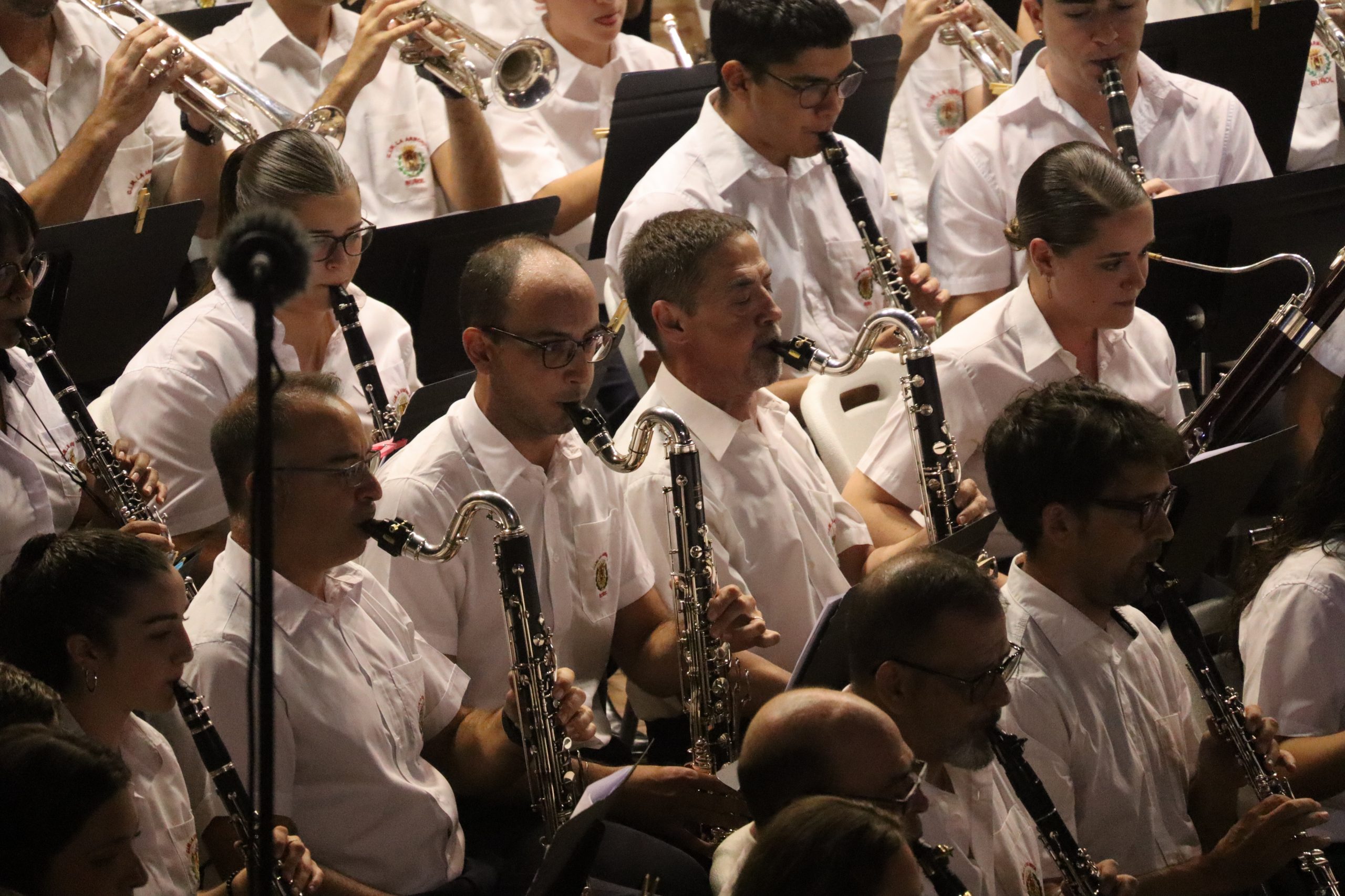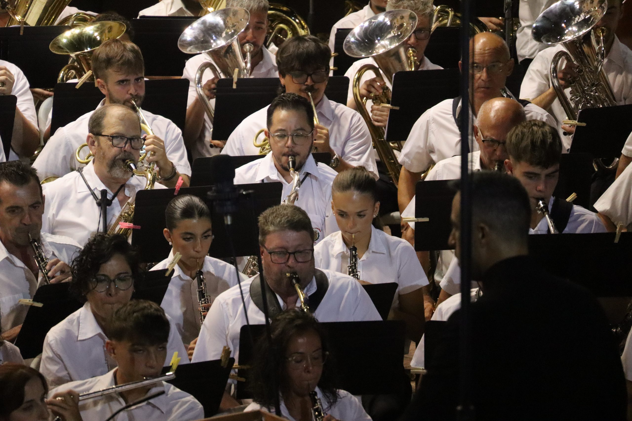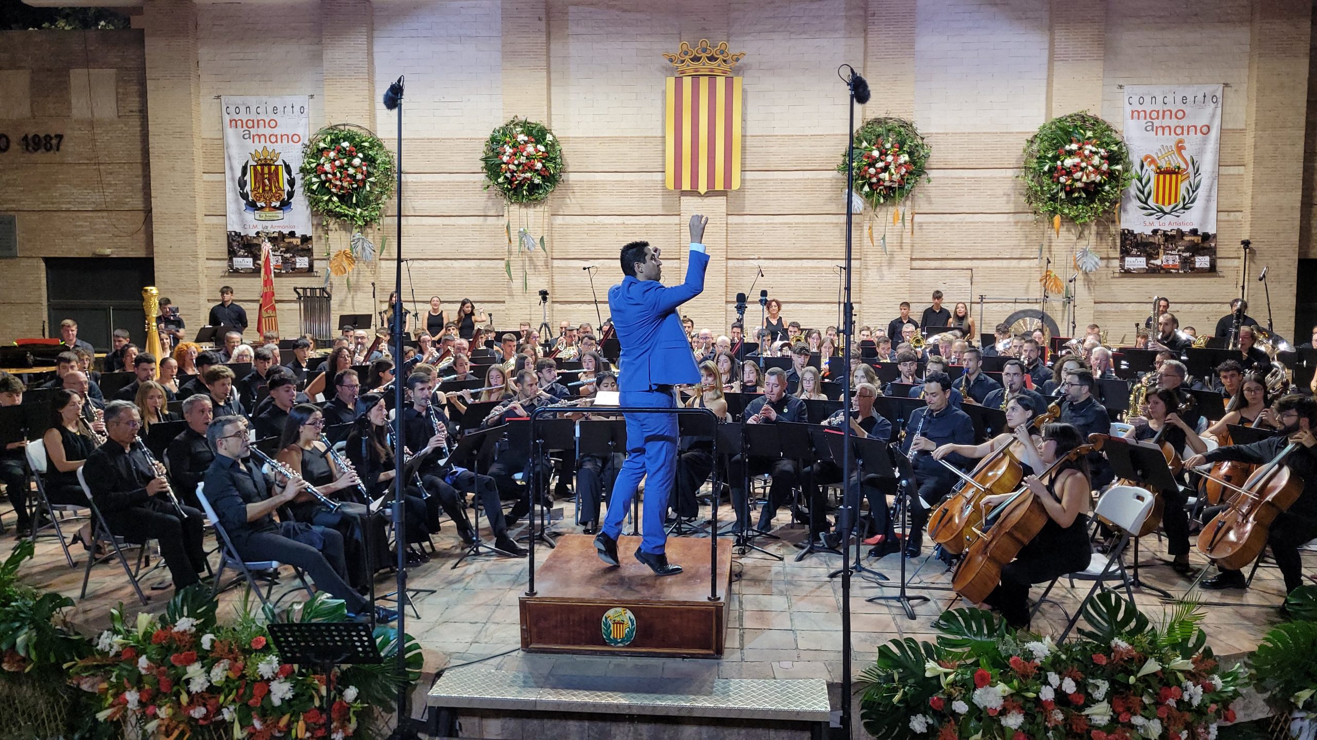 Tras ellos, llegó el turno de la SM La Artística bajo la batuta de Mario Ortuño, quien vivió su último Mano a Mano como director de la sociedad. “Los Feos” desplegaron toda su fuerza y solidez artística con un repertorio que emocionó al público y que puso en valor el carácter de una banda en plena transformación a través de su programa “Metamorfosis”. La despedida de Ortuño estuvo marcada por la emoción compartida entre músicos y asistentes, que reconocieron su labor con un largo aplauso puesto en pie.