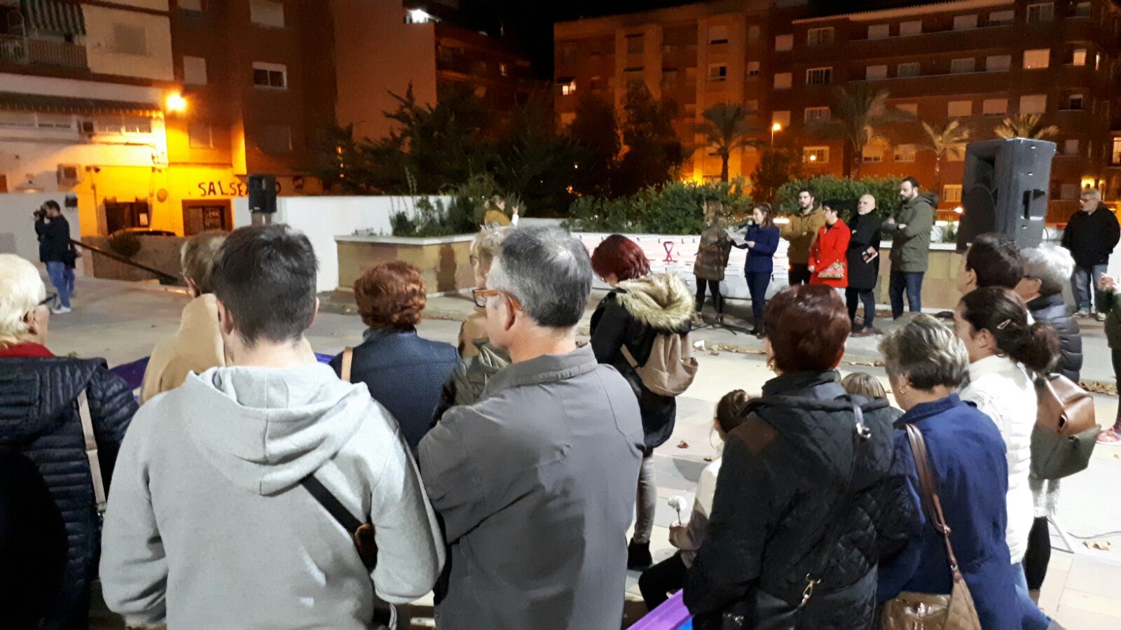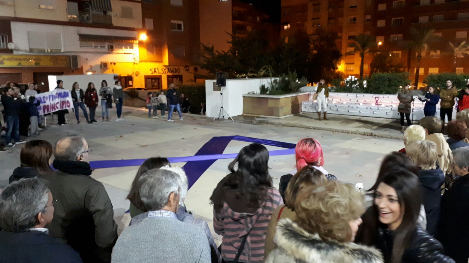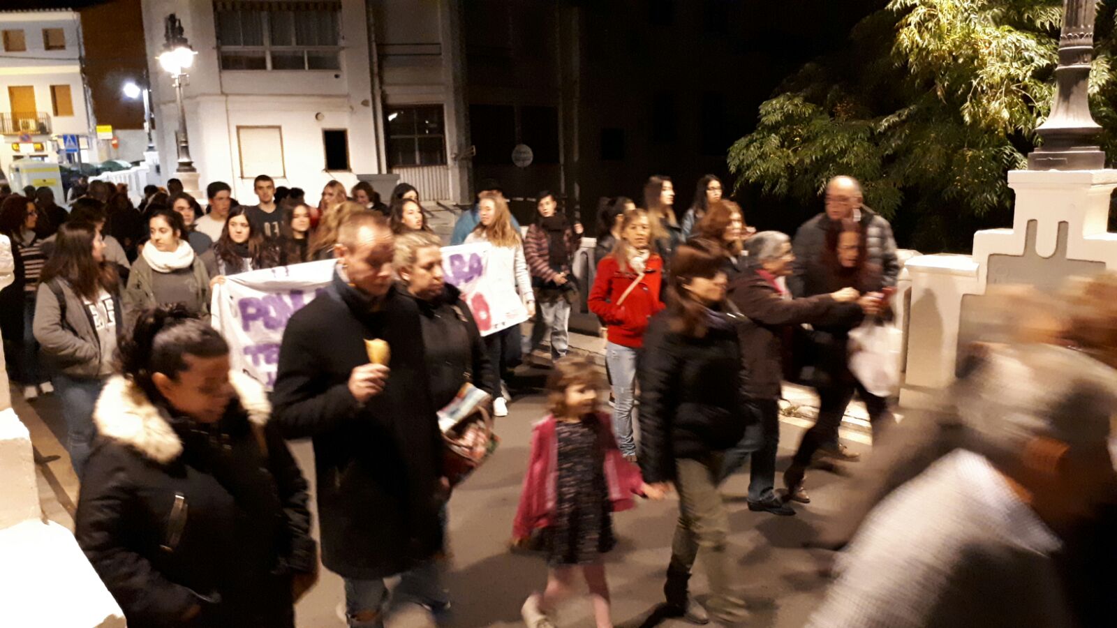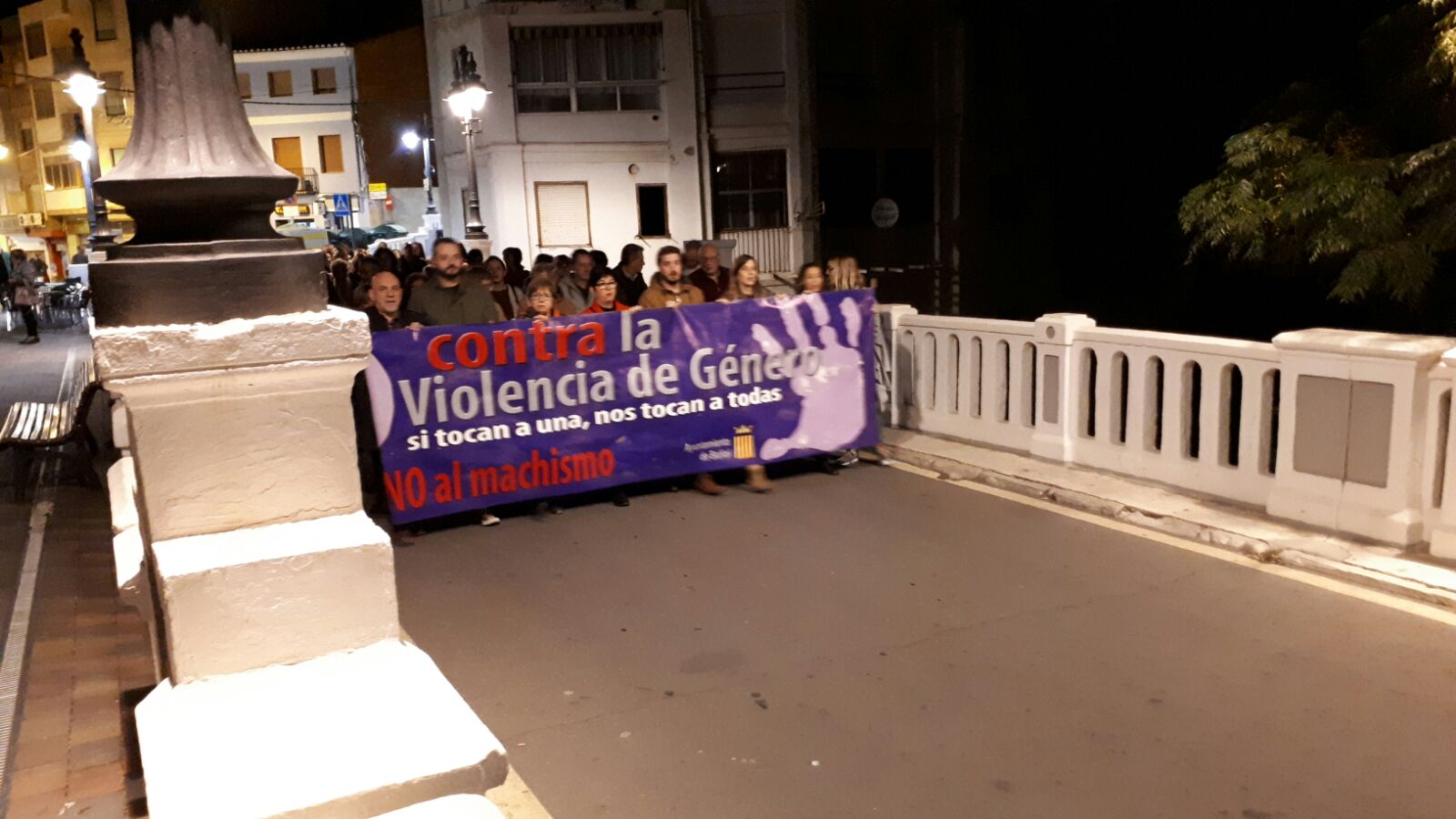 La marcha encabezada por los ediles del ayuntamiento de Buñol se inició en la plaza del pueblo y acabó en la plaza cinco de marzo, donde el movimiento democrático de muejeres de Buñol y el ayuntamiento encabezaron el acto reivindicando el fin de esta lacra, María Álvarez leyó un manifiesto y los participantes depositaron una flor en el lazo morado, representativo de este acto.