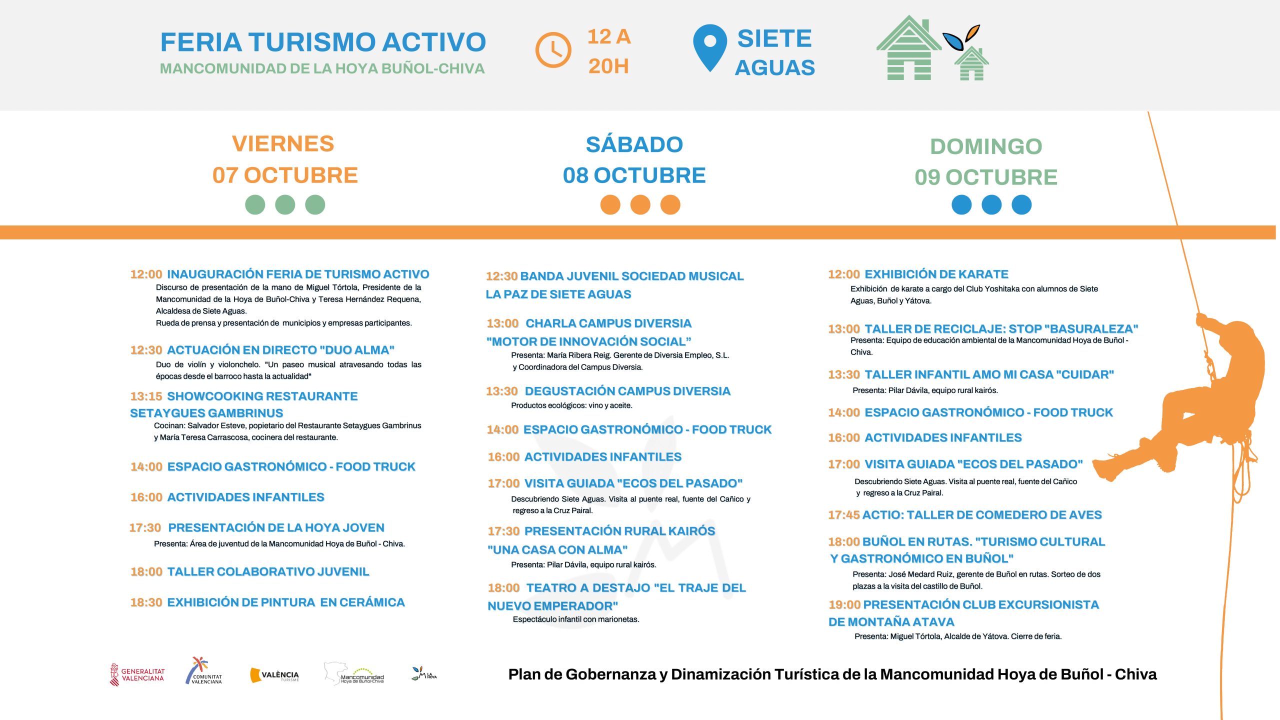 La localidad de Buñol participará los días 7, 8 y 9 de octubre en la primera edición de la Feria de Turismo Activo, creada en el marco del Plan de Gobernanza y Dinamización Turística de la Mancomunidad Hoya de Buñol-Chiva