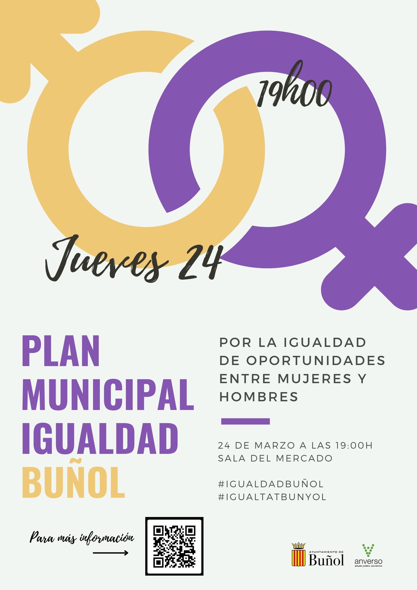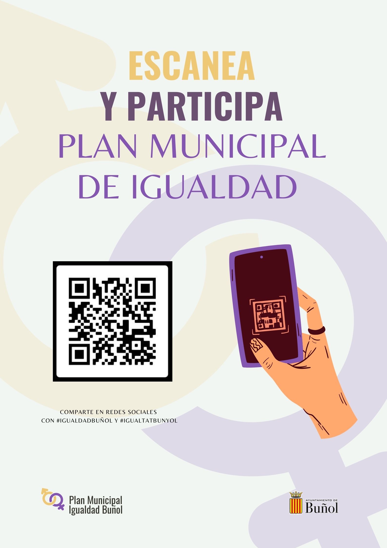 El Ayuntamiento de Buñol lanzó hace unos días el cartel de la presentación del Plan Municipal de Igualdad, en el que invita a toda la ciudadanía