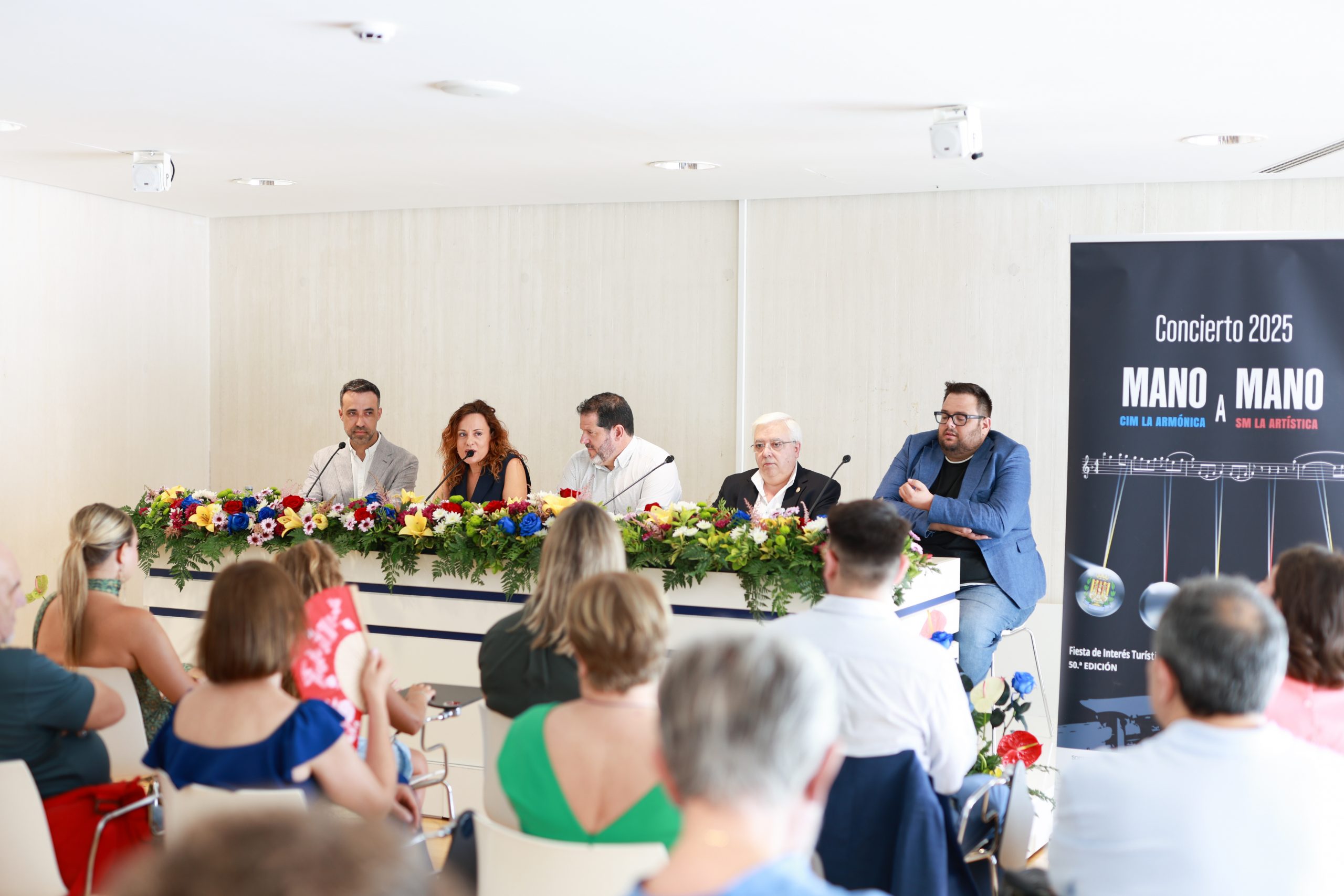 El acto ha contado también con la participación de los máximos representantes de las dos sociedades musicales protagonistas. Por parte de la SM La Artística, han intervenido su presidente Manuel Ferrando y el director Mario Ortuño. En representación del CIM La Armónica, han estado presentes su presidenta Rosario Pardo y el director Saül Gómez.