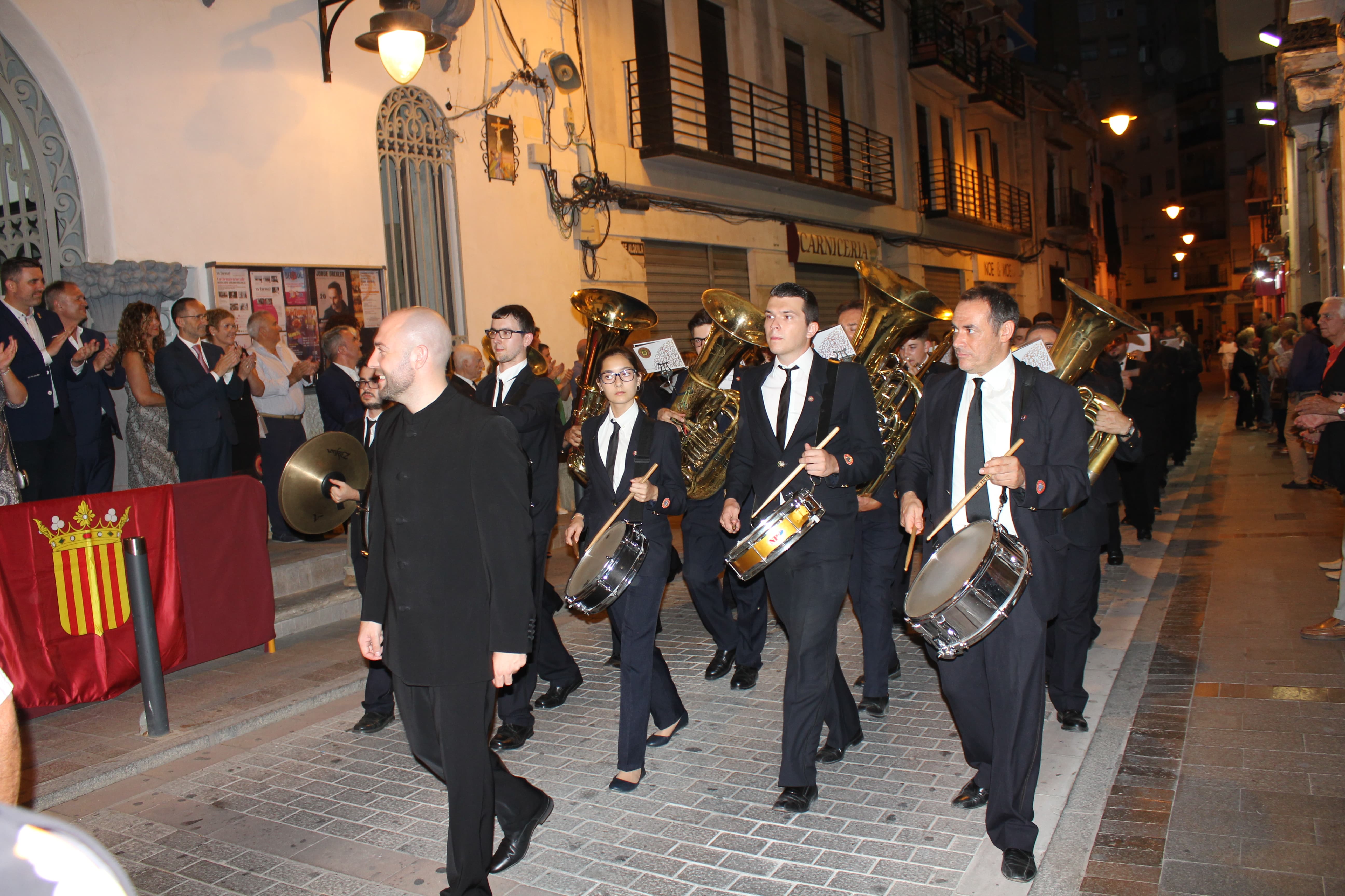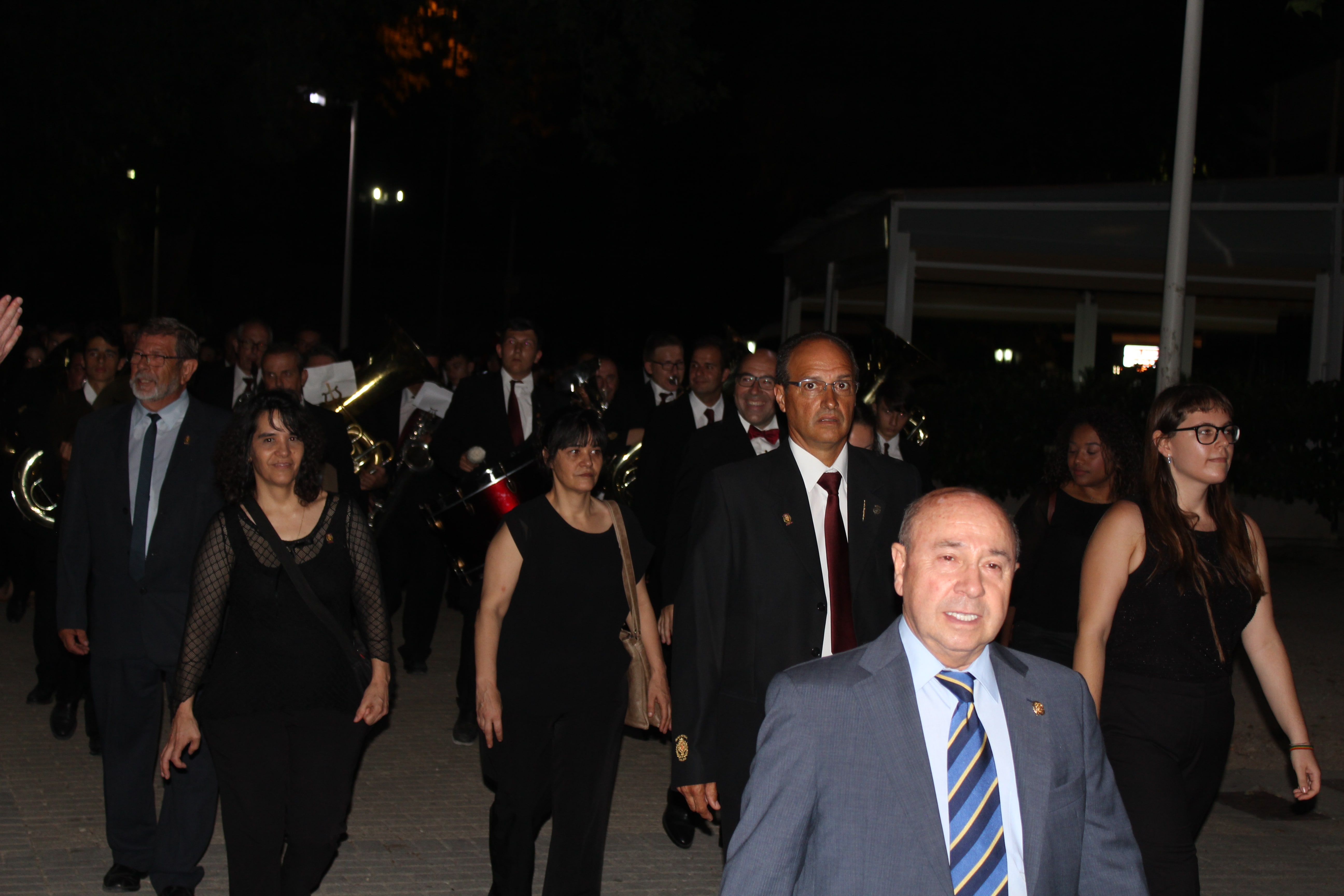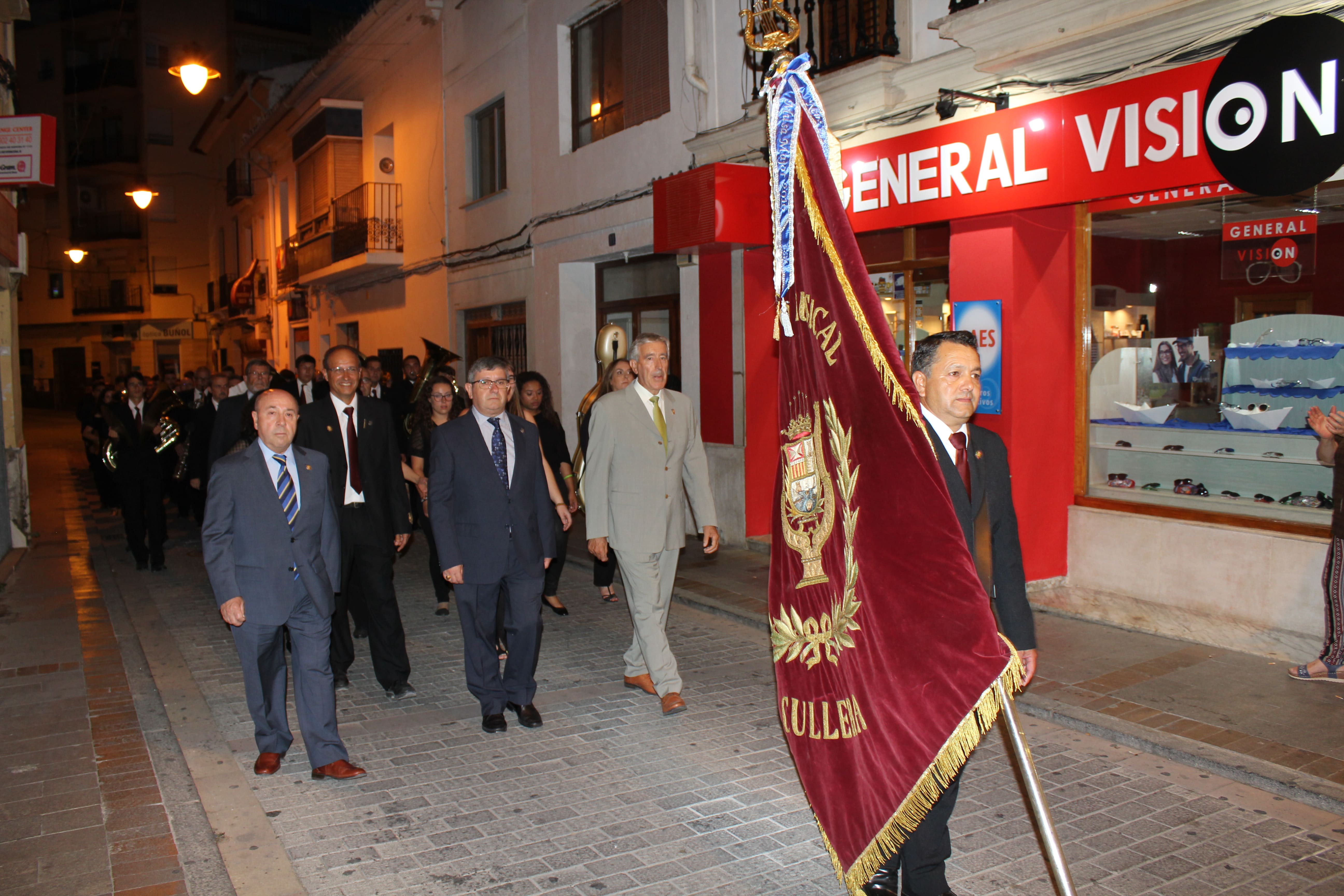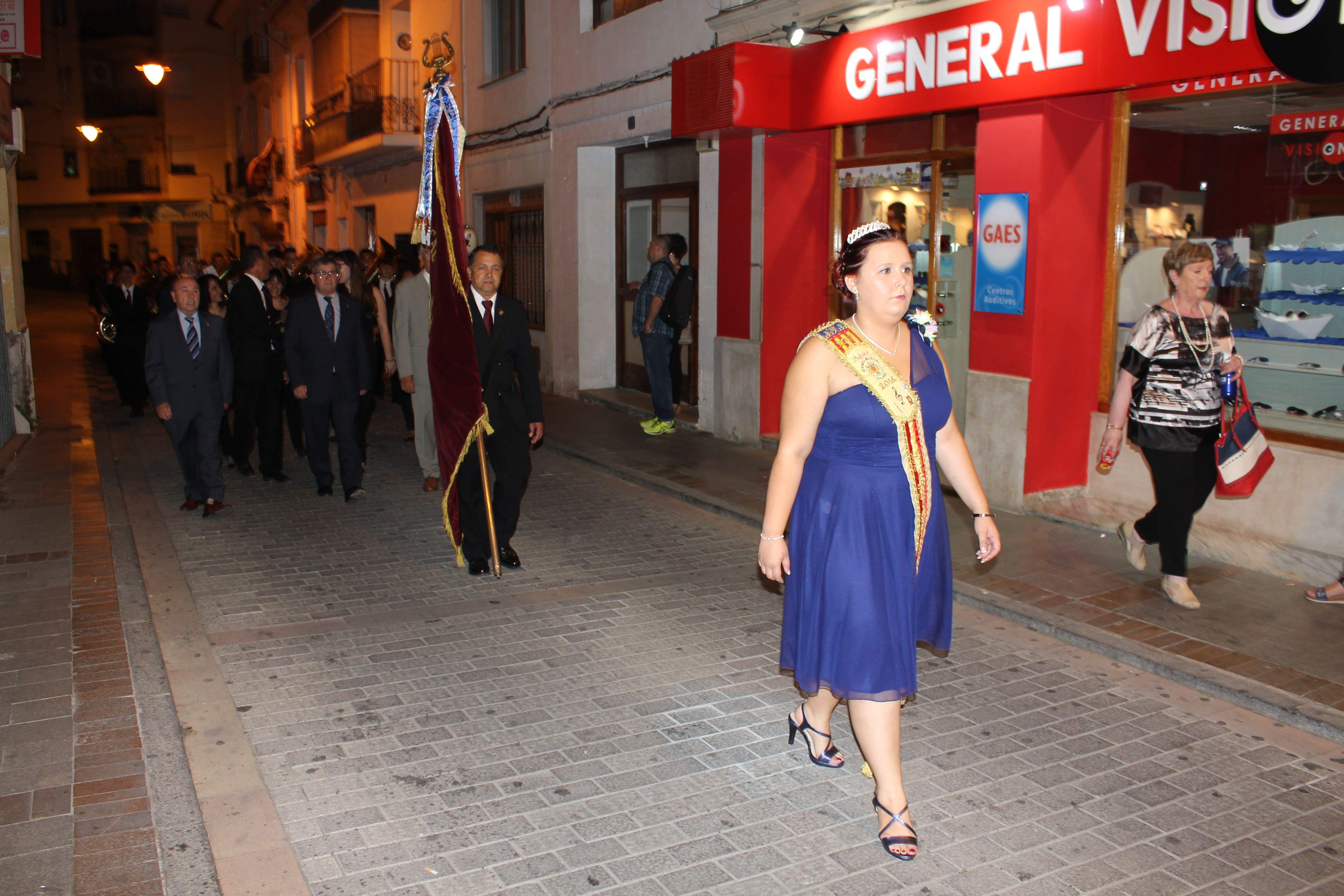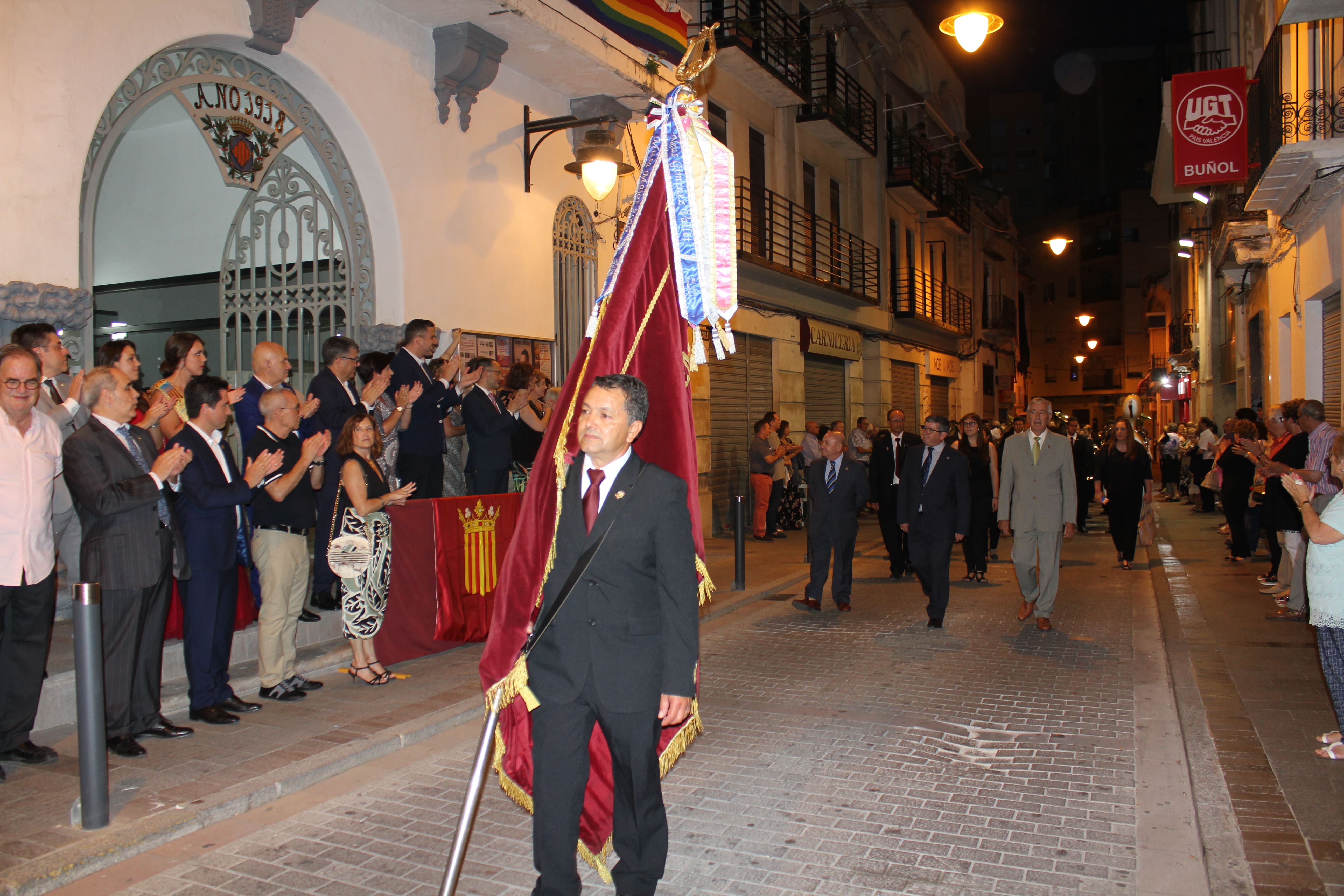 Después de ese acto protocolario, las autoridades se dirigieron a la Avenida de la Violeta desde la que partió el pasacalle de las tres bandas participantes en el concierto. Esta comitiva recorrió las calles de Buñol hasta llegar al Auditorio Municipal, donde a las 23h arrancó el concierto.