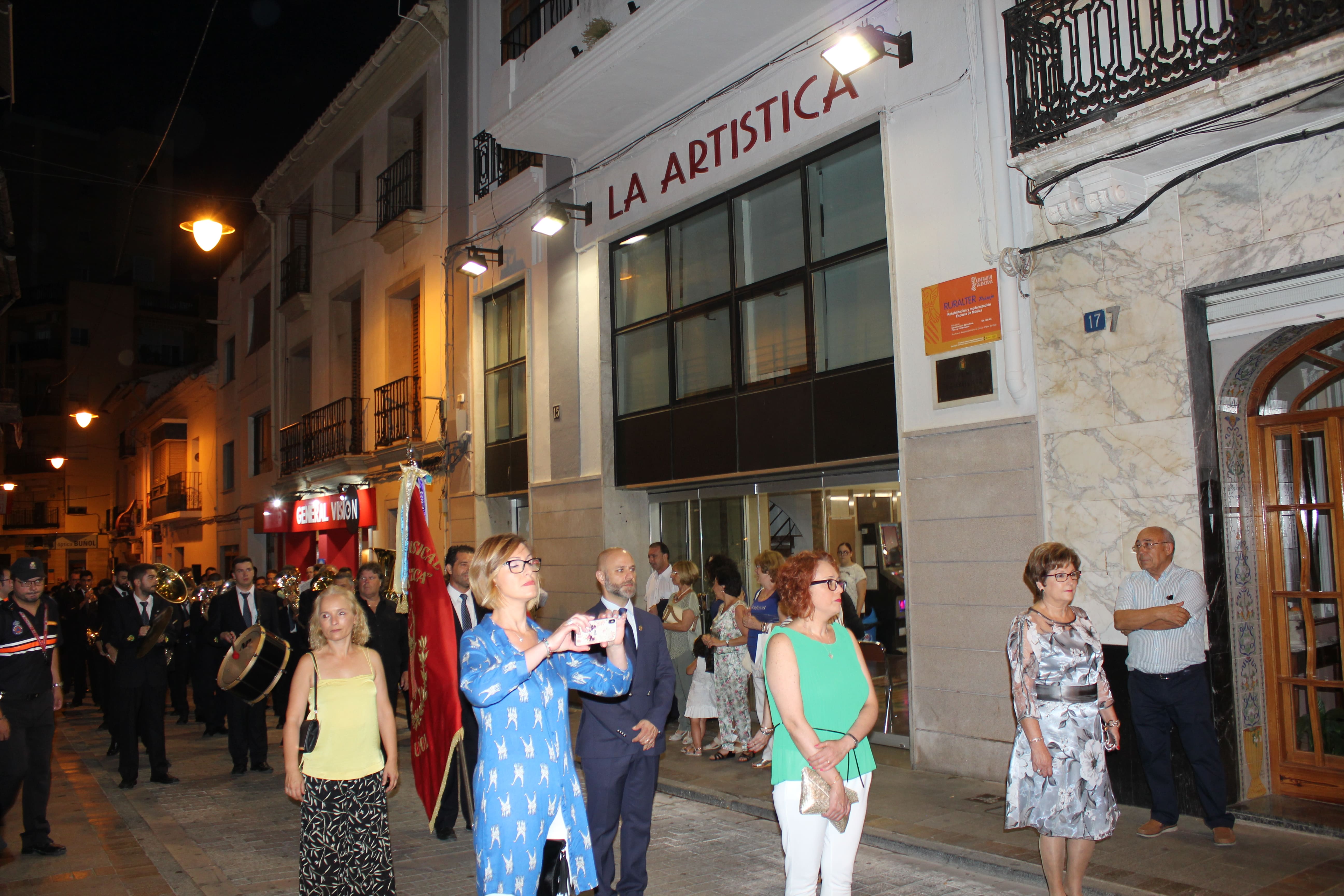 Finalmente, sobre el escenario estuvo la banda anfitriona, la Sociedad Musical «La Artística» de Buñol, bajo la batuta de Henrie Adams. Sin embargo, antes de la interpretación de «Los Feos», el Ayuntamiento de Buñol -la Alcaldesa, Juncal Carrascosa y el edil de Cultura, Arnaldo Carrascosa- entregó un recuerdo por su participación en este concierto, a las bandas de La Unió, el Ateneo y La Artística. También hizo lo propio con el Alcalde de Cullera, Jordi Mayor y con el de Llíria, Manuel Civera. El regalo era una bonita ilustración de la artista buñolense, Mónica Ruiz Losa.