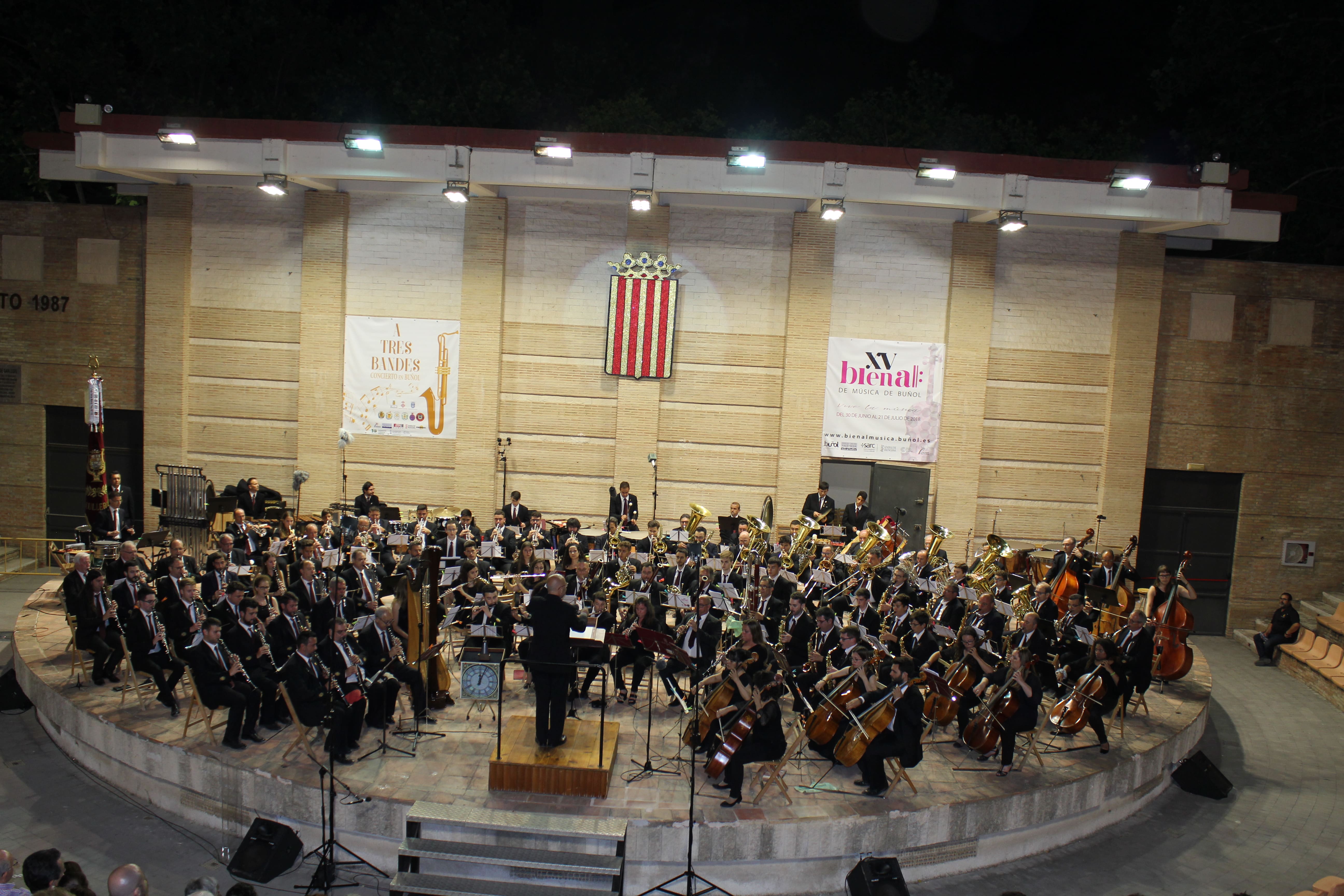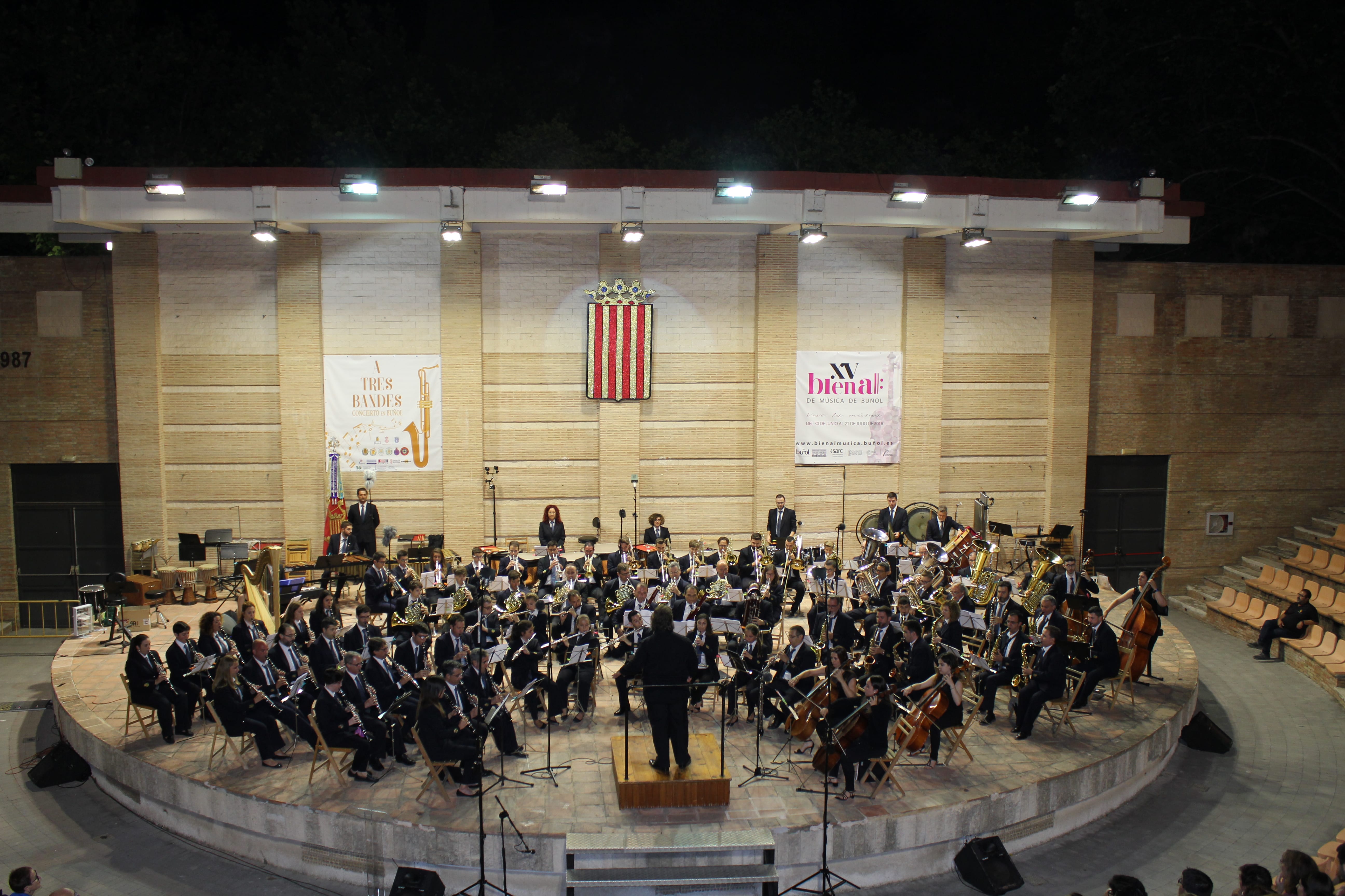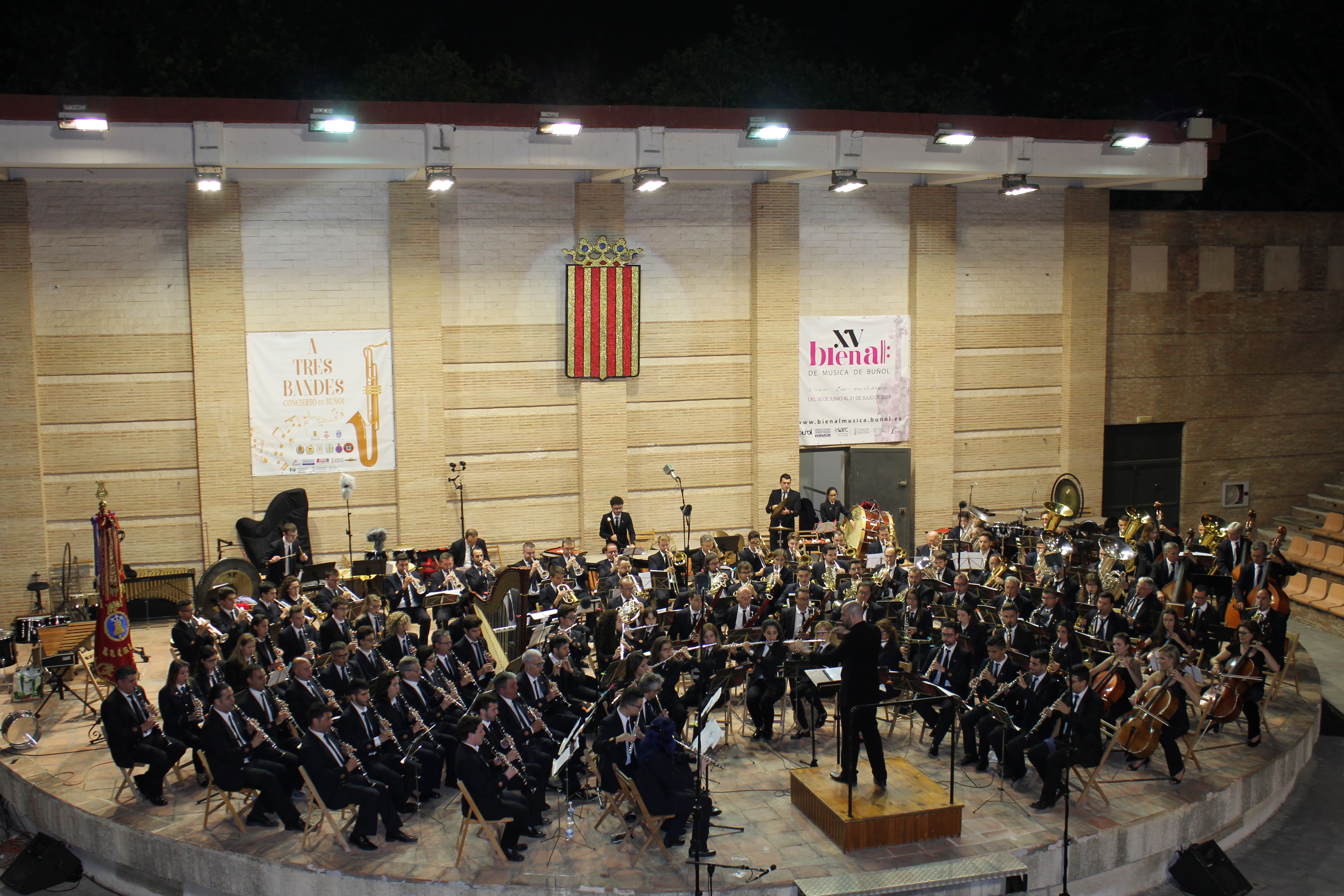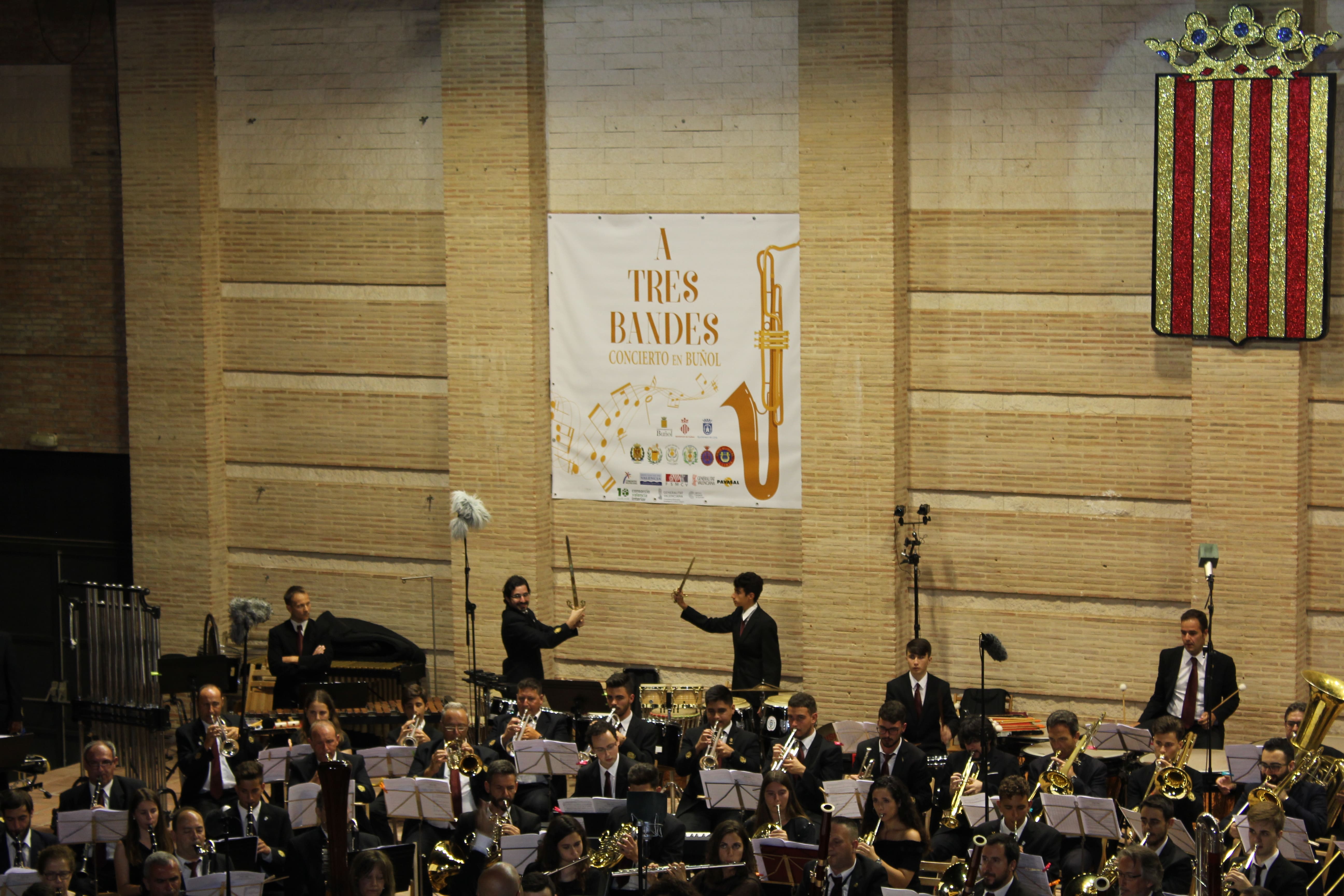 Las bandas de La Unió de Llíria, el Ateneo Musical de Cullera y la Sociedad Musical «La Artística» de Buñol ofrecieron un gran espectáculo en el Auditorio Municipal buñolense