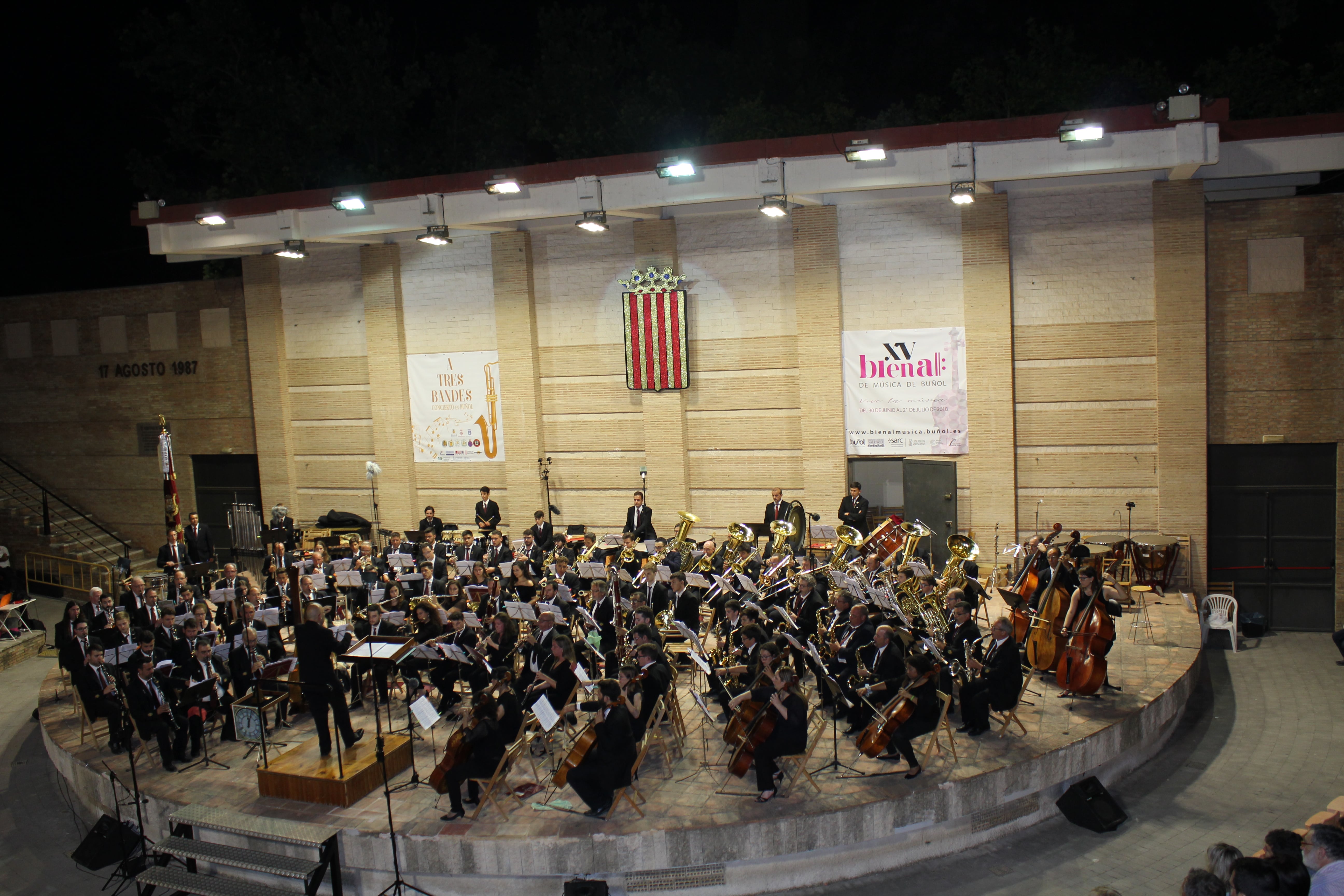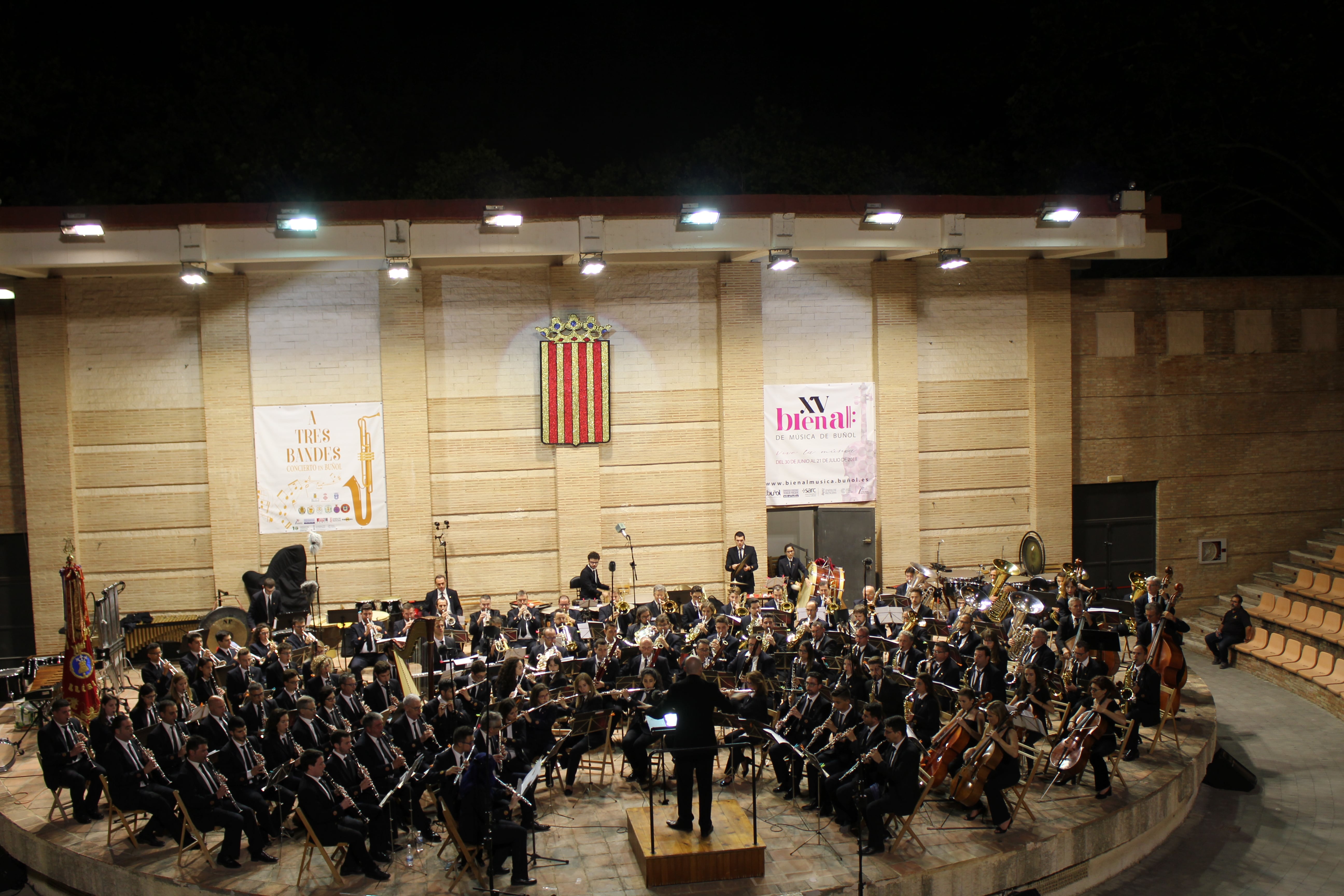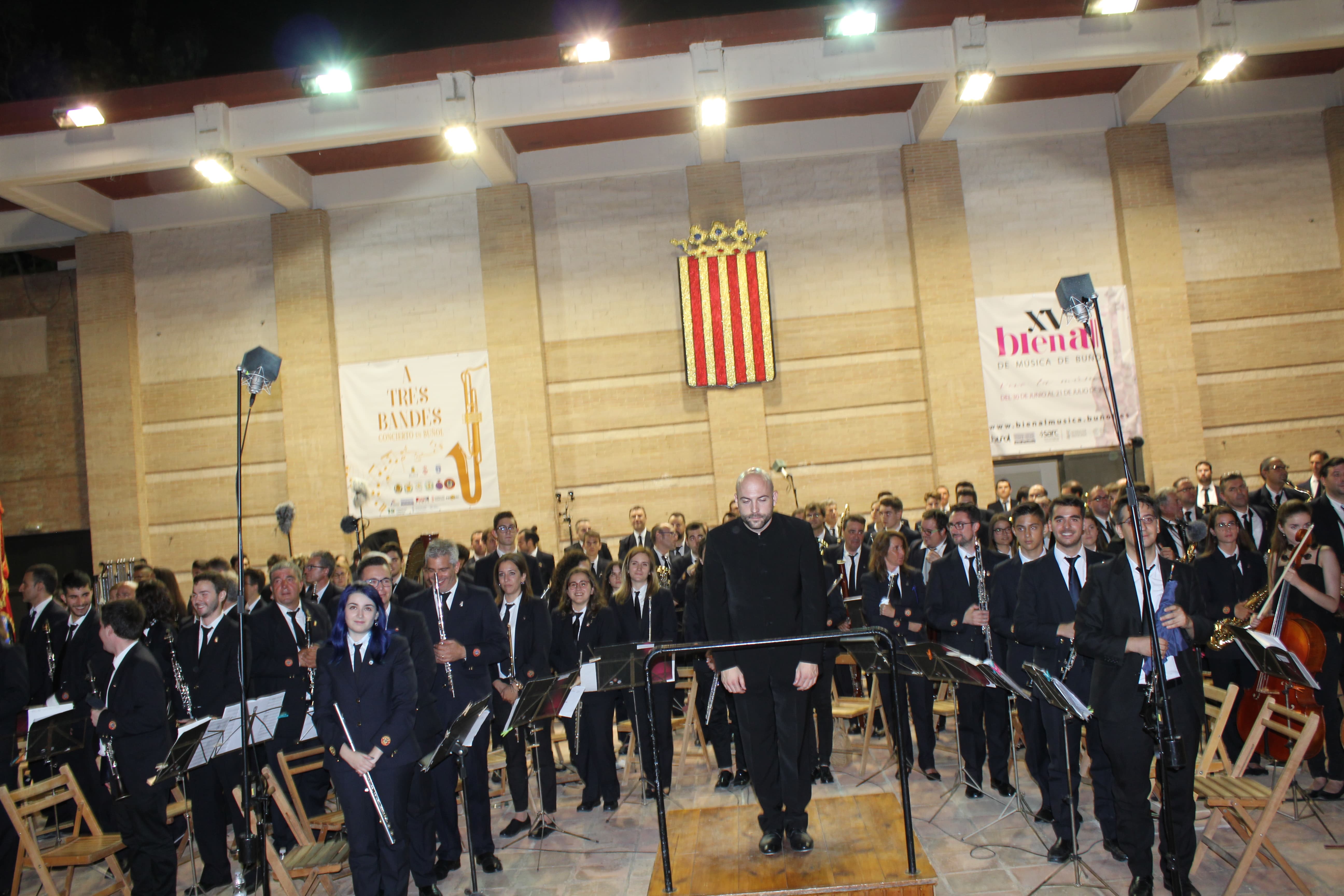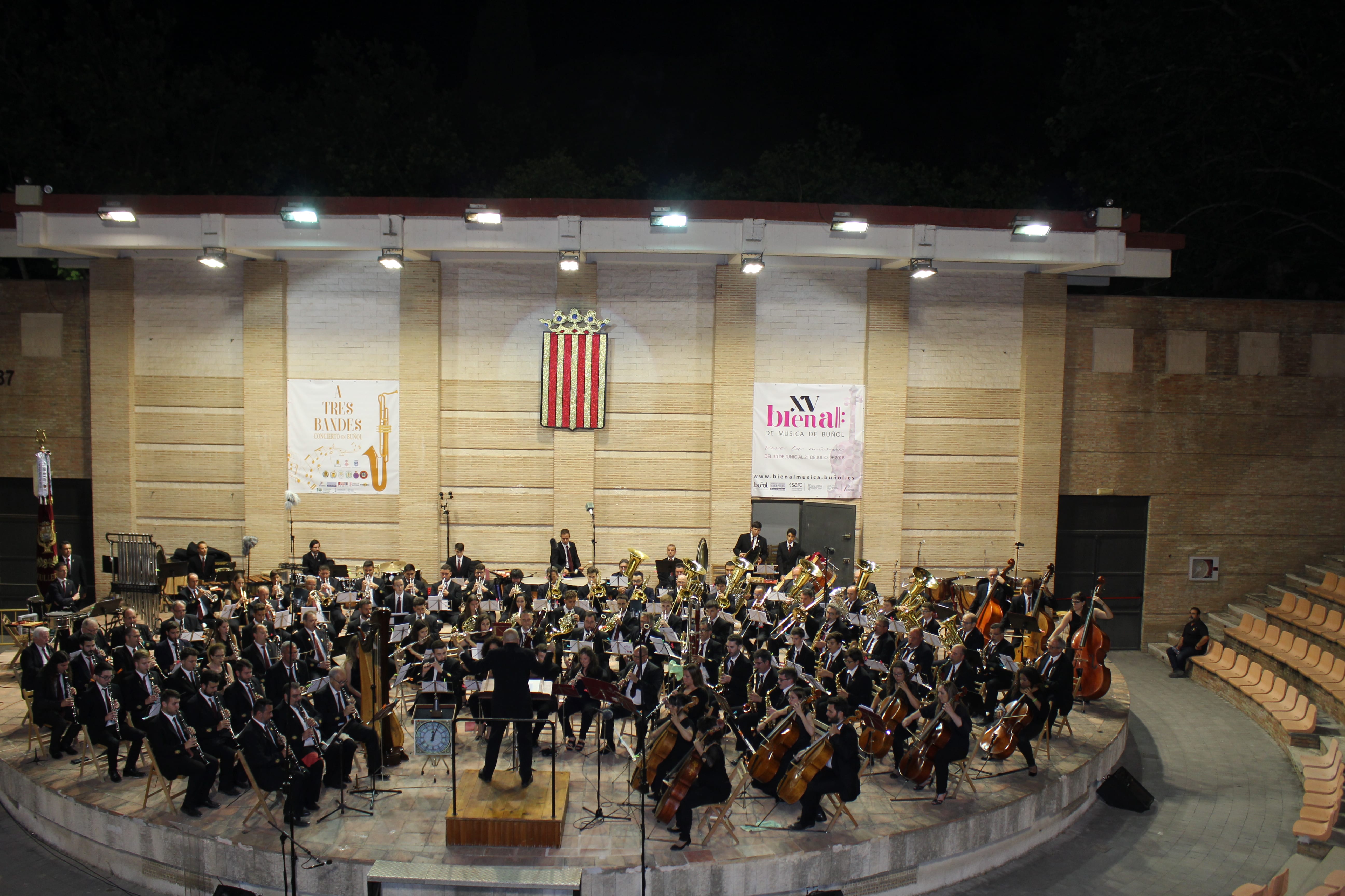 Las bandas de La Unió de Llíria, el Ateneo Musical de Cullera y la Sociedad Musical «La Artística» de Buñol ofrecieron un gran espectáculo en el Auditorio Municipal buñolense