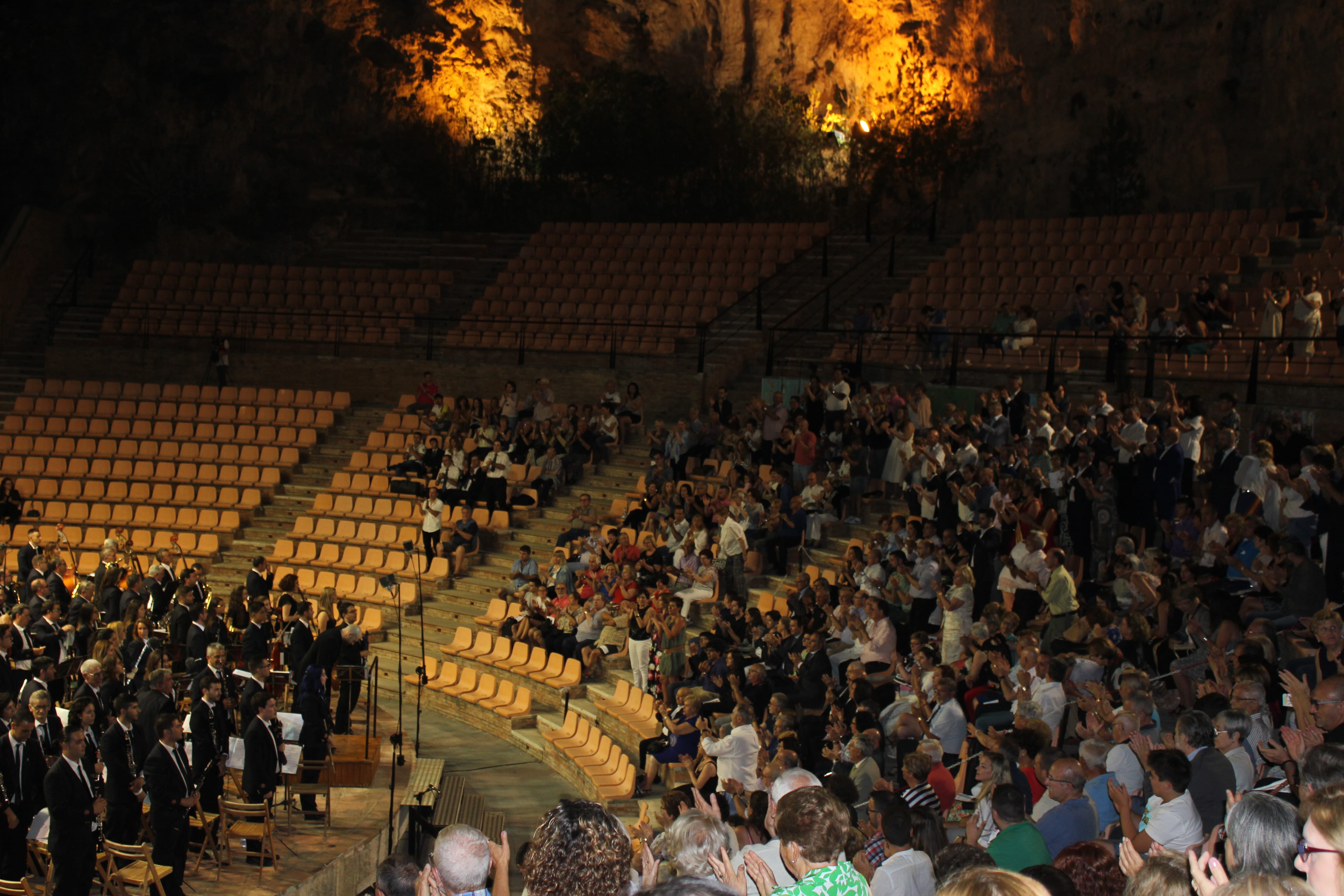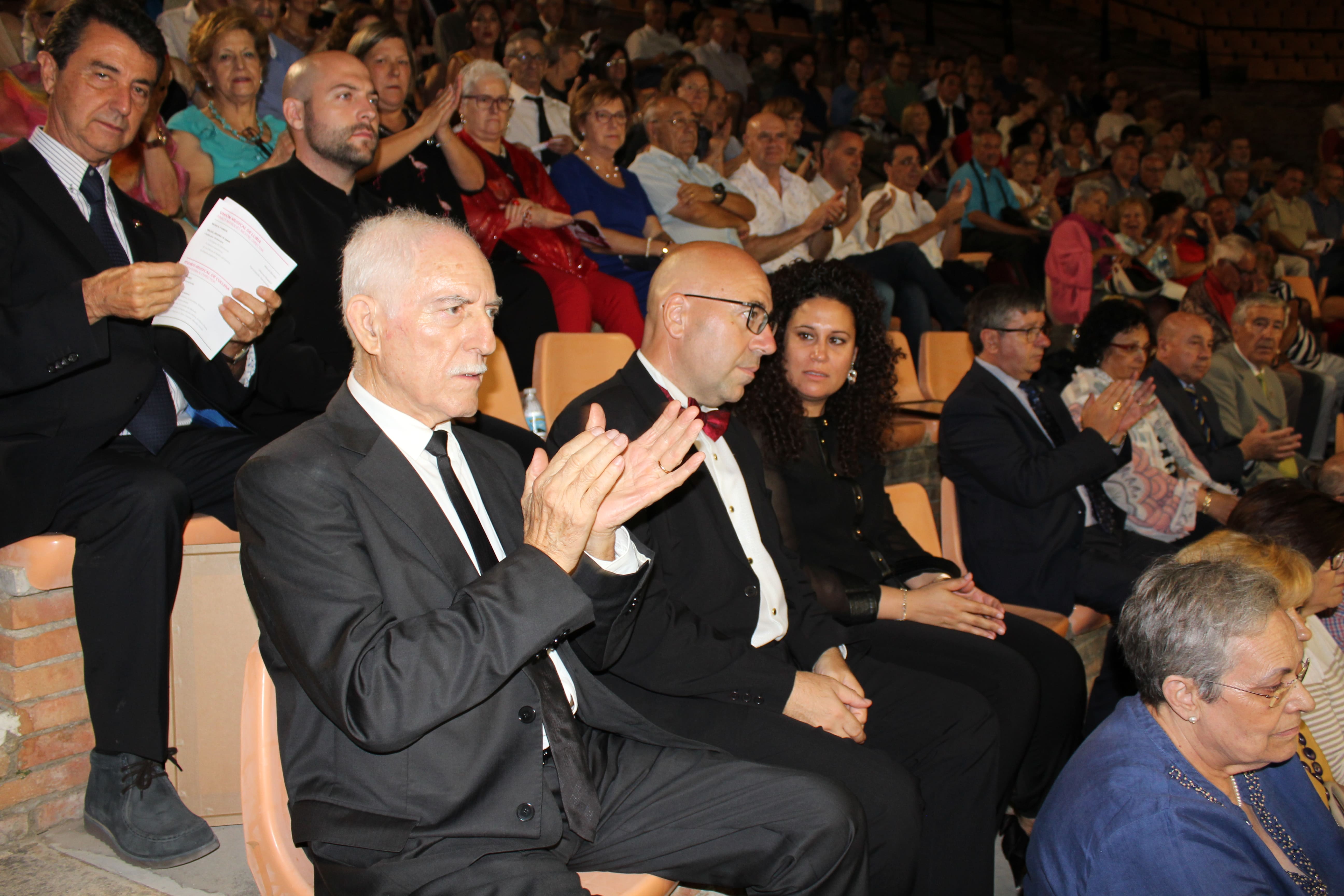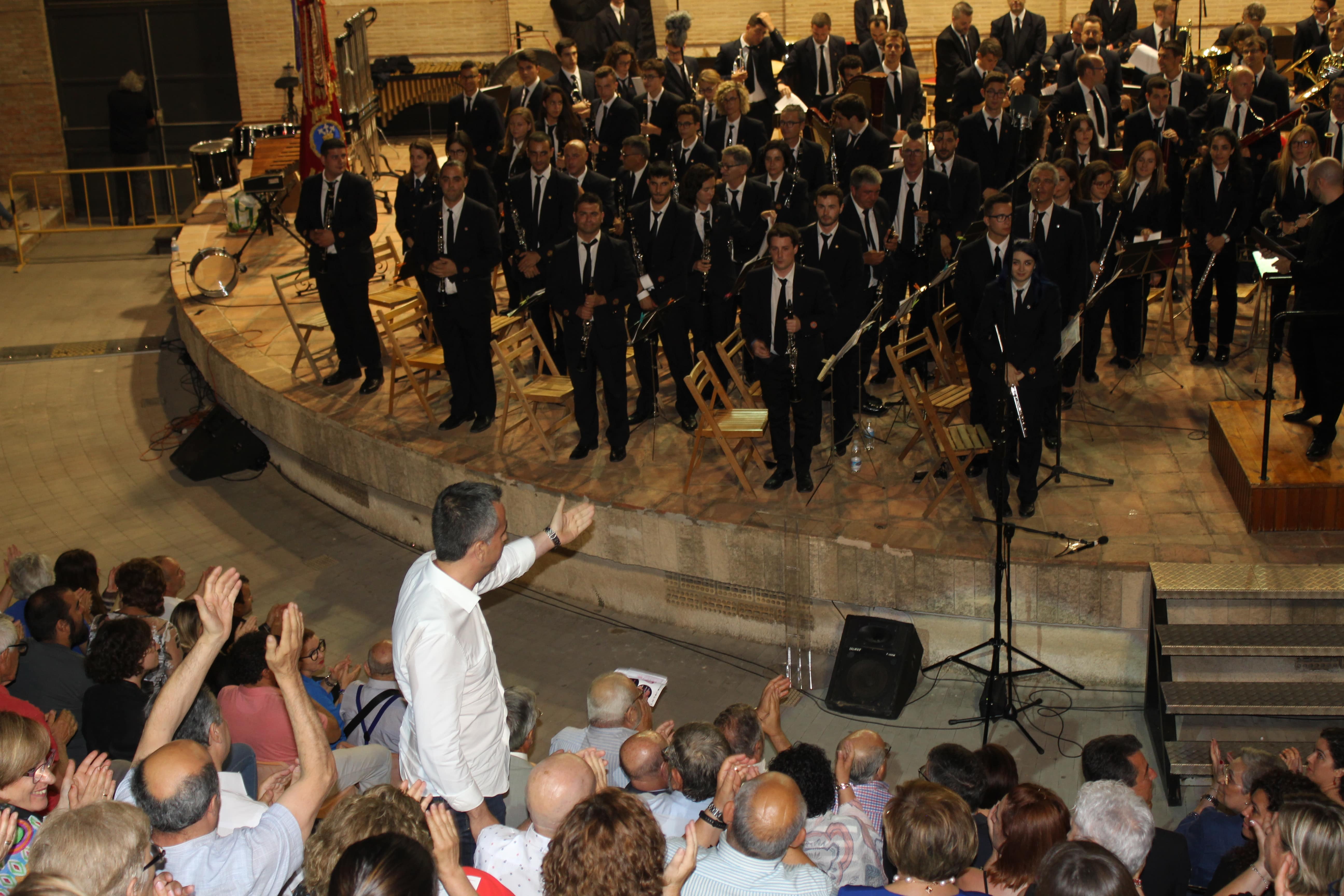 Una vez terminados los discursos, se dio paso a la música. En el escenario La Unió Musical de Llíria, bajo la batuta de Pablo Marqués Mestre. Interpretaron el pasodoble Música y Vinos de Manuel Morales y Belkis, La Reina de Saba, de Ottorino Respigui. El director logró exprimir a su banda en la segunda pieza y sacarle el jugo, que se tradujo en el unánime aplauso del auditorio de Buñol.