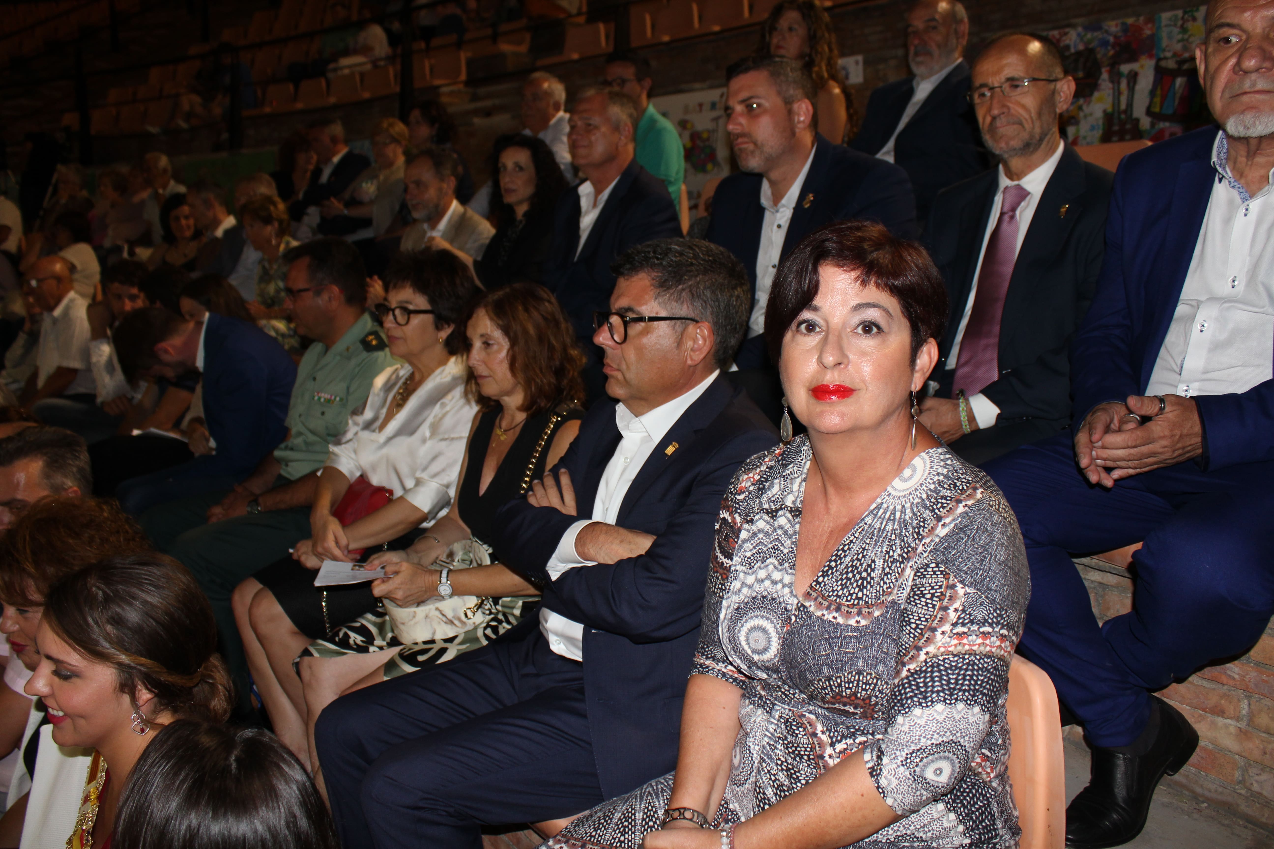 Siguió con las intervenciones, el diputado de Contratación y Central de Compras, Bartolomé Nofuentes, que dijo sentirse muy orgulloso de iniciativas como esta. Luego, la Secretaria Autonómica de Economía Sostenible y Comercio, Blanca Marín, destacó el enorme esfuerzo de las bandas de música de nuestra Comunitat y recordó la apuesta que ha hecho el Consell por ellas y por su trabajo. Finalmente, el Delegado del Gobierno en la Comunitat Valenciana, Juan Carlos Fulgencio, señaló que el espectáculo que estaba a punto de vivirse es una de las señas principales de la Comunitat. Más tarde, la Alcaldesa, les otorgó a cada uno de los intervinientes la insignia de la localidad.