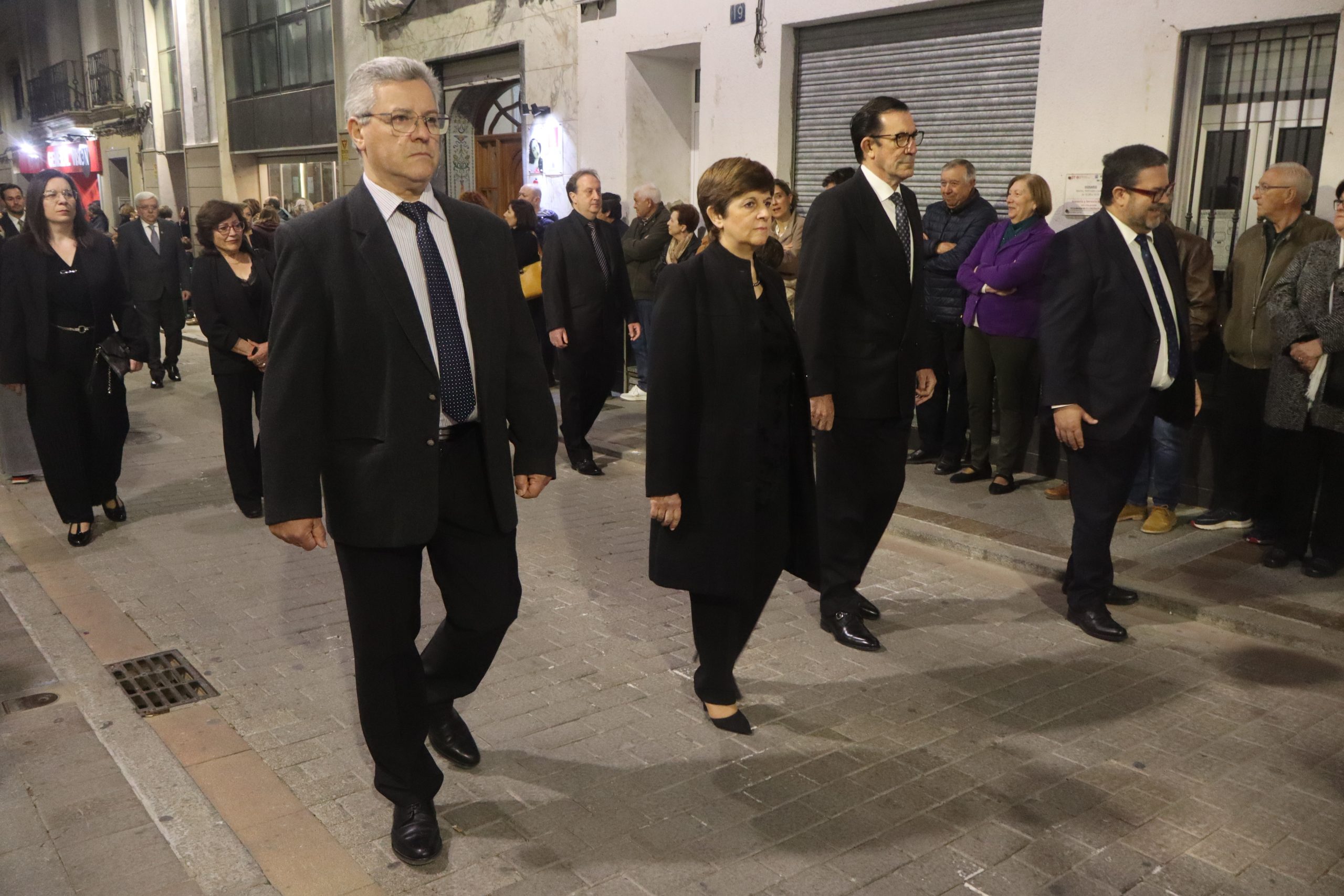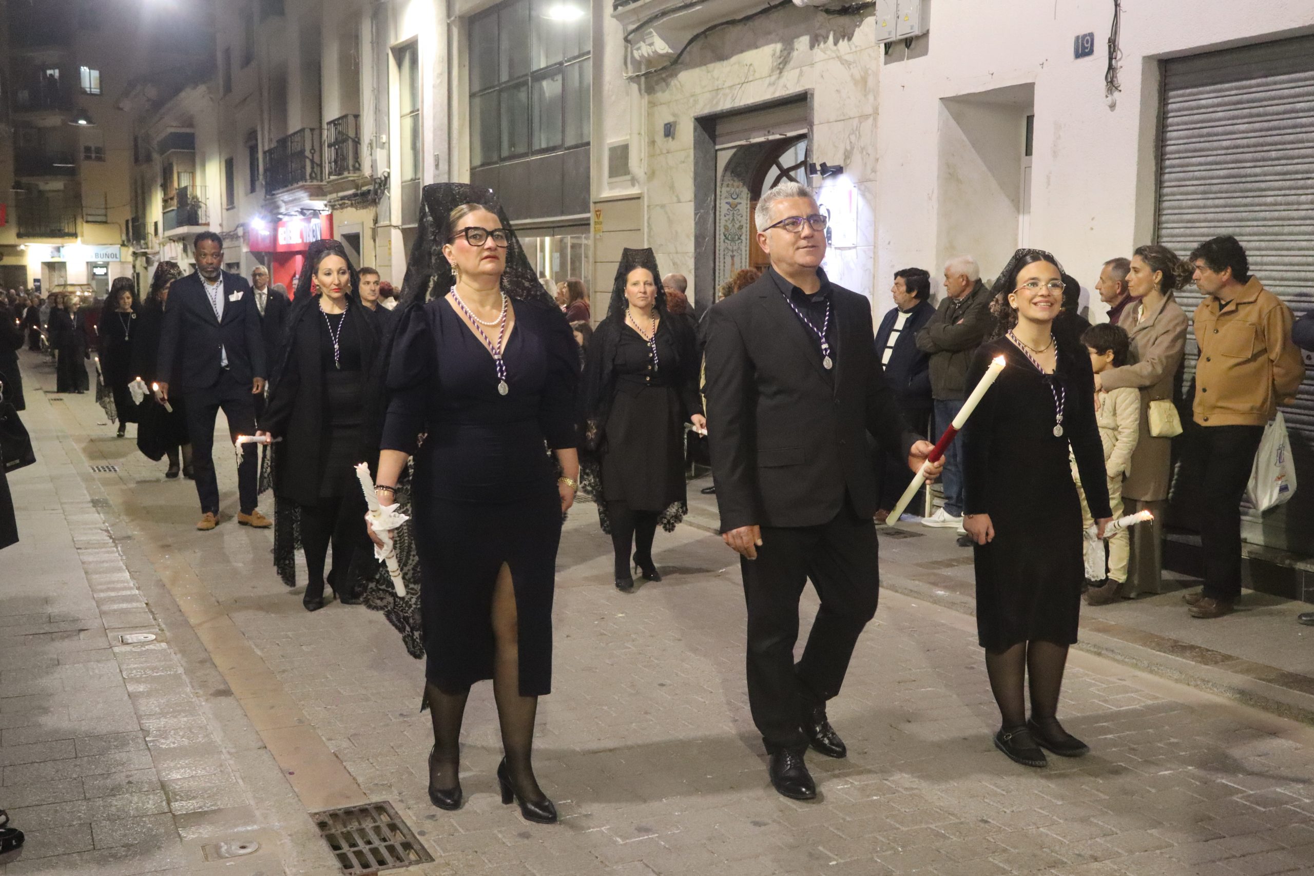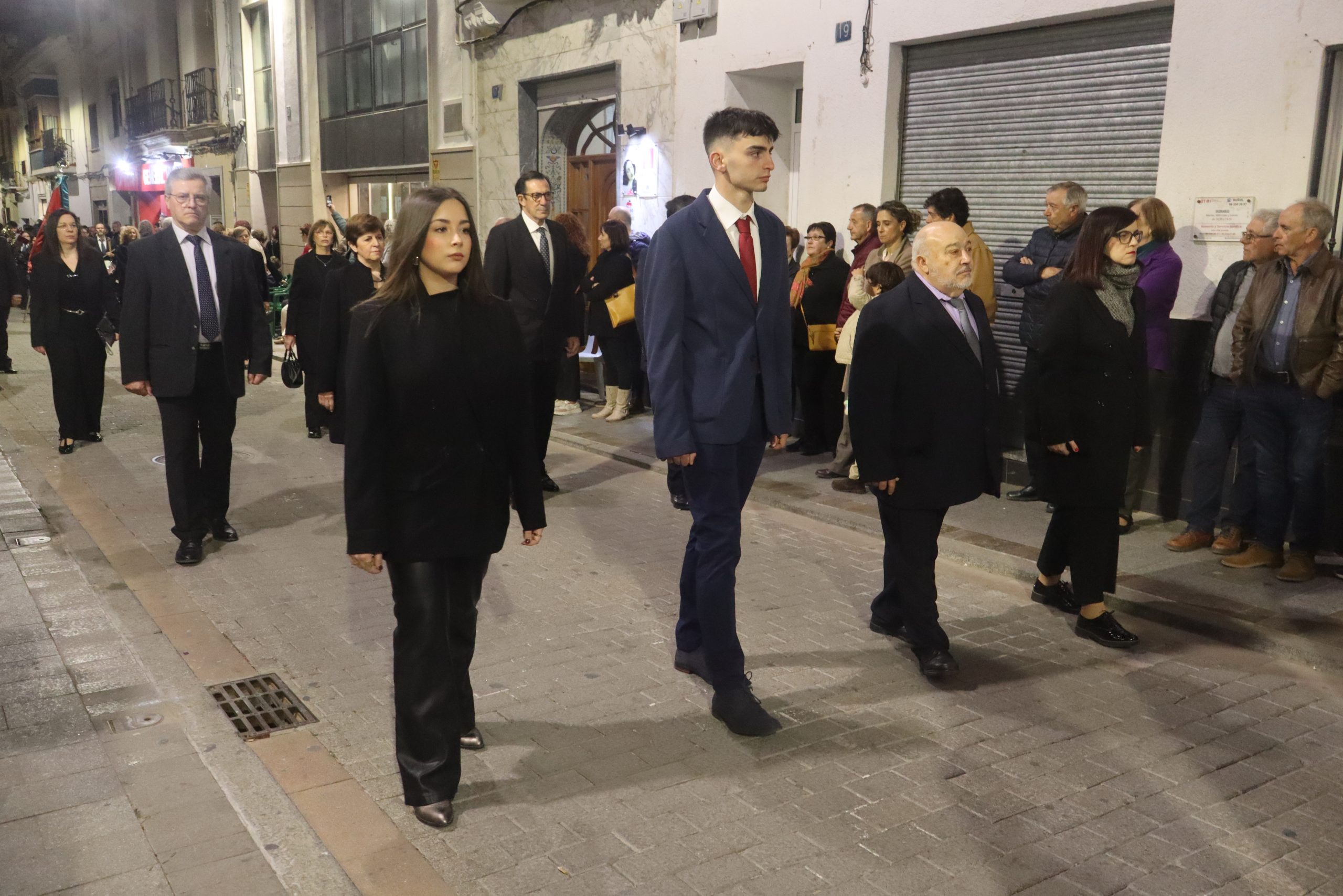 Al finalizar, desde la Parroquia San Pedro Apóstol se inició la solemne Procesión del Santo Entierro. En ella participaron las imágenes de la Dolorosa, el Nazareno y la Virgen de los Dolores, acompañadas por los nazarenos, cuyo número sigue aumentando año tras año. También formaron parte del cortejo los clavarios y la junta de la cofradía.
