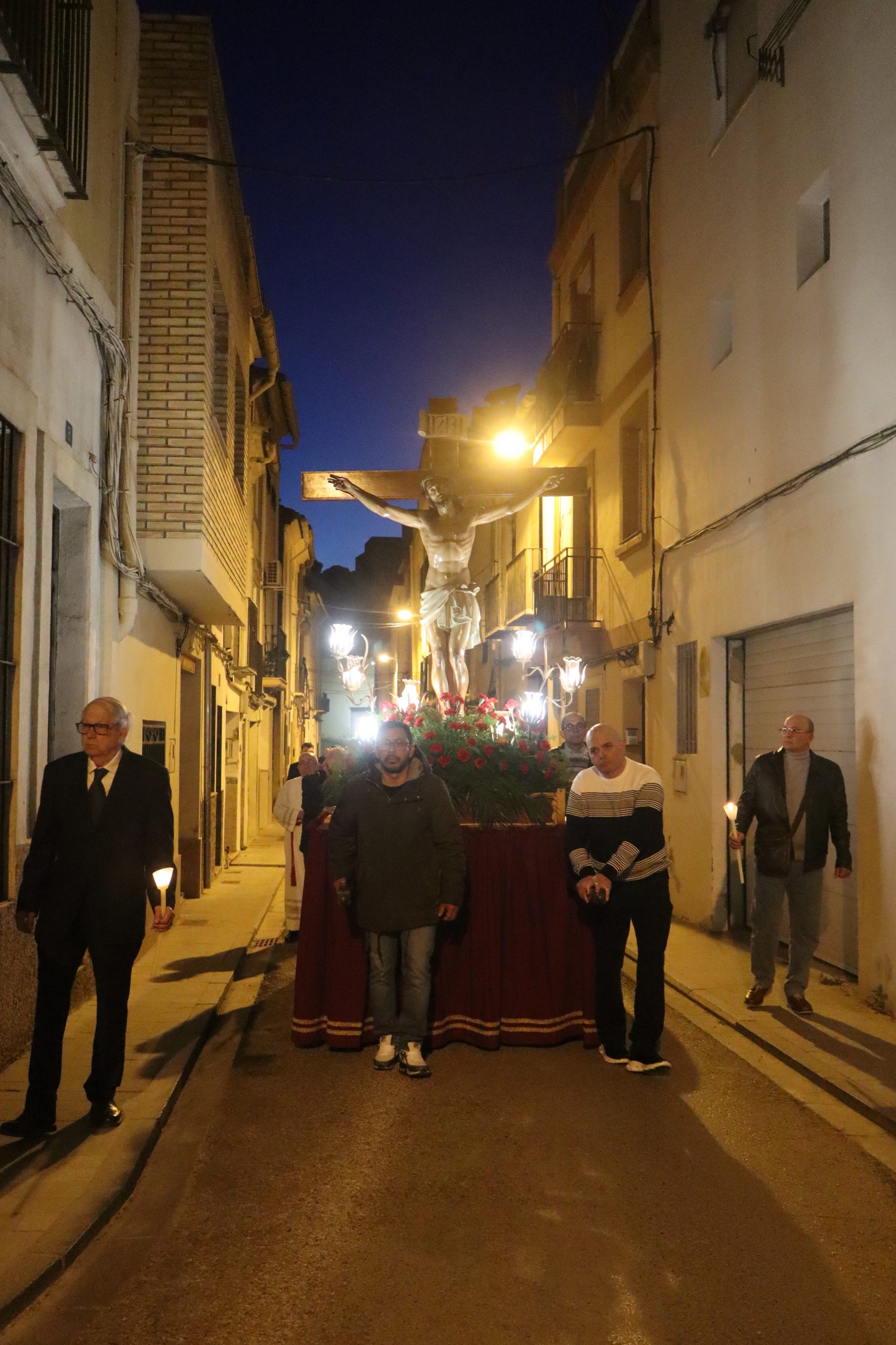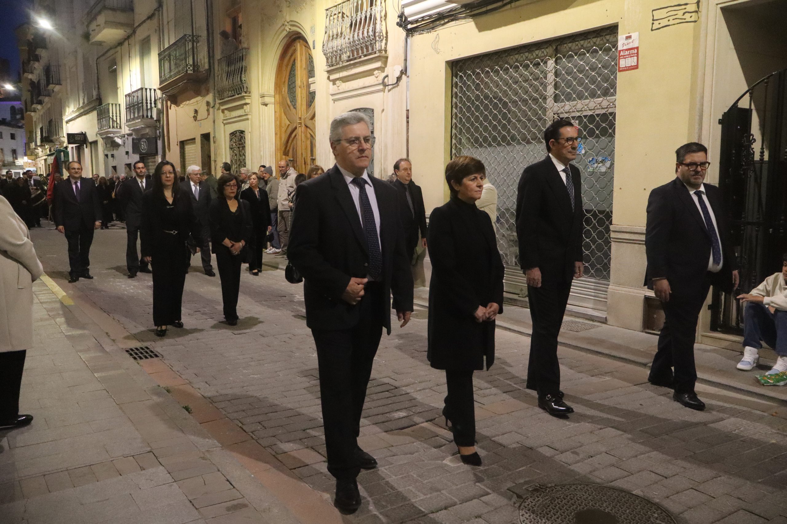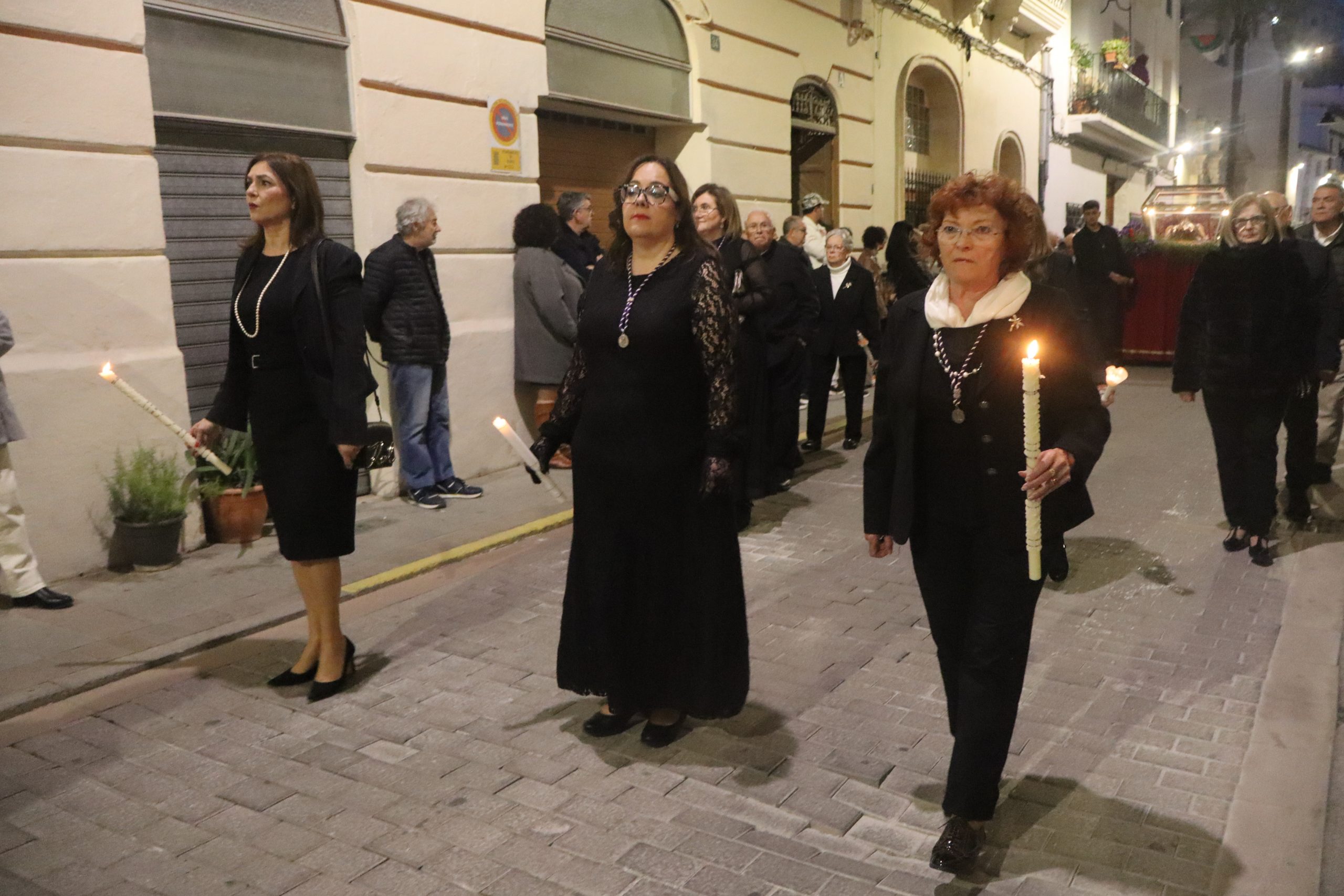 Al finalizar, desde la Parroquia San Pedro Apóstol se inició la solemne Procesión del Santo Entierro. En ella participaron las imágenes de la Dolorosa, el Nazareno y la Virgen de los Dolores, acompañadas por los nazarenos, cuyo número sigue aumentando año tras año. También formaron parte del cortejo los clavarios y la junta de la cofradía.