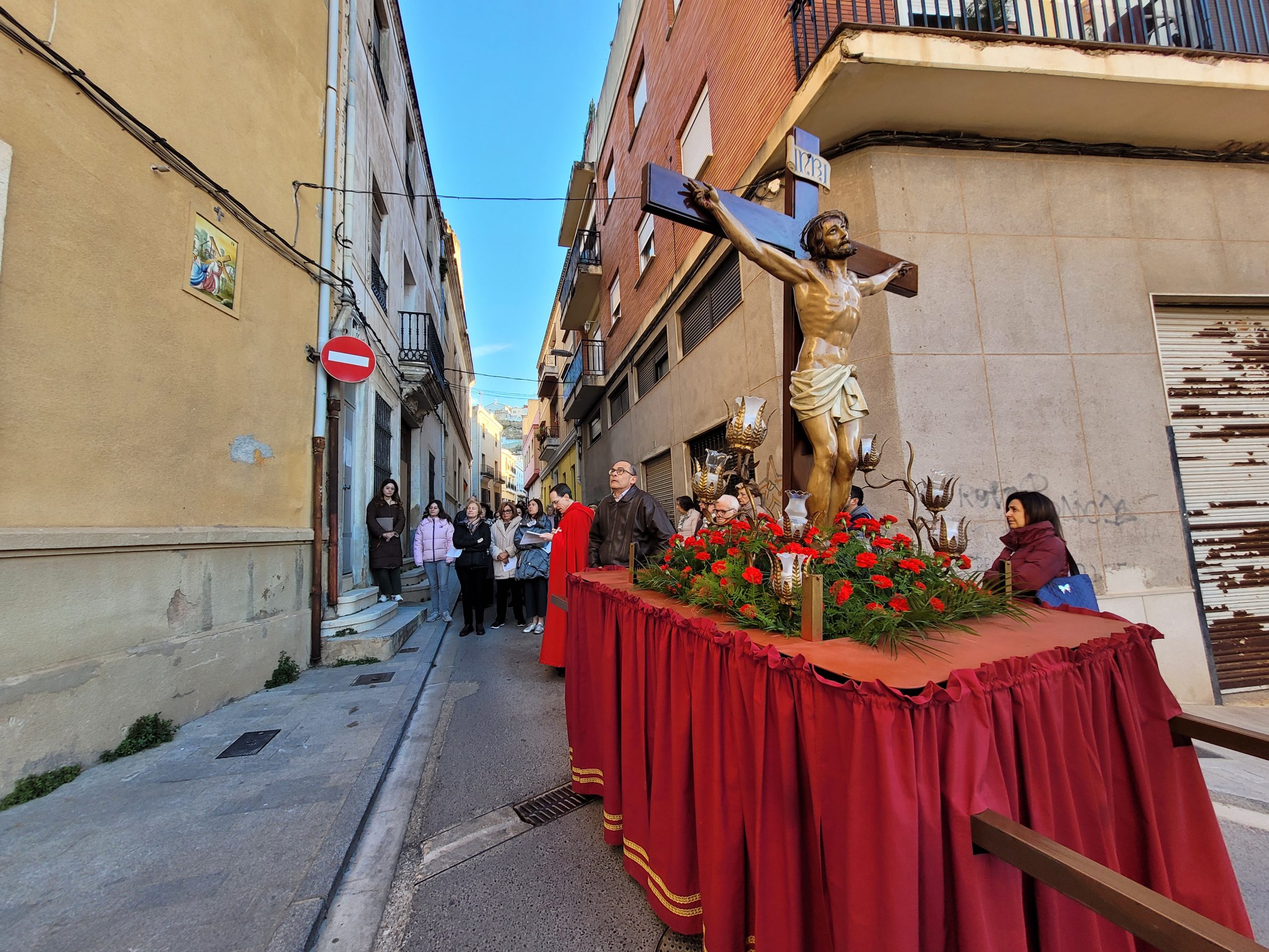Ya en la mañana del Viernes Santo, al romper el alba, alrededor de las ocho, se celebró el tradicional Vía Crucis por las calles de la localidad con la imagen del Cristo Crucificado. Durante el recorrido se realizaron paradas en los mosaicos de las estaciones, rememorando los últimos momentos de la vida de Jesús.