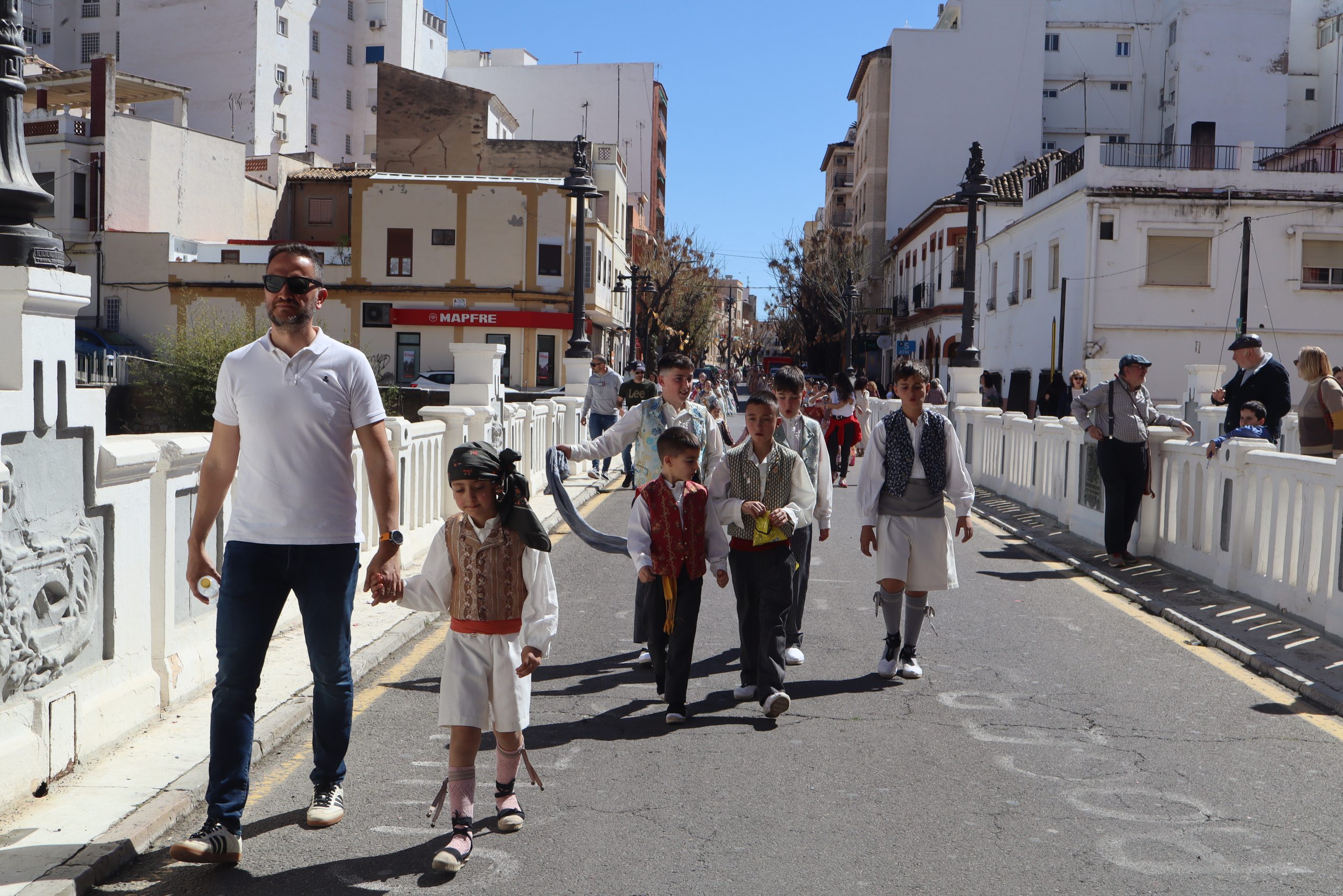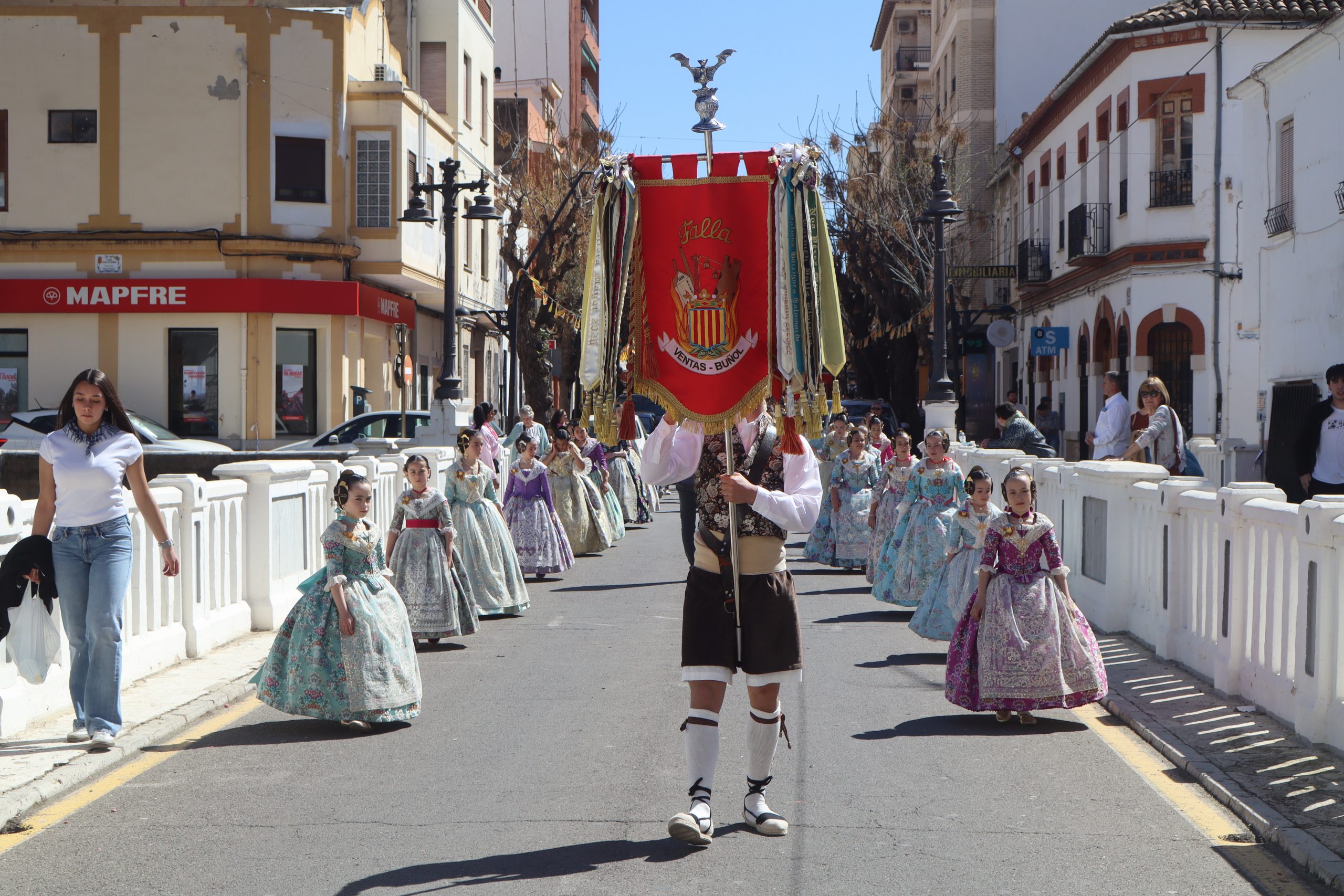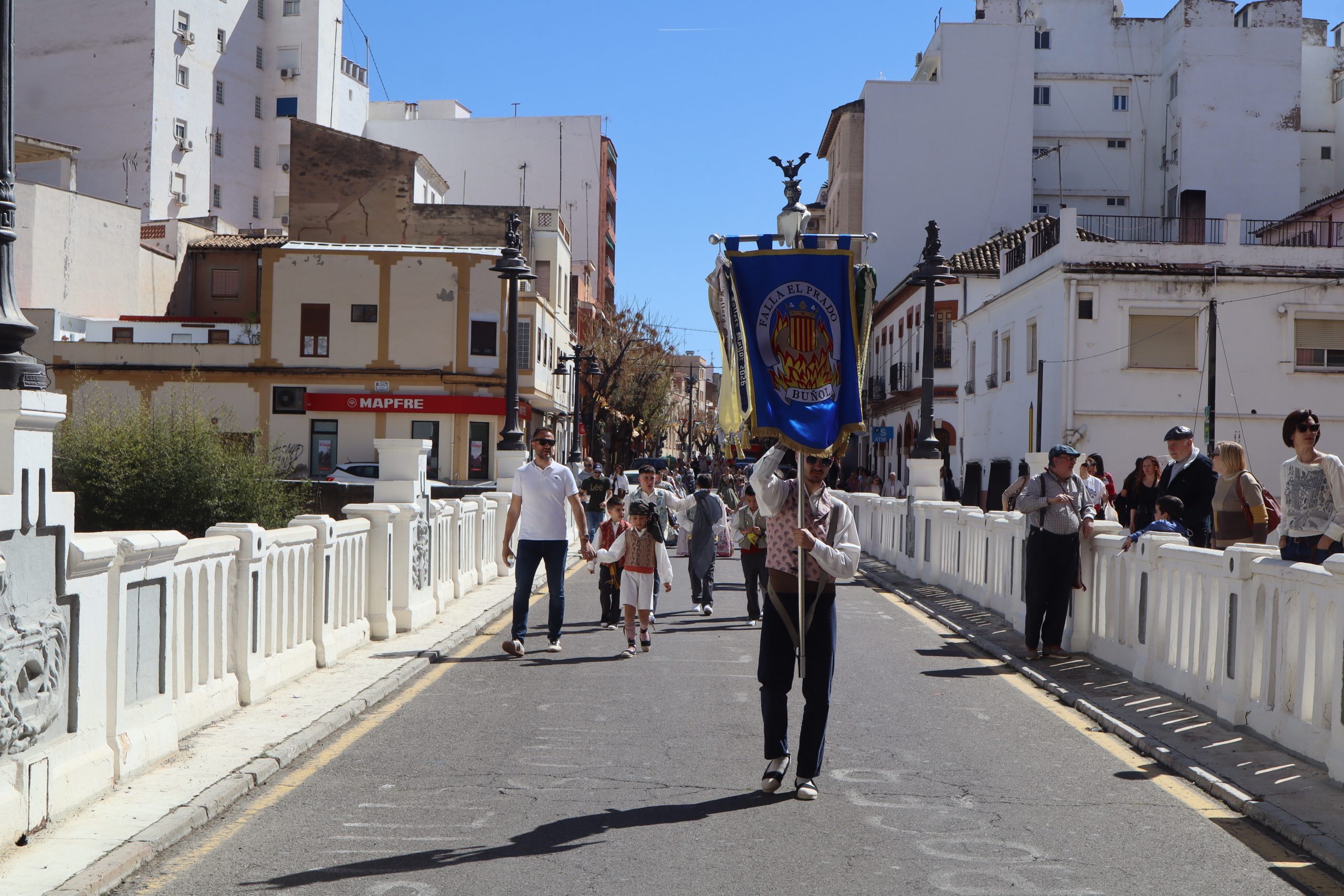 Las comisiones se reunieron en la Plaza del Castillo para visitar los monumentos de Reyes Católicos, Buñol Pueblo y Nuevo Buñol. El buen tiempo acompañó en una mañana festiva que hizo salir a muchas vecinas y vecinos de la localidad a ver el primer pasacalle de las fiestas Josefinas. El recorrido terminó en la Falla Buñol Pueblo donde las Falleras Mayores, la alcaldesa de Buñol, Virginia Sanz y el edil de Fiestas, Sergio Galarza, se realizaron la tradicional foto de familia.