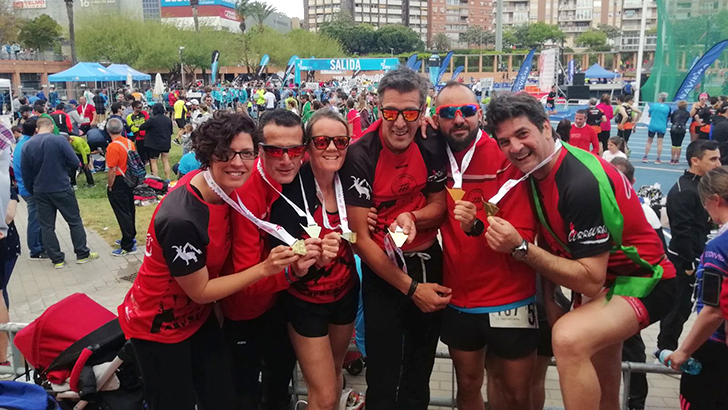 Donde sí hubo más correores fue en el Ekiden Valencia Maratón Relevos 2018 celebrado el pasado 29 de abril, ya que el C.A. Correores presentó un equipo mixto, el 167, para afrontar los seis relevos que completaban los 42.195 m. Con salida y llegada en las pistas de atletismo de l’Estadi del Túria, los participantes debían recorrer 5K, 10K, 5K, 10K, 5K y 7.195 m. utilizando como relevo un tasuki, tradicional banda japonesa colocada de forma transversal de hombro a cadera contraria. Carmen Vallés, Laguna Martínez, Manuela Abel, Francisco Carrión, Jordi Zanón y José Miguel Zanón disfrutaron de una espectacular experiencia.