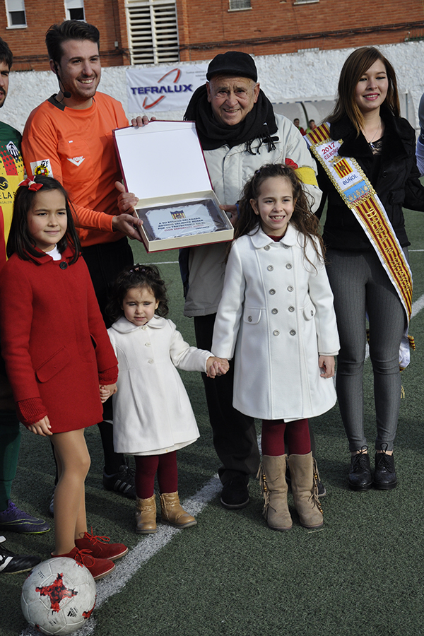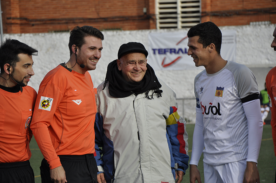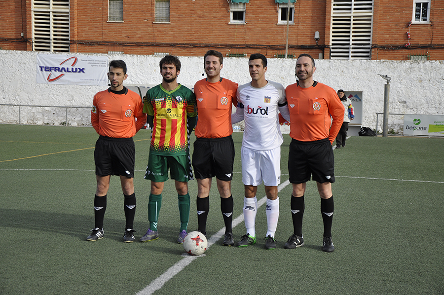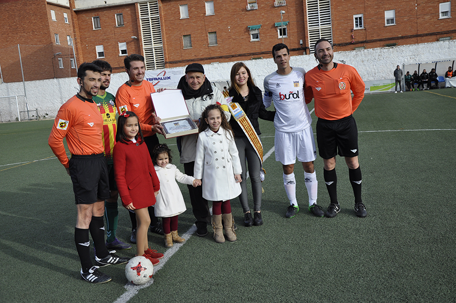 Partido declarado de alto riesgo, ya que se desplazó una gran cantidad de aficionados blanquinegros, entre ellos un grupo de ultras. El club buñolense utilizó la visita de tan histórico rival para declarar día del club. Además, se aprovechó para homenajear a Antonio Valiente “El Niño”, que ha dejado de ser delegado del equipo tras décadas de dedicación. Una placa y el saque de honor colmaron de alegría al ex-delegado. Antes de que comenzara el encuentro se guardó un minuto de silencio en memoria del abuelo del segundo entrenador, Fernando Ferrer.