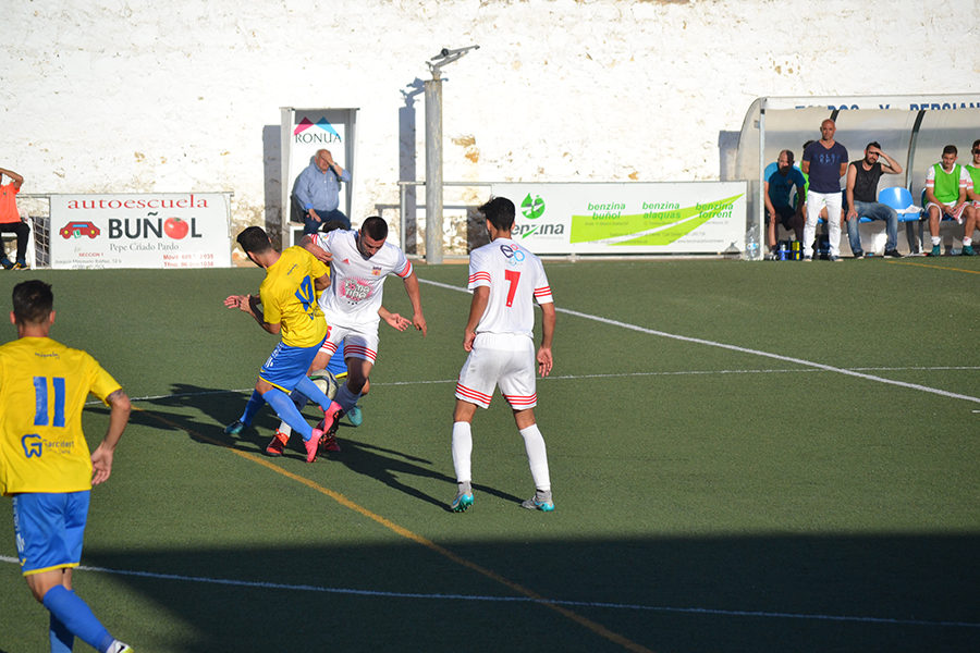 El Orihuela C.F. visitaba el Beltran Báguena en el último partido de liga como favorito, no solo por su posición en los puestos altos de la tabla, sino porque necesitaba los tres puntos para seguir soñando con meterse en los puestos de promoción de ascenso. Pero lo que no se esperaba era que el C.D. Buñol le aguara la fiesta. Y eso que se le puso bastante de cara a los visitantes cuando, en el minuto 41, Edu Sáez era expulsado a la vez que se señalaba un penalti contra los nuestros. Pero Juan Antonio Tejera ha mostrado sus reflejos deteniendo la pena máxima.