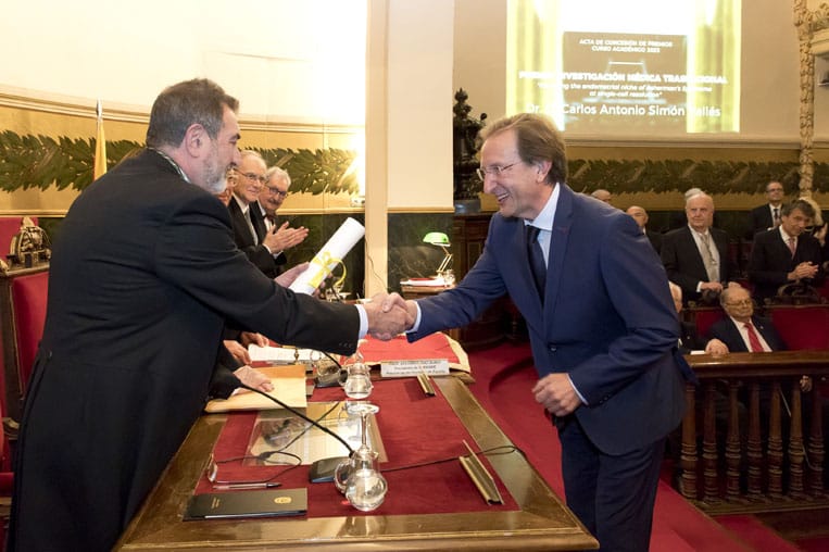 Redacción.- La Fundación Carlos Simón se complace en anunciar que nuestro presidente, el Dr. Carlos Simón Vallés, ha sido galardonado con el Premio de Investigación Médica Traslacional 2023 de la Real Academia Nacional de Medicina de España (RANME).