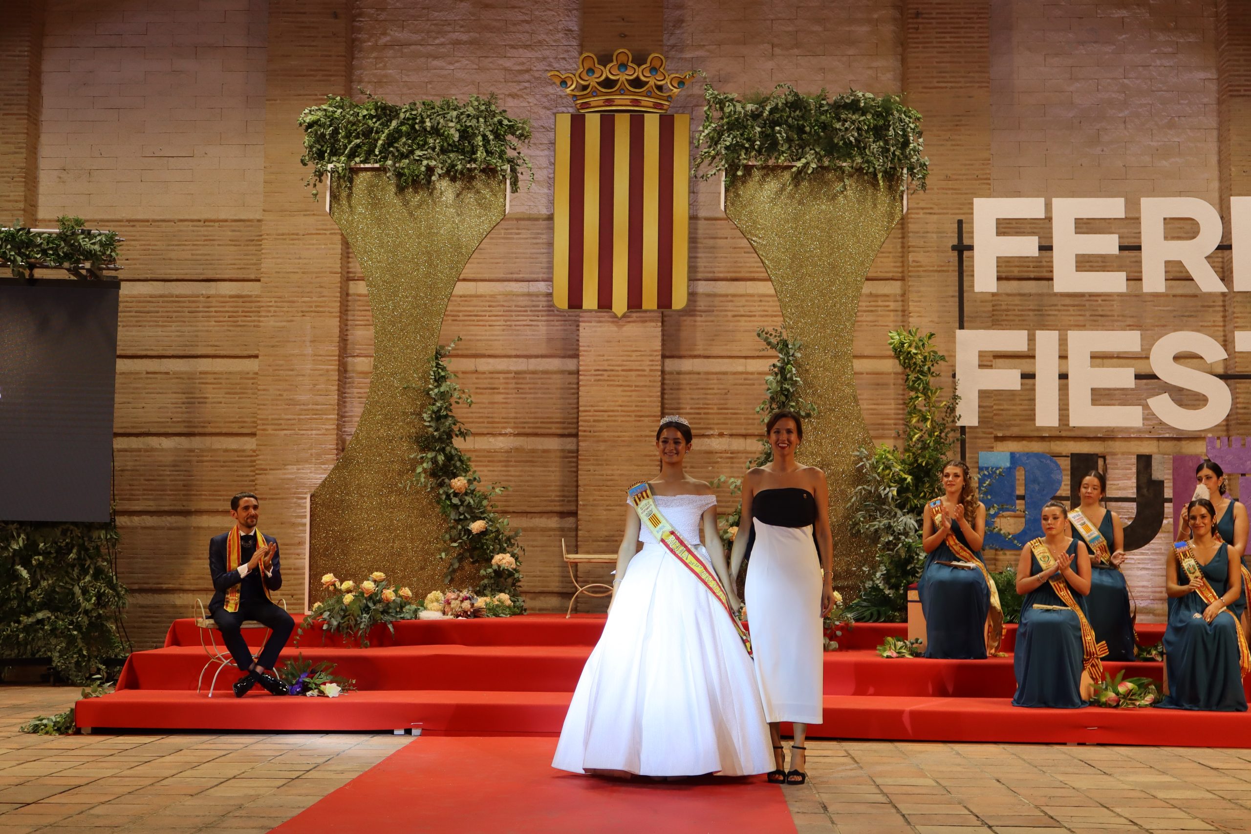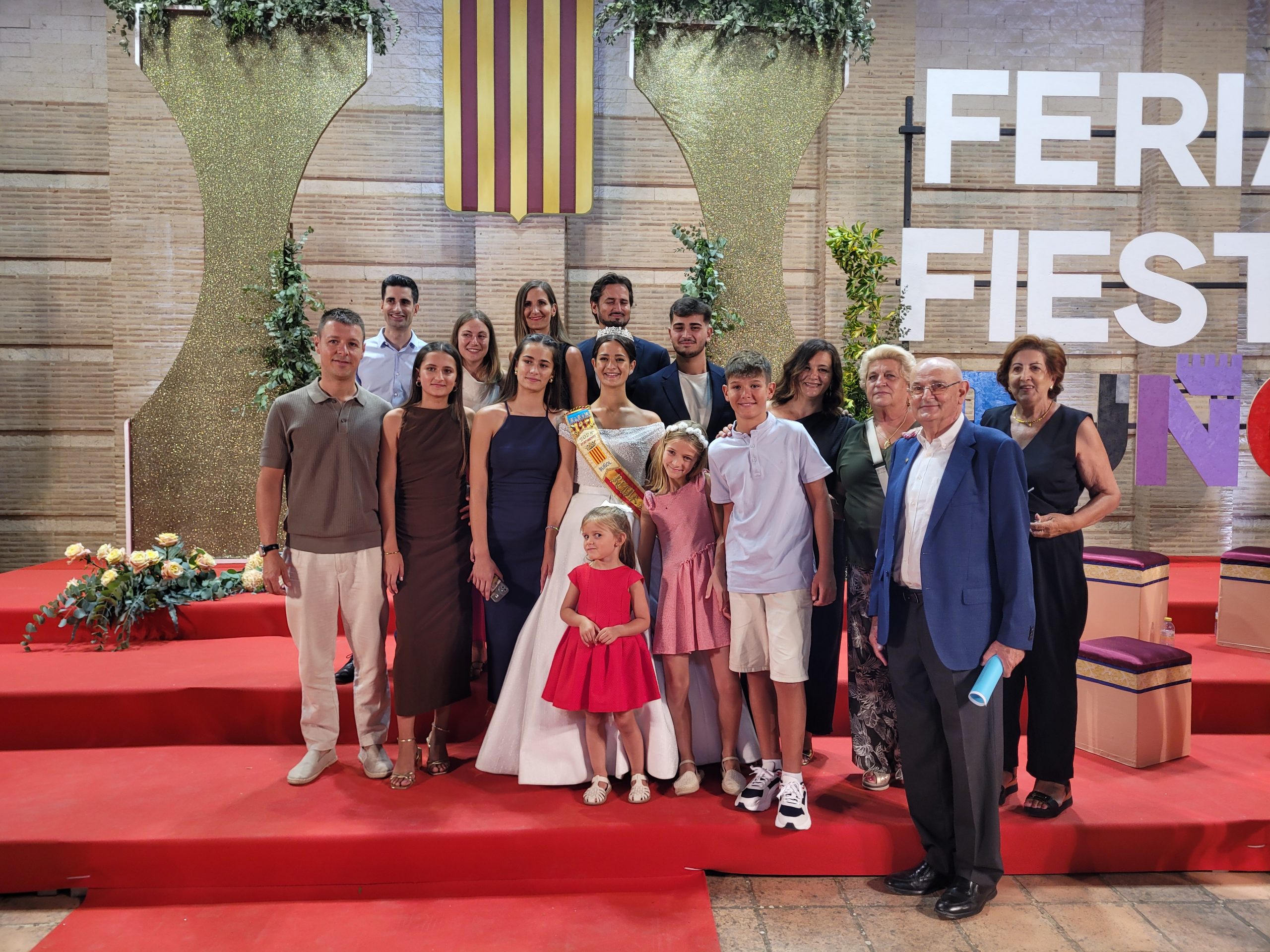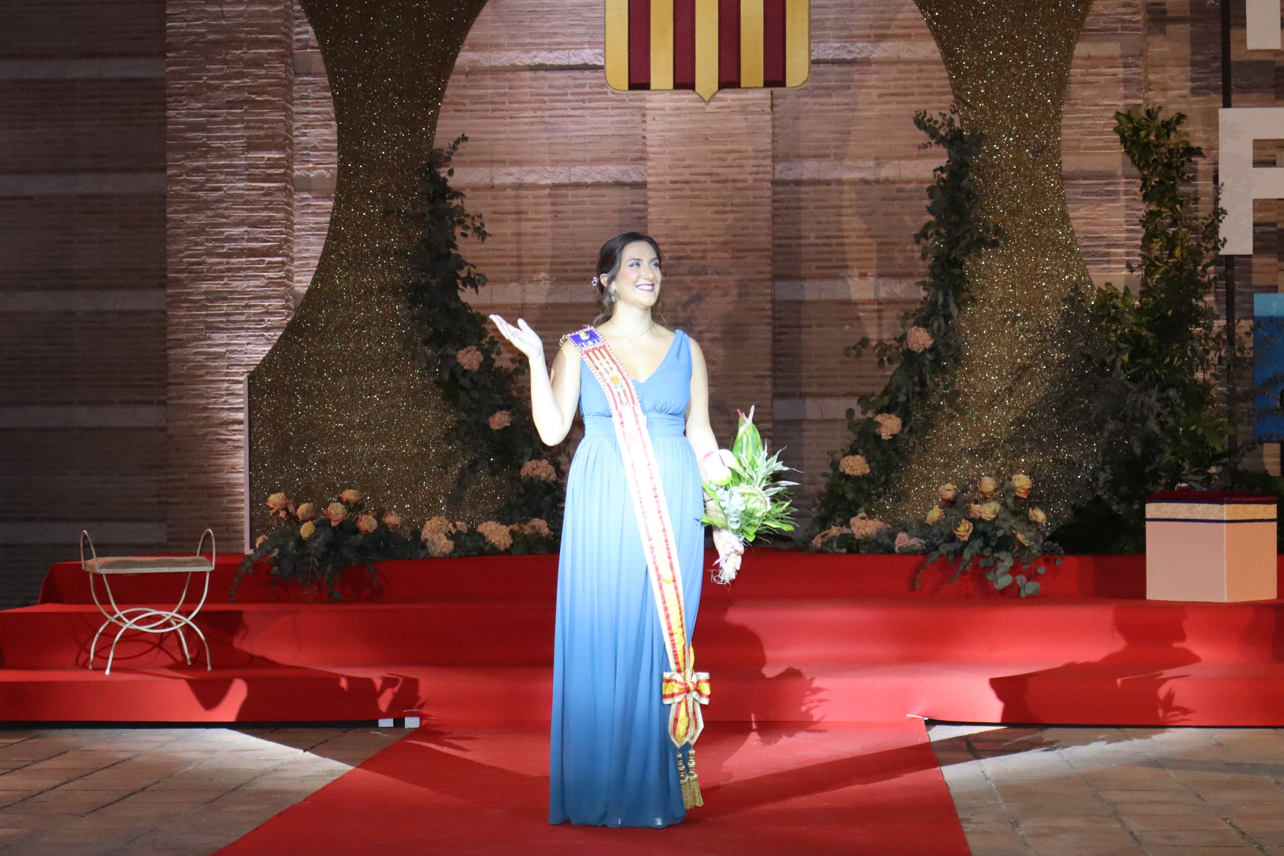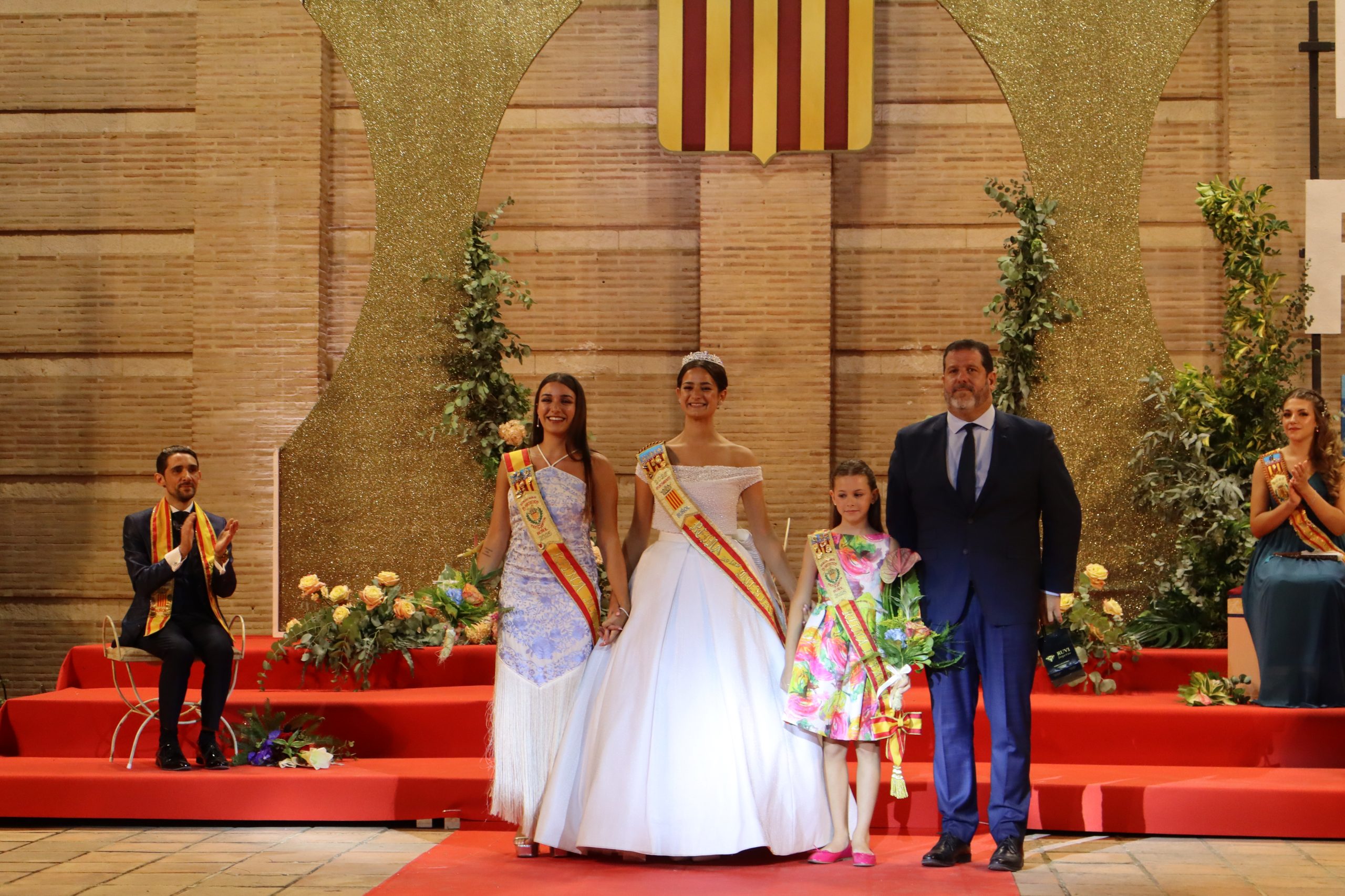 La nueva reina, acompañada por su Corte de Honor, hizo su entrada al escenario descendiendo las escaleras del auditorio de la mano de su padre, Pepe Alís. El momento alcanzó su punto más emotivo cuando fue presentada por su abuelo, Cecilio Alís, quien dirigió unas sentidas palabras hacia ella y también aprovechó para mostrar su gratitud hacia las asociaciones, colectivos y representantes que hacen posible la celebración de las fiestas. En su discurso, también puso en valor el trabajo de la brigada municipal de obras y servicios, y recordó a las personas afectadas por la DANA del pasado octubre.