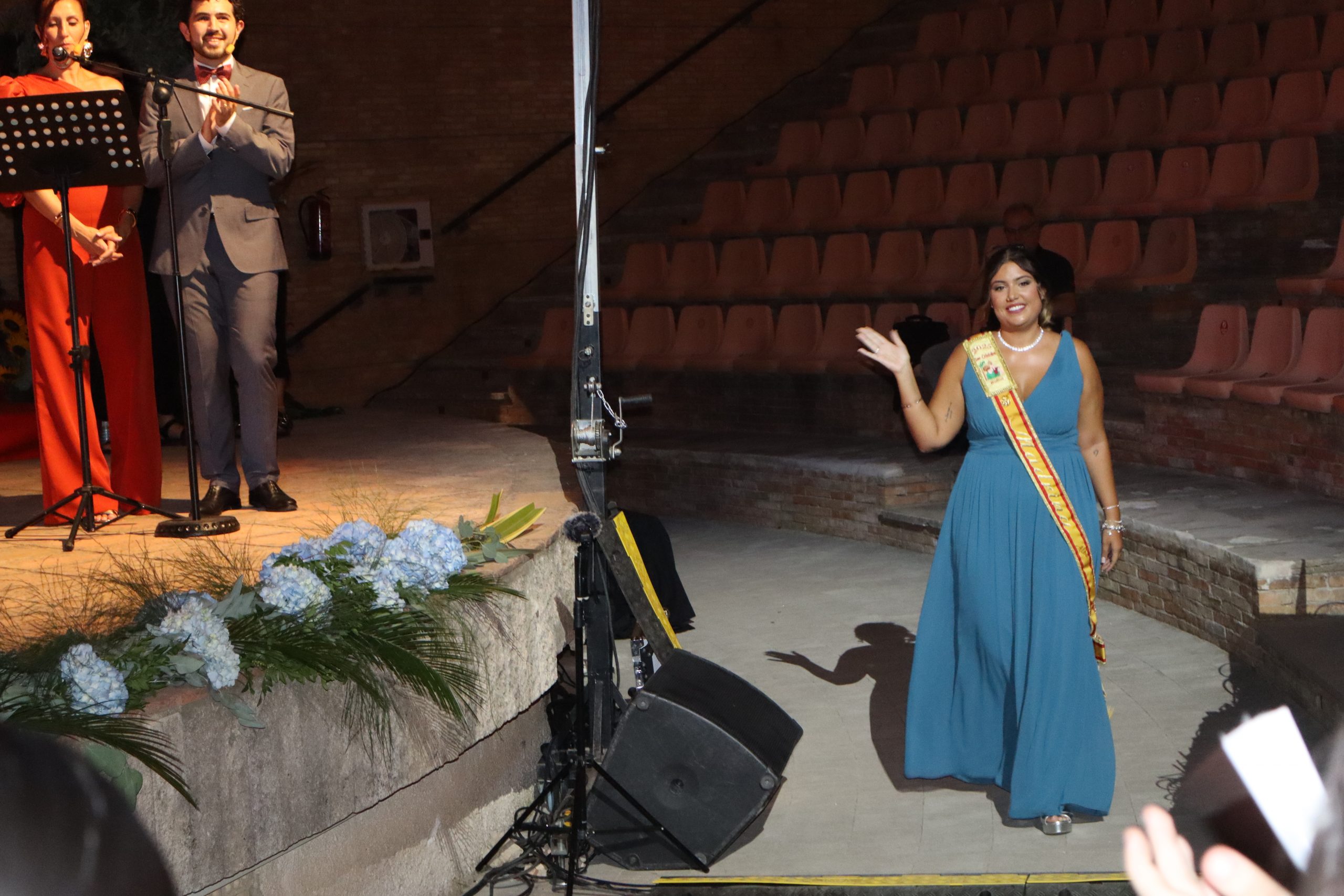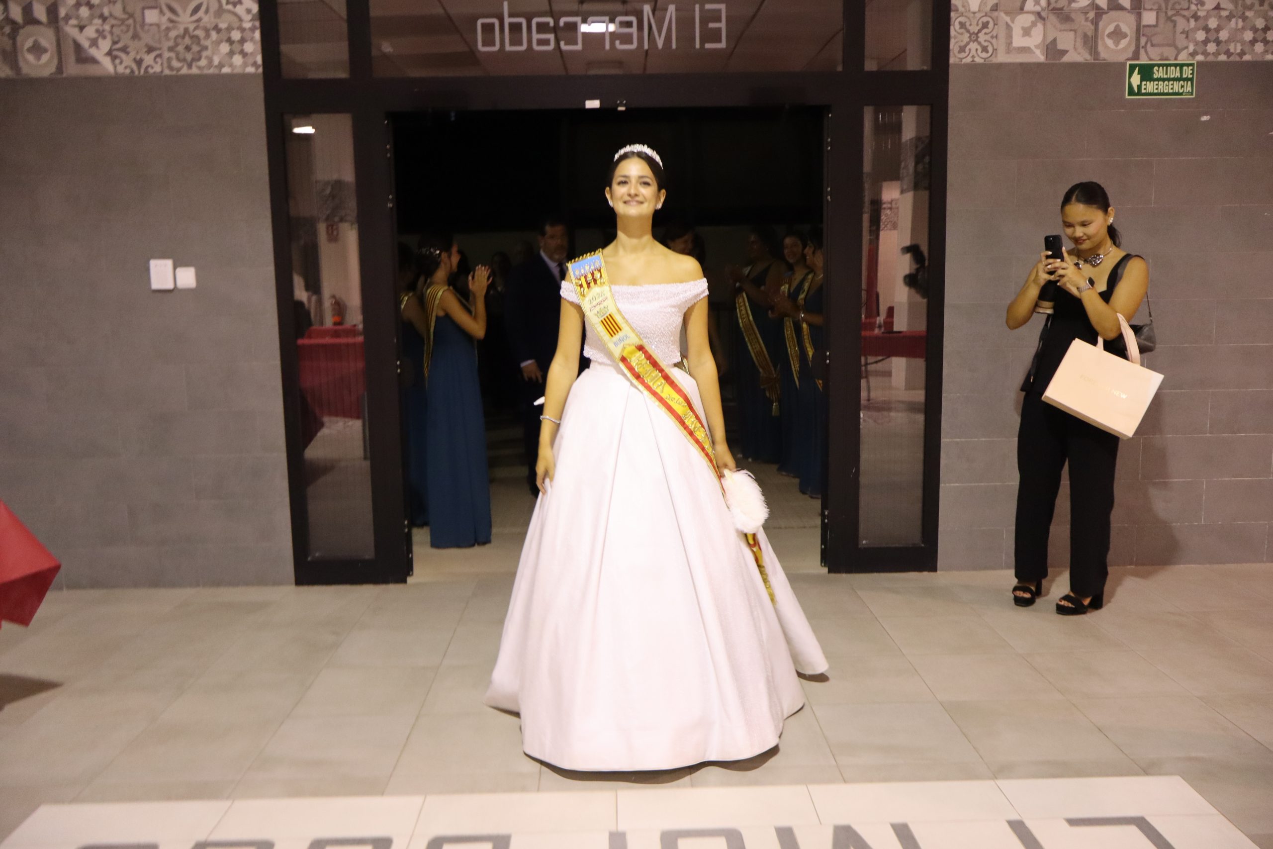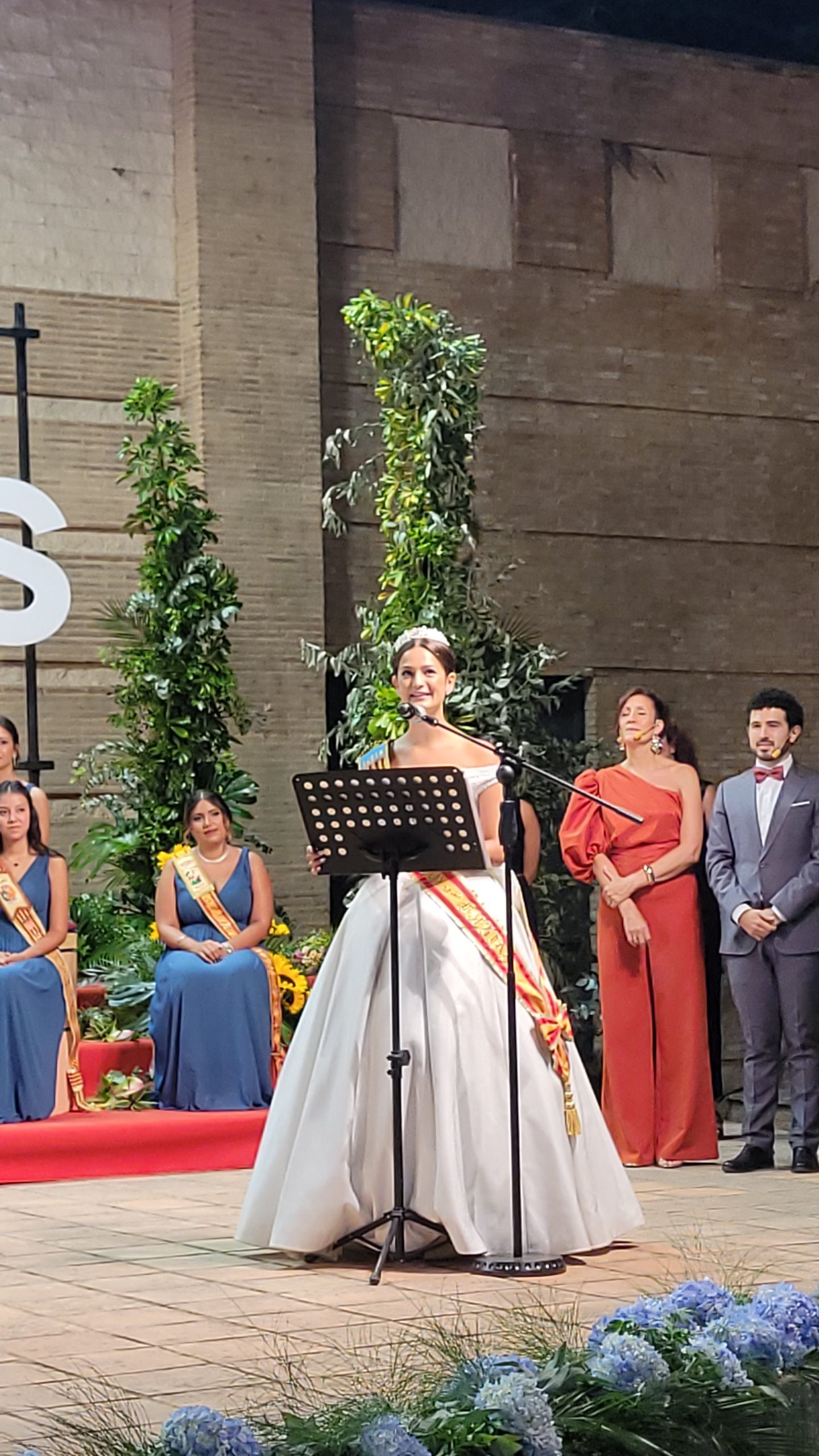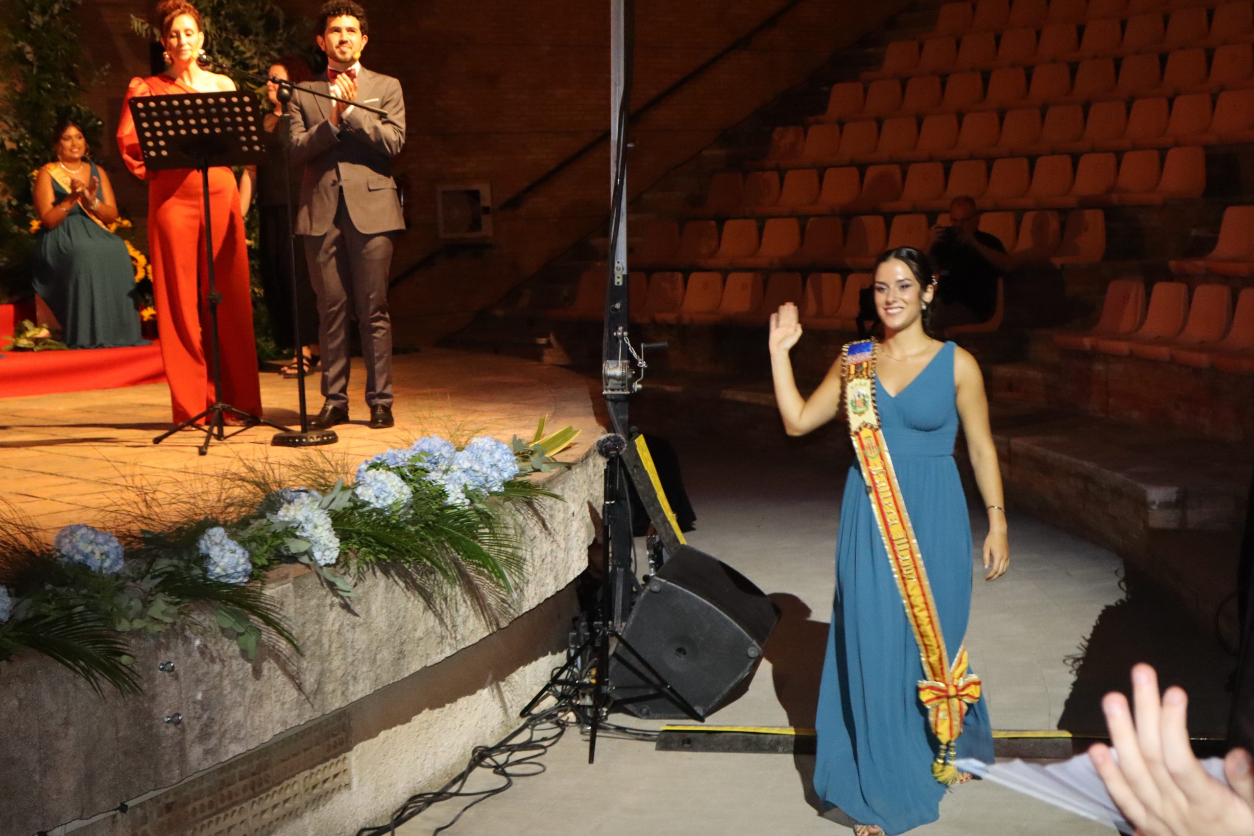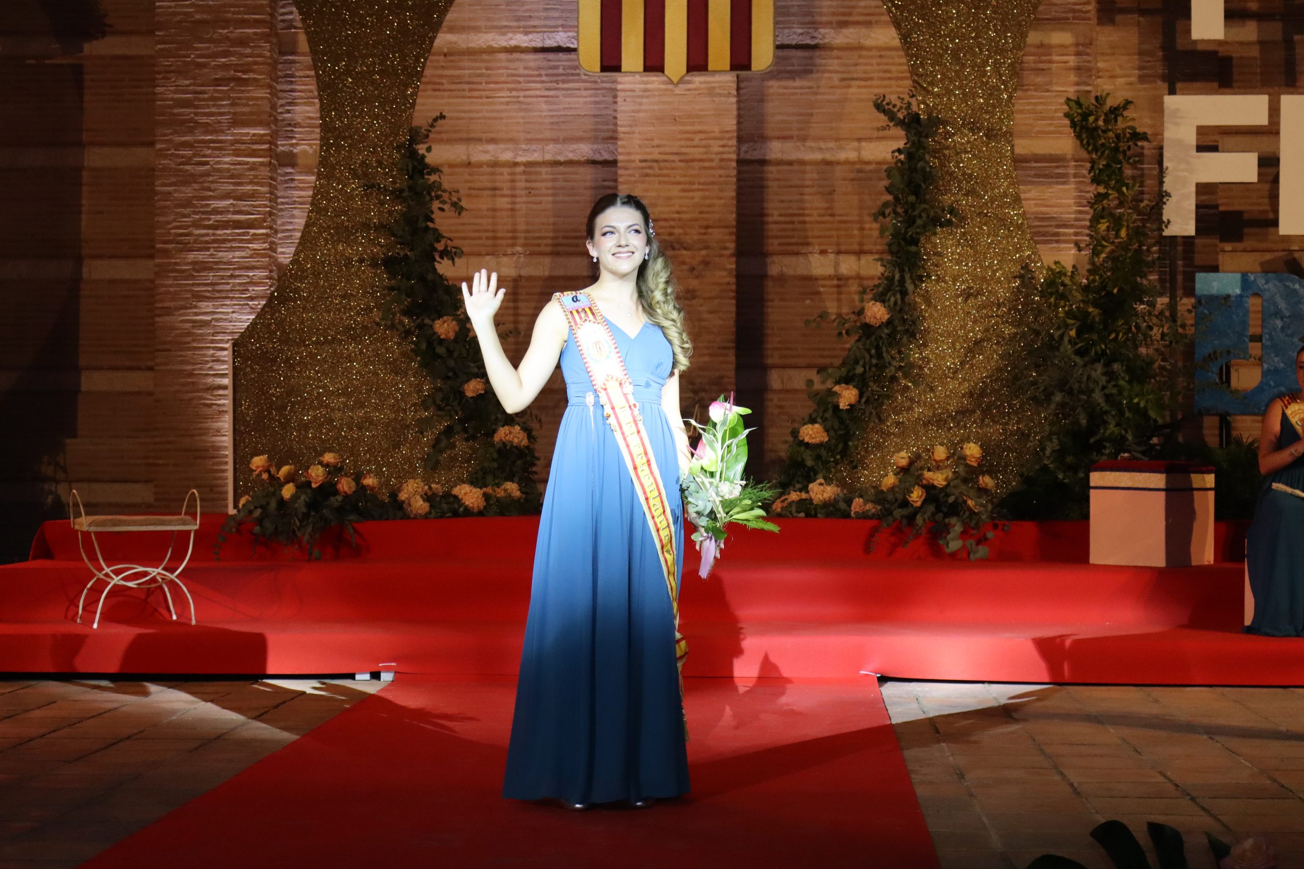 La nueva reina, acompañada por su Corte de Honor, hizo su entrada al escenario descendiendo las escaleras del auditorio de la mano de su padre, Pepe Alís. El momento alcanzó su punto más emotivo cuando fue presentada por su abuelo, Cecilio Alís, quien dirigió unas sentidas palabras hacia ella y también aprovechó para mostrar su gratitud hacia las asociaciones, colectivos y representantes que hacen posible la celebración de las fiestas. En su discurso, también puso en valor el trabajo de la brigada municipal de obras y servicios, y recordó a las personas afectadas por la DANA del pasado octubre.