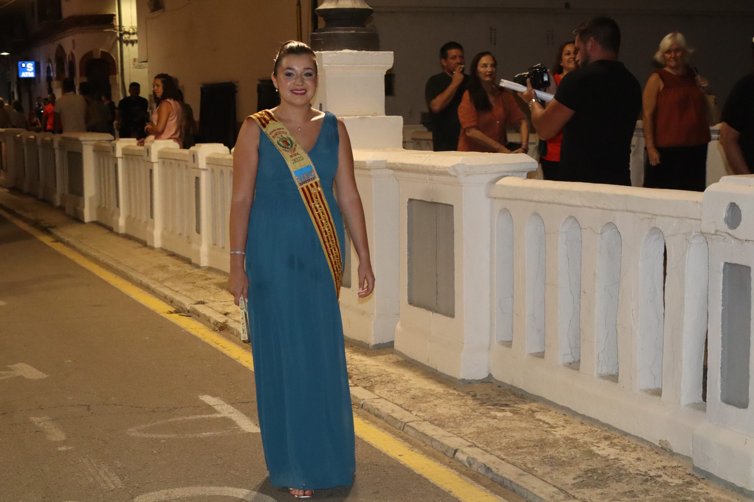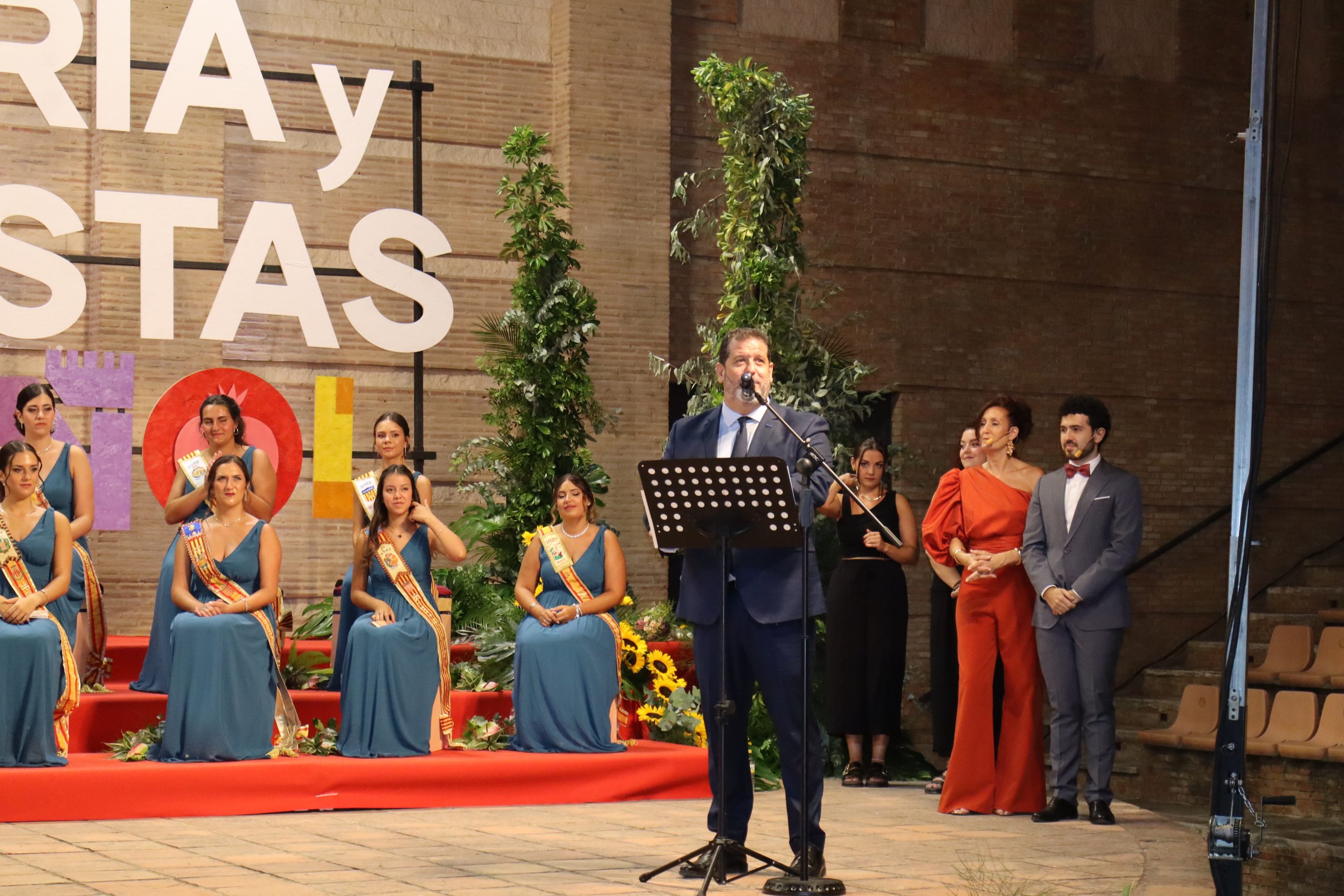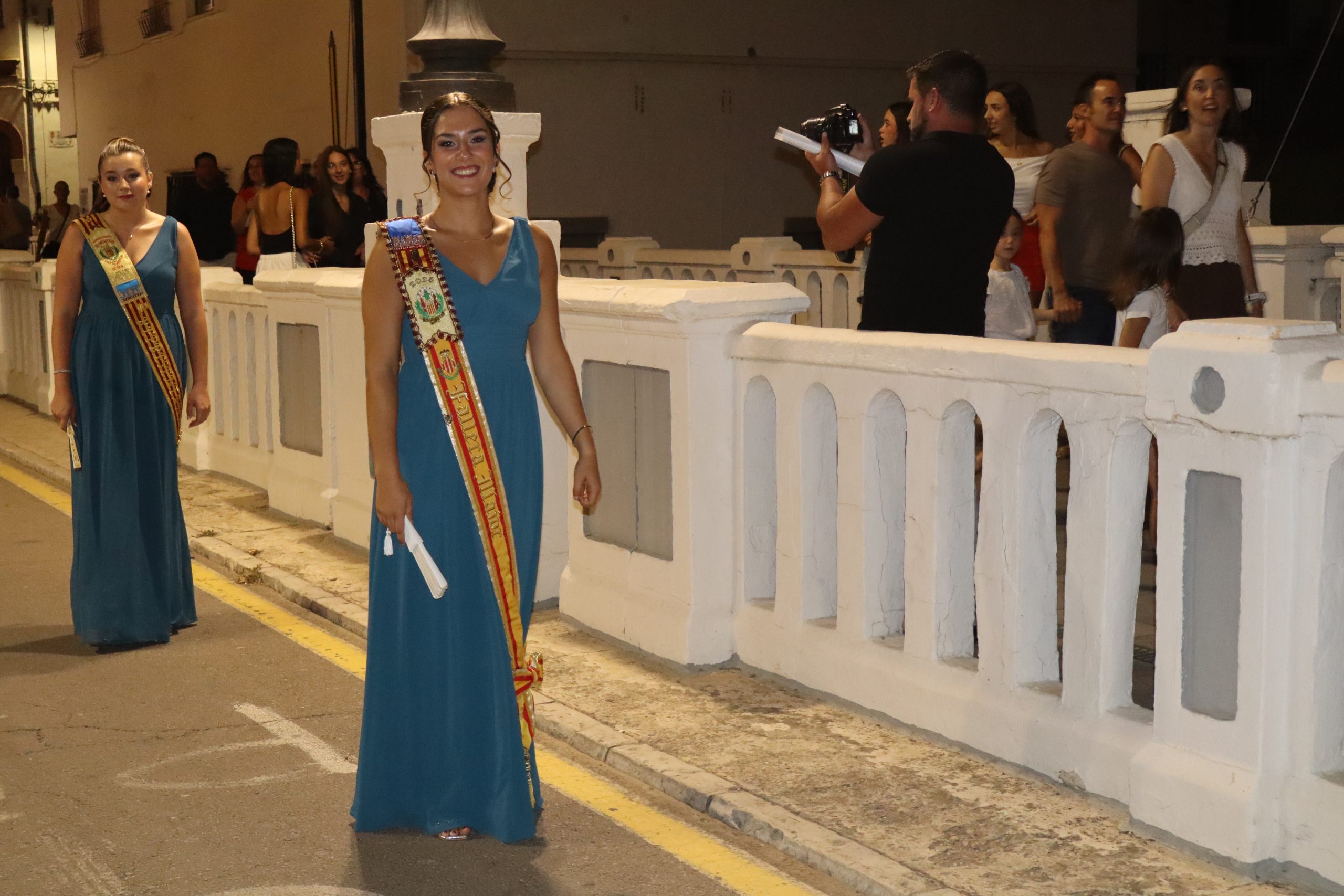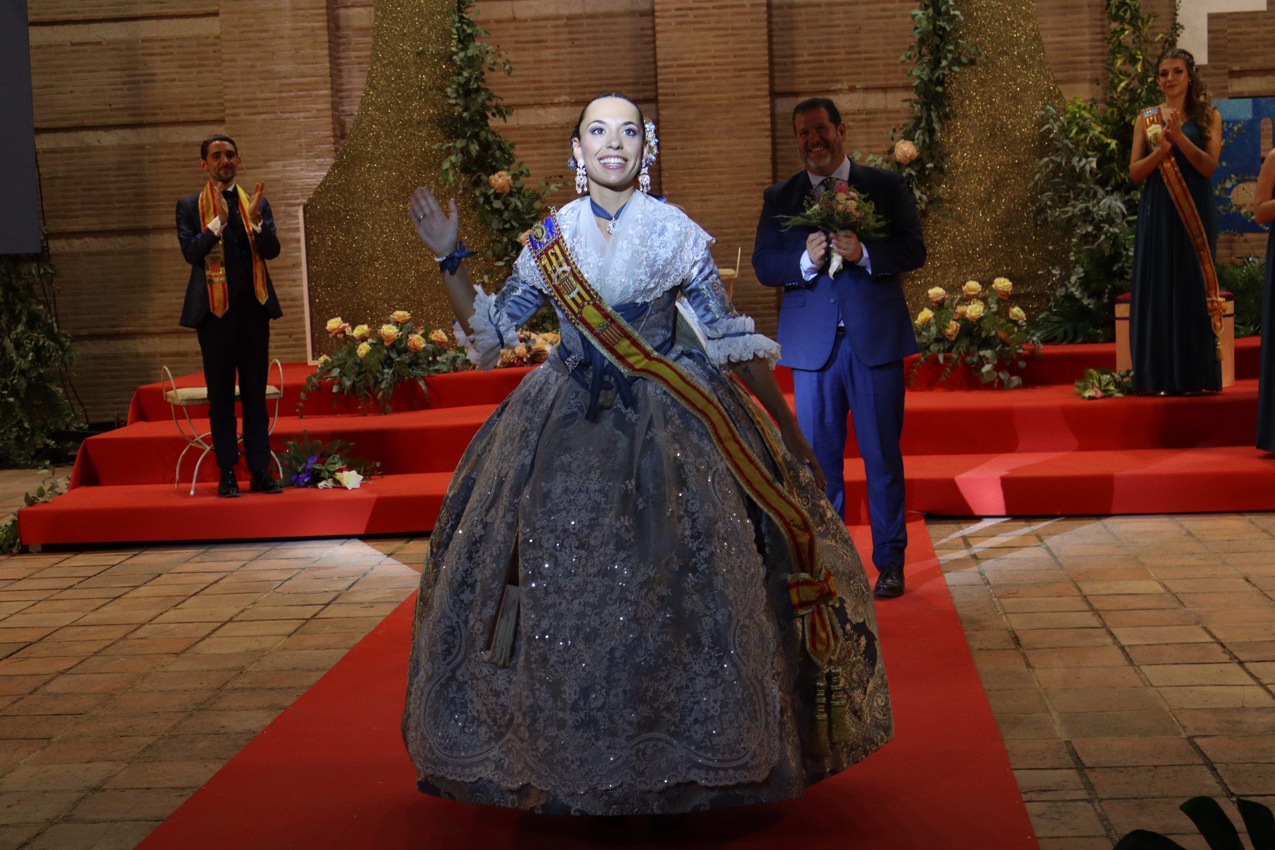 La nueva reina, acompañada por su Corte de Honor, hizo su entrada al escenario descendiendo las escaleras del auditorio de la mano de su padre, Pepe Alís. El momento alcanzó su punto más emotivo cuando fue presentada por su abuelo, Cecilio Alís, quien dirigió unas sentidas palabras hacia ella y también aprovechó para mostrar su gratitud hacia las asociaciones, colectivos y representantes que hacen posible la celebración de las fiestas. En su discurso, también puso en valor el trabajo de la brigada municipal de obras y servicios, y recordó a las personas afectadas por la DANA del pasado octubre.