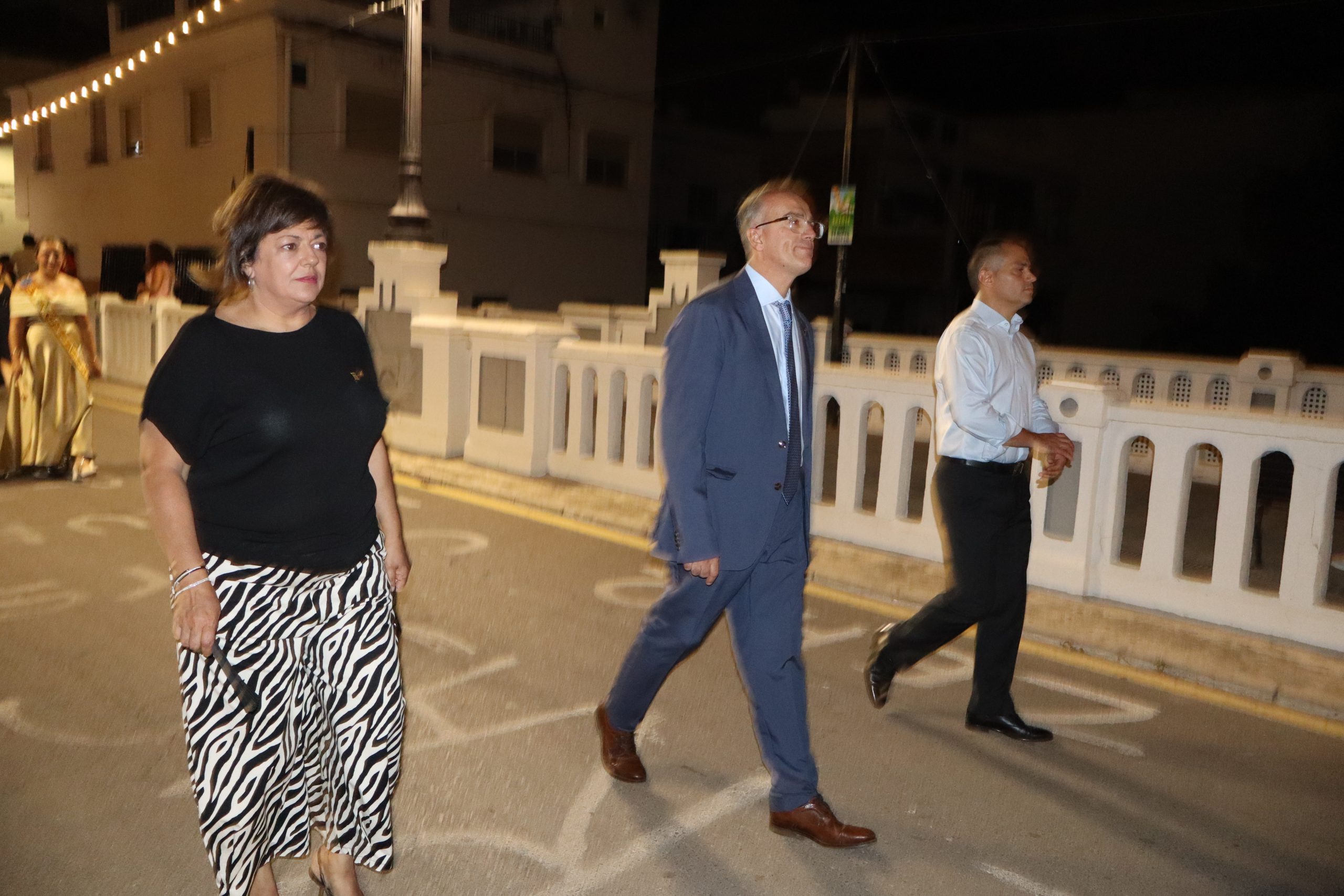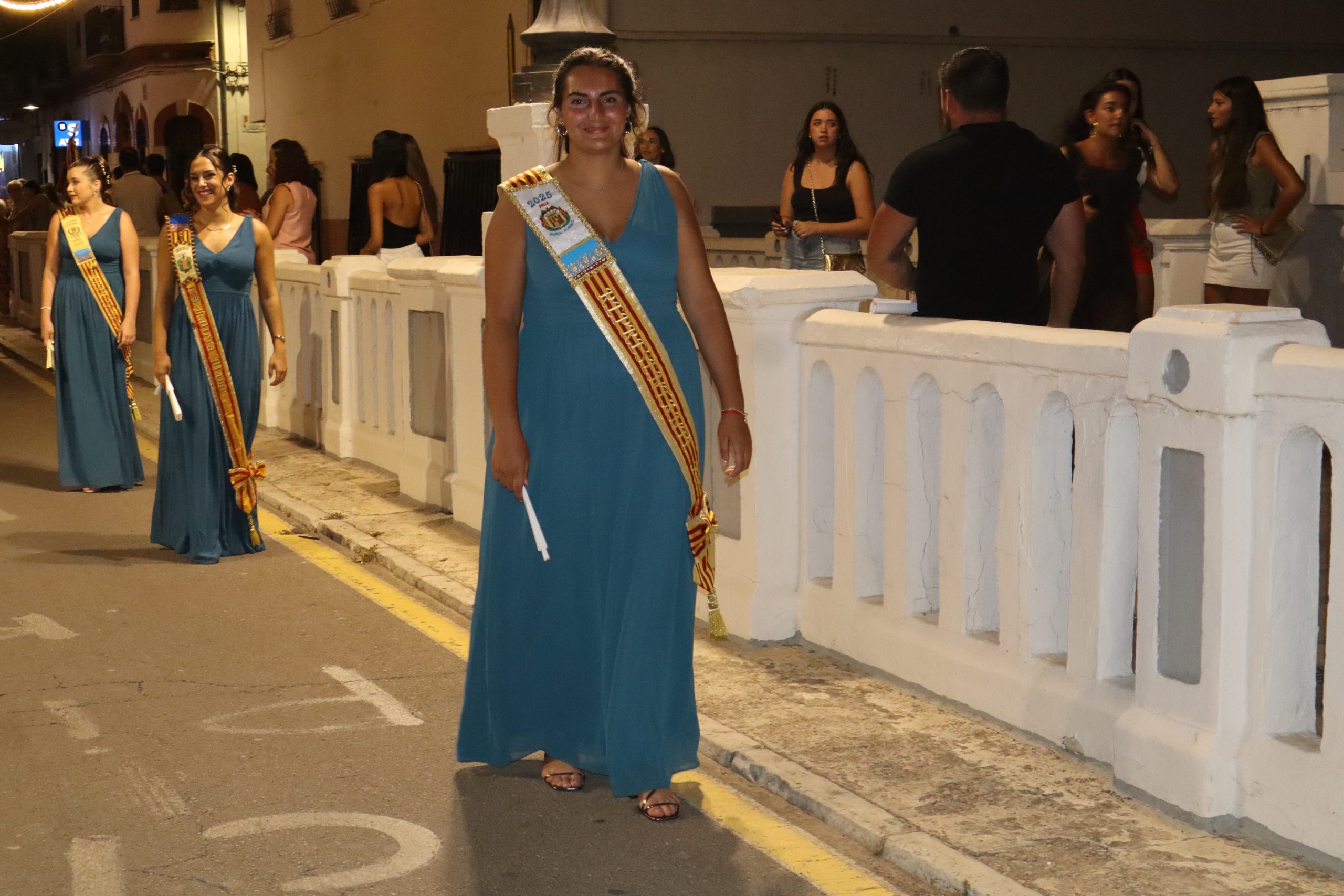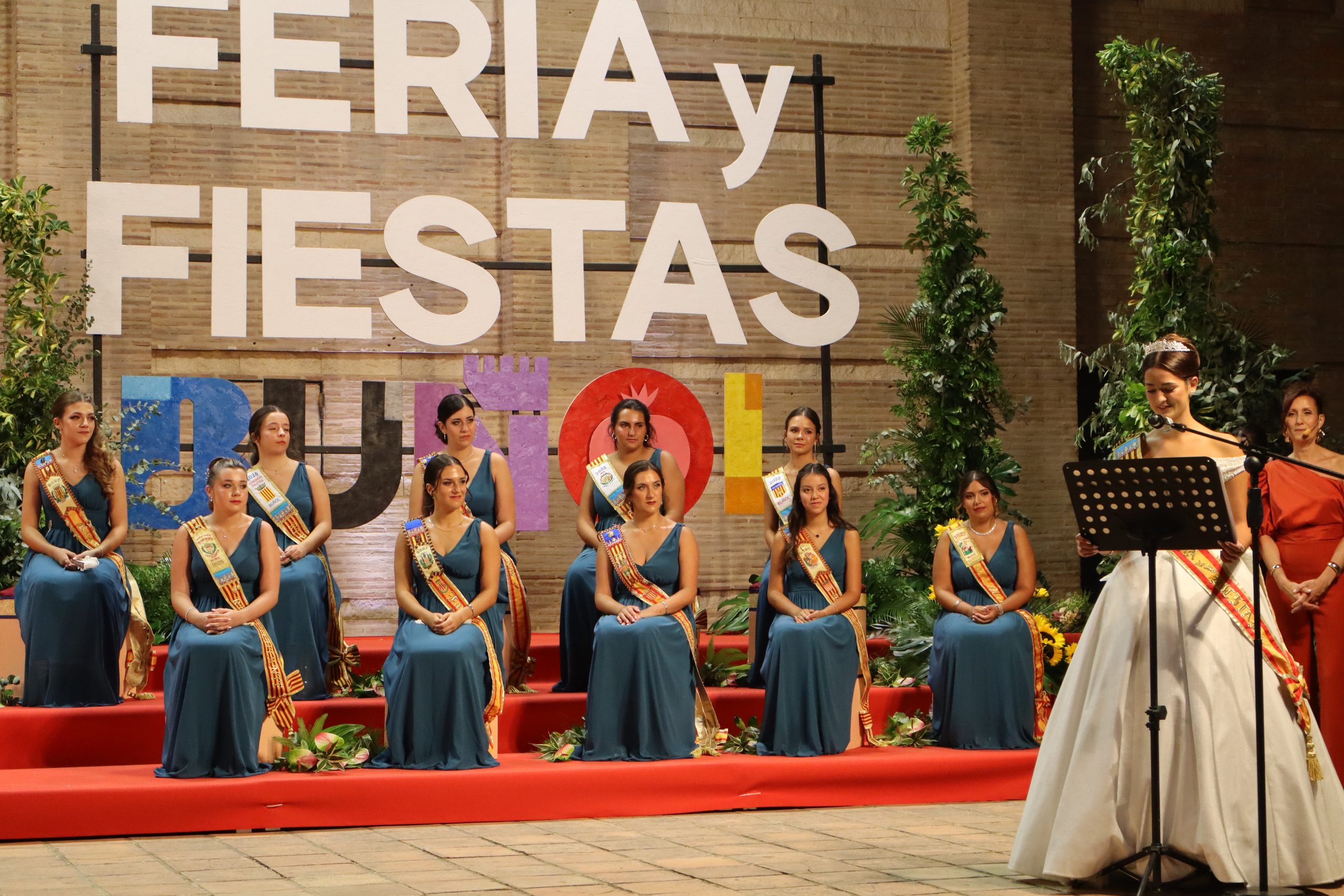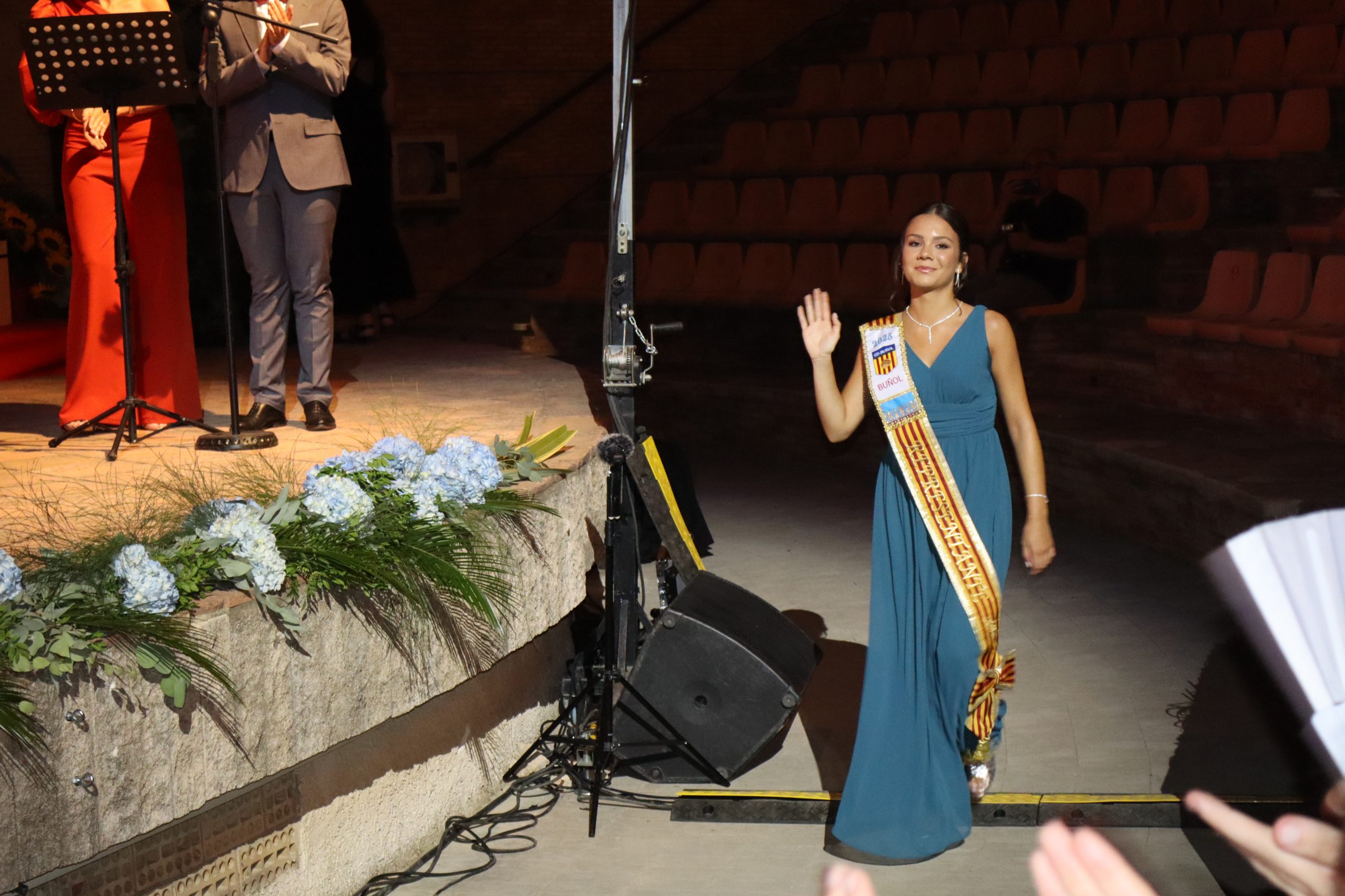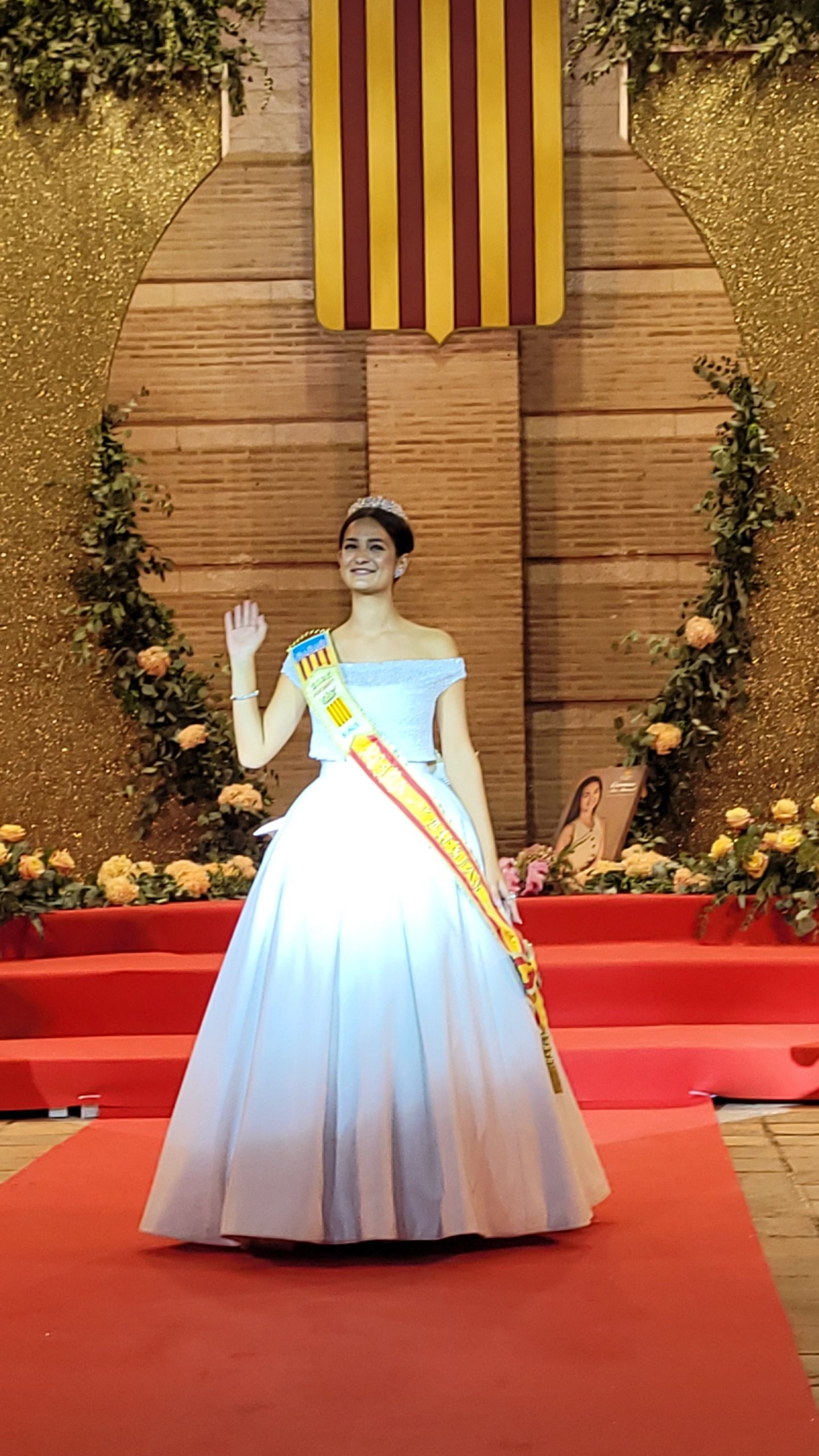 La nueva reina, acompañada por su Corte de Honor, hizo su entrada al escenario descendiendo las escaleras del auditorio de la mano de su padre, Pepe Alís. El momento alcanzó su punto más emotivo cuando fue presentada por su abuelo, Cecilio Alís, quien dirigió unas sentidas palabras hacia ella y también aprovechó para mostrar su gratitud hacia las asociaciones, colectivos y representantes que hacen posible la celebración de las fiestas. En su discurso, también puso en valor el trabajo de la brigada municipal de obras y servicios, y recordó a las personas afectadas por la DANA del pasado octubre.