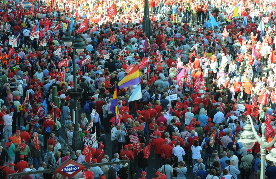 Las marchas, que comenzaron su camino el 30 de septiembre, encabezaron la protesta convocada por CCOO y UGT. Desde Málaga, Santiago de Compostela, Gijón, Santander y Castellón las cinco rutas acabaron su camino en la capital en una protesta que recorrió el camino que separa la Plaza de Carlos V y la Puerta del Sol.