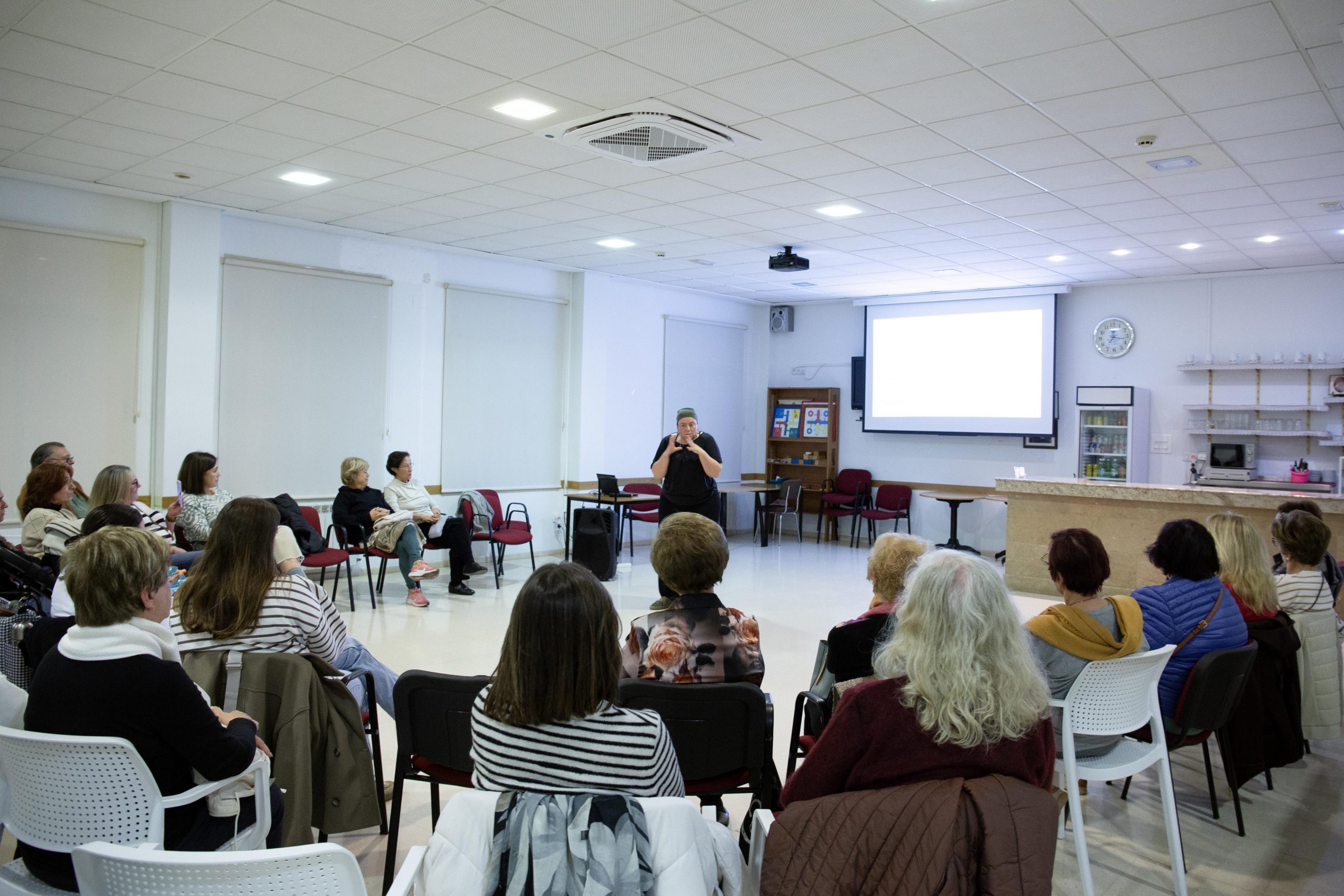 Durante la charla la ponente abordó diferentes situaciones de emergencias, detallando cómo actuar en cada caso. En concreto, la ponente dio indicaciones claras sobre qué se debe hacer en caso de incendio o inundación, desmayos, ataques epilépticos, ictus o infartos, y también explicó cómo actuar ante atragantamientos, distinguiendo entre personas adultas o niños, o ante paradas cardiorespiratorias, pediátricas y de adultos.