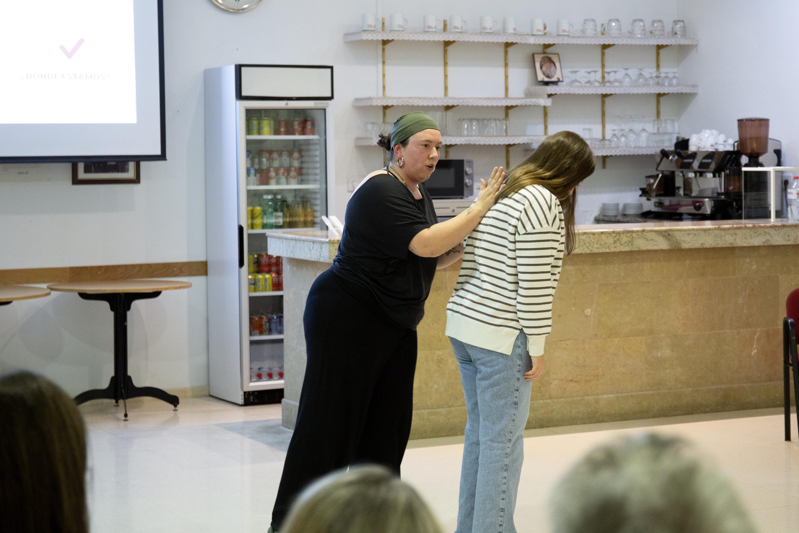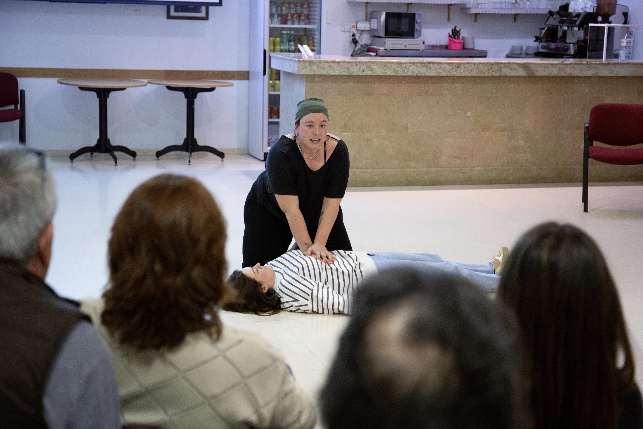 Fora apoyó sus explicaciones con vídeos de muestra y realizó simulaciones prácticas de las maniobras con respecto a los atragantamientos y también de cómo realizar una Reanimación Cardio Pulmonar (RCP) ante una parada cadiorepiratoria. Como de costumbre, al final de la charla la ponente respondió a las dudas de las personas asistentes.